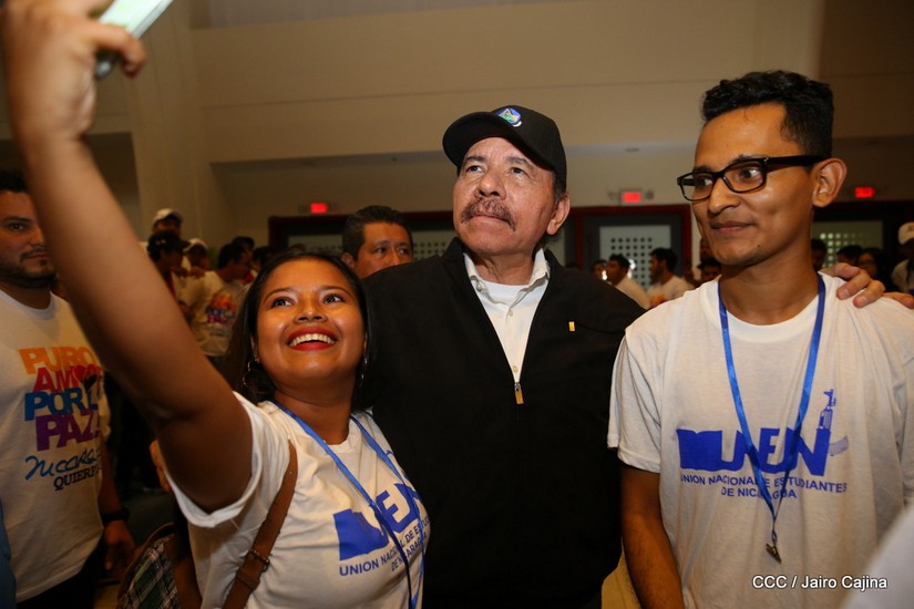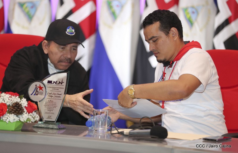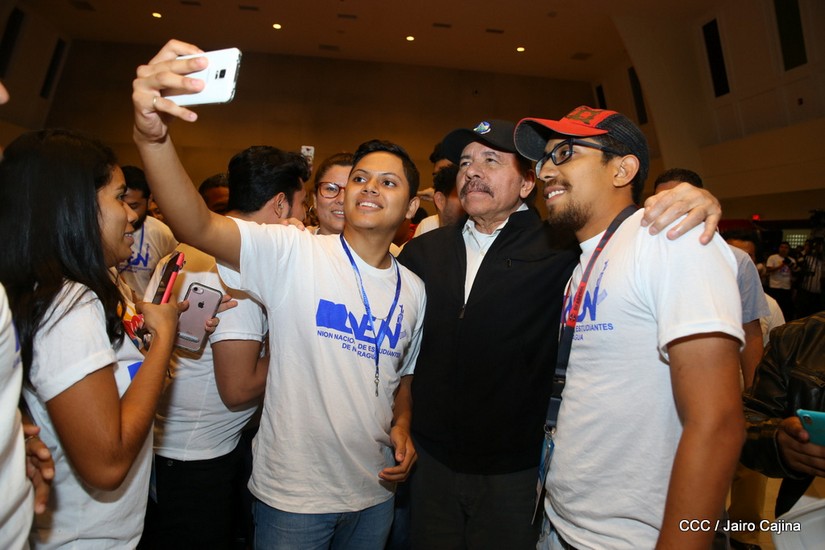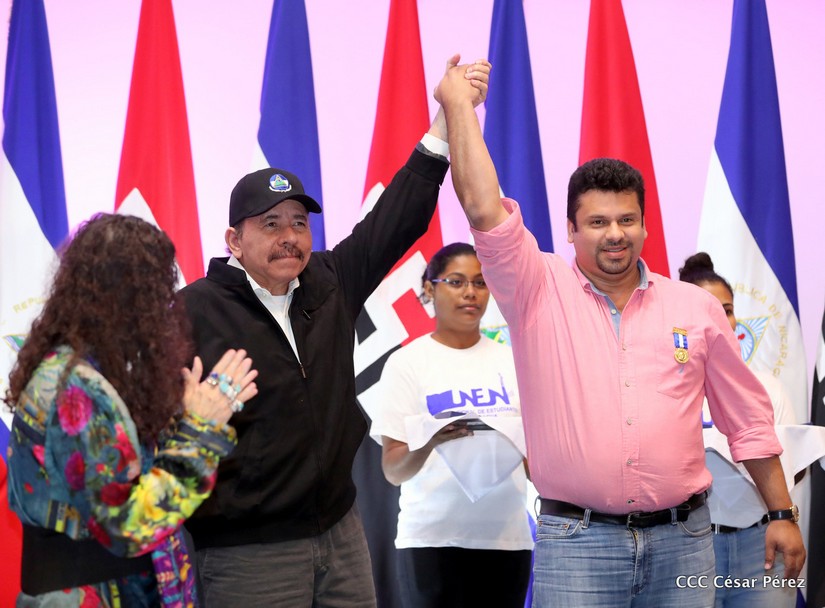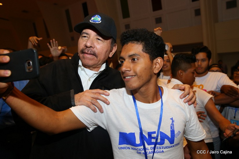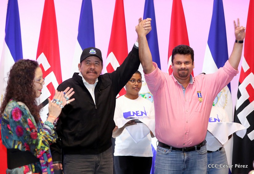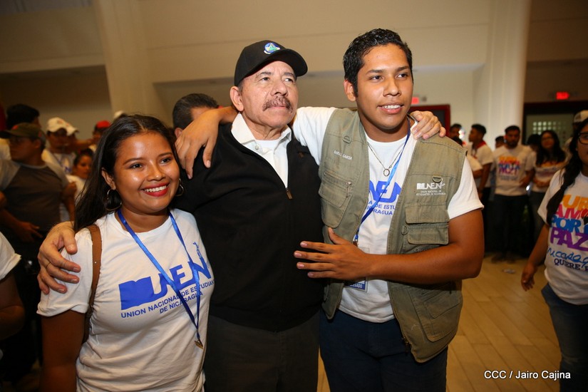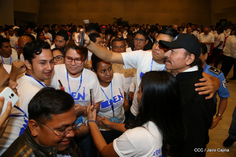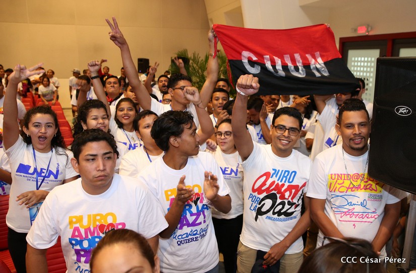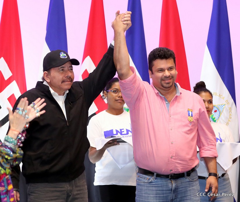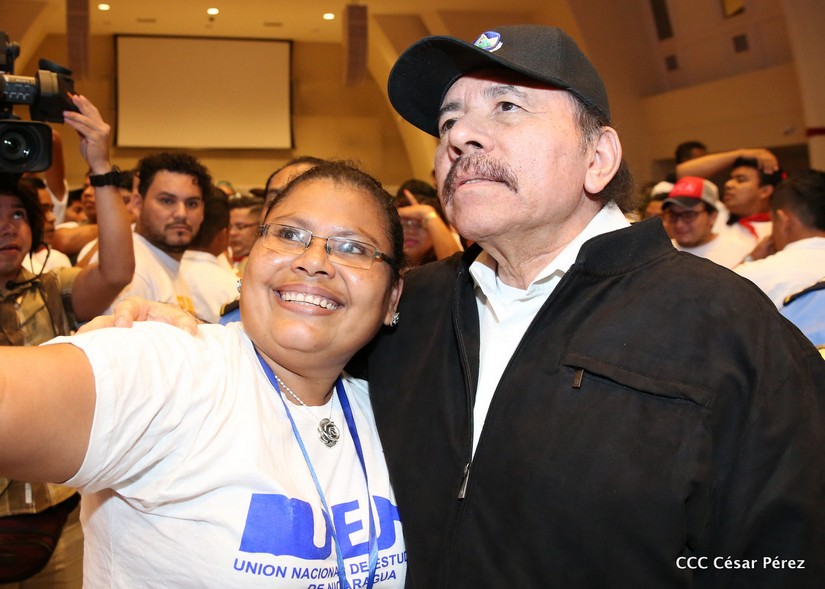El Presidente de la República, comandante Daniel Ortega Saavedra y la vicepresidenta compañera Rosario Murillo, presidieron la noche de este lunes la clausura del XVI Congreso de la Unión Nacional de Estudiantes de Nicaragua (UNEN).
