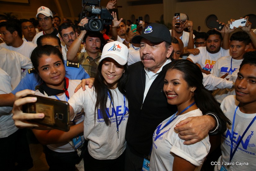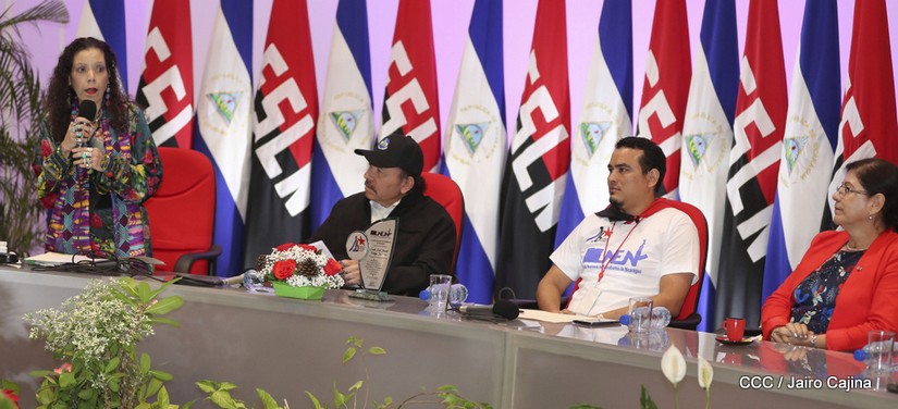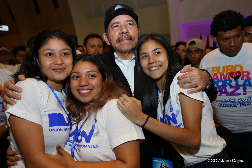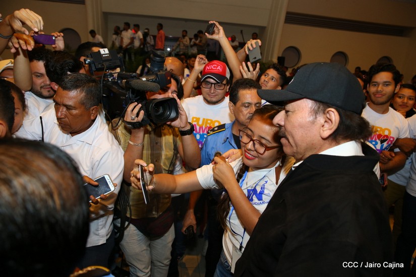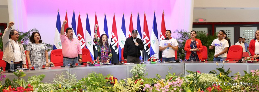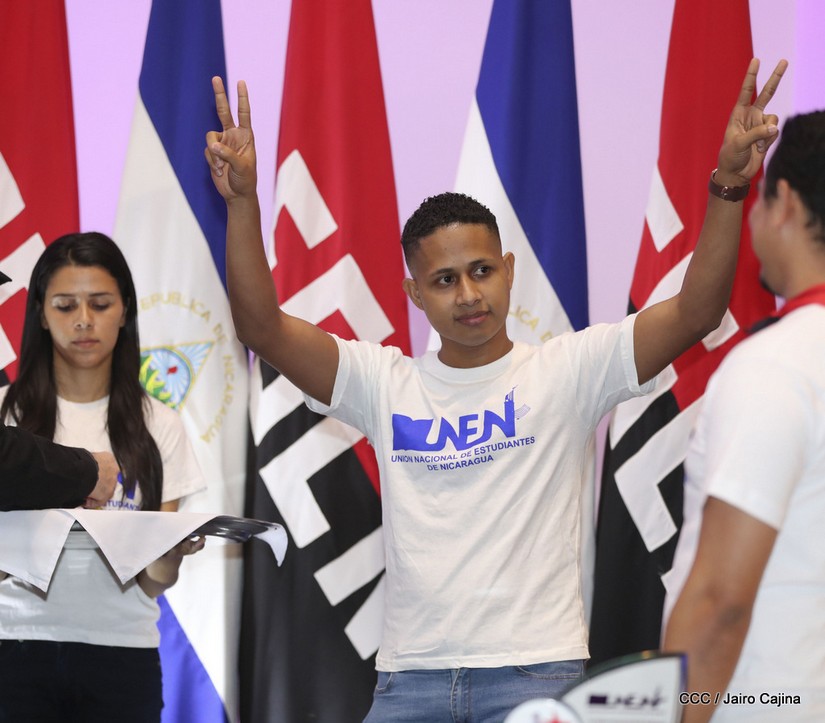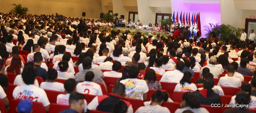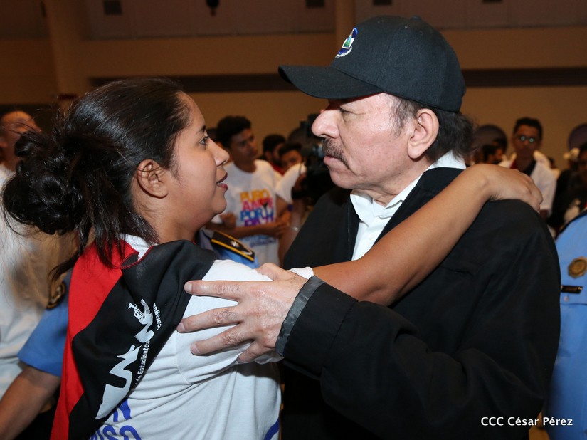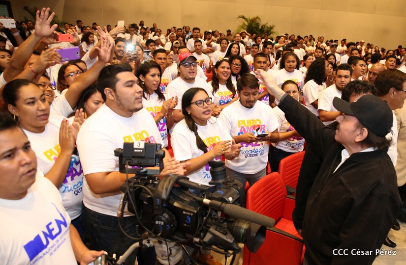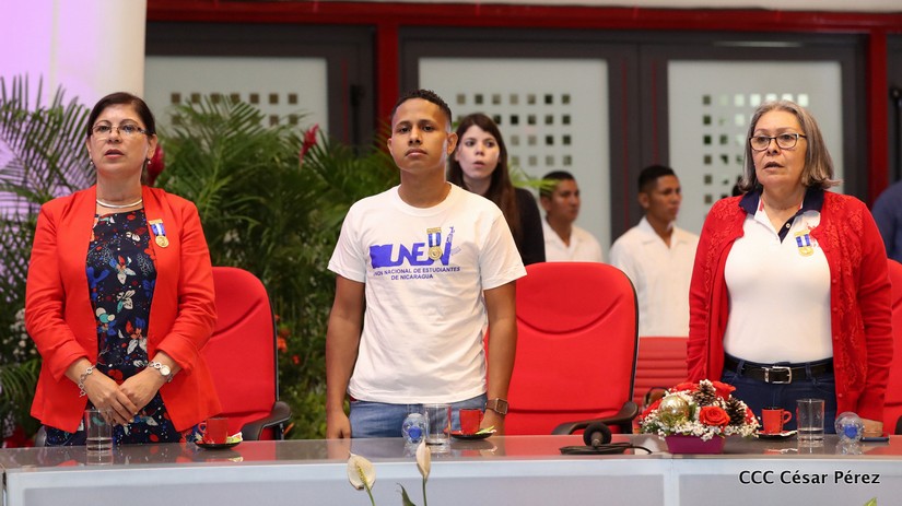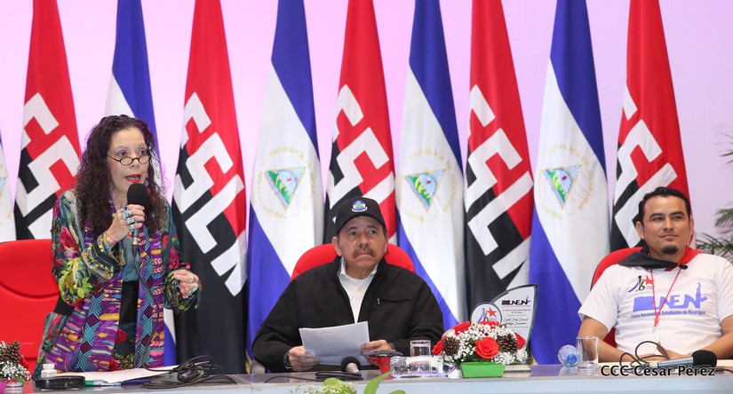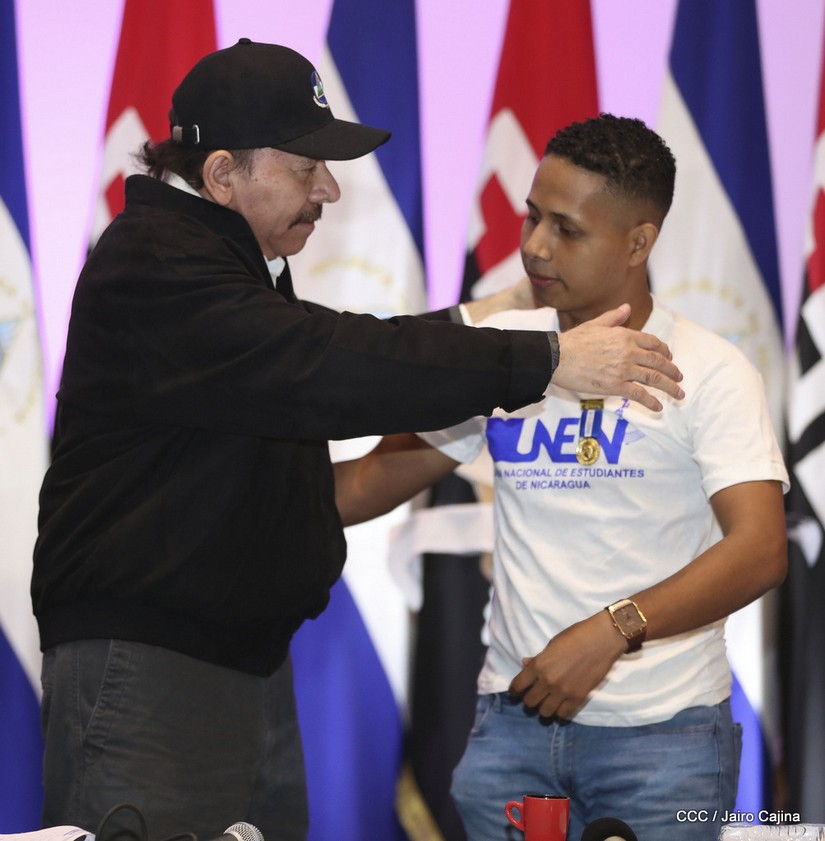 El Presidente de la República, comandante Daniel Ortega Saavedra y la vicepresidenta compañera Rosario Murillo, presidieron la noche de este lunes la clausura del XVI Congreso de la Unión Nacional de Estudiantes de Nicaragua (UNEN).