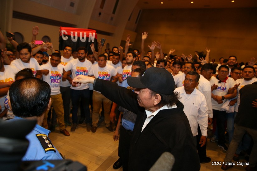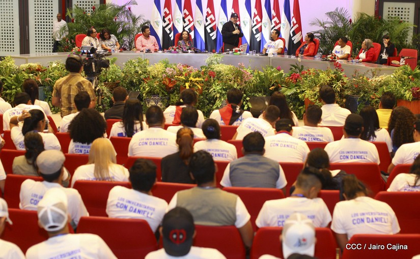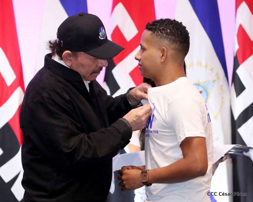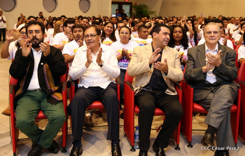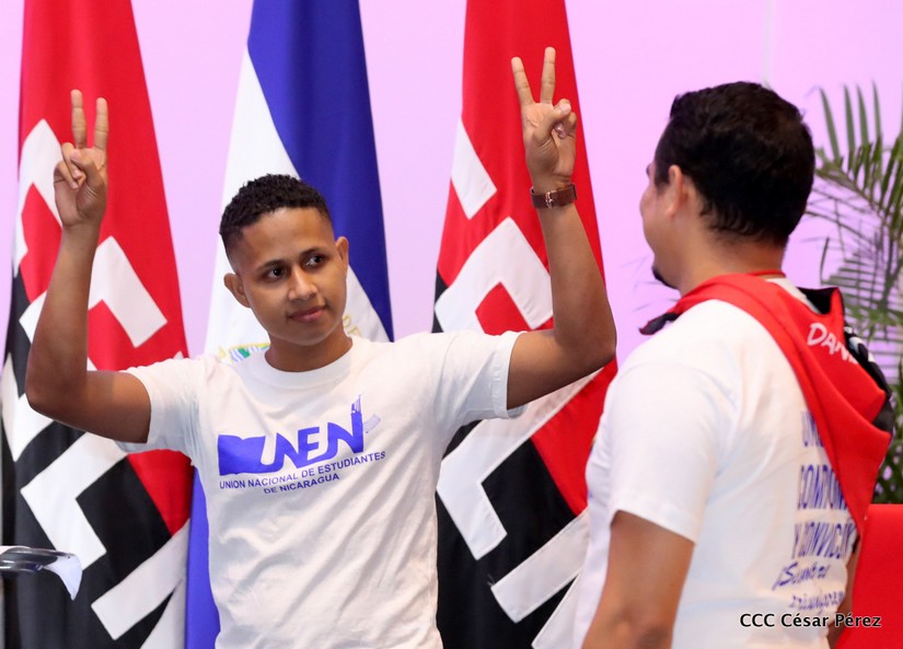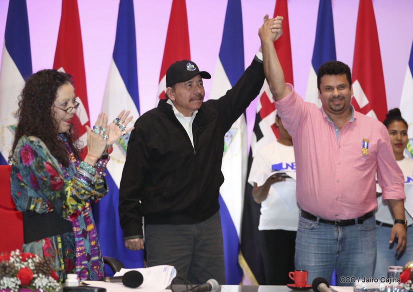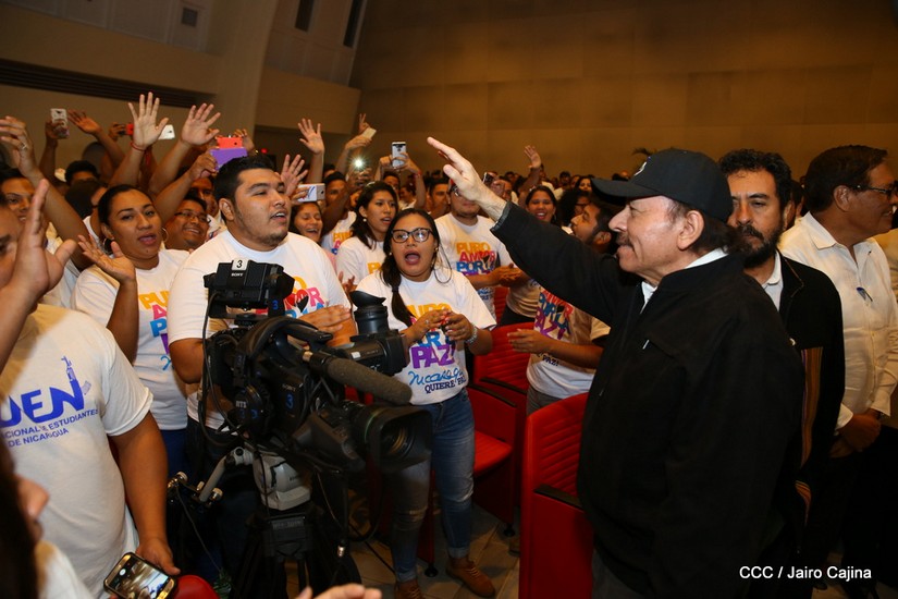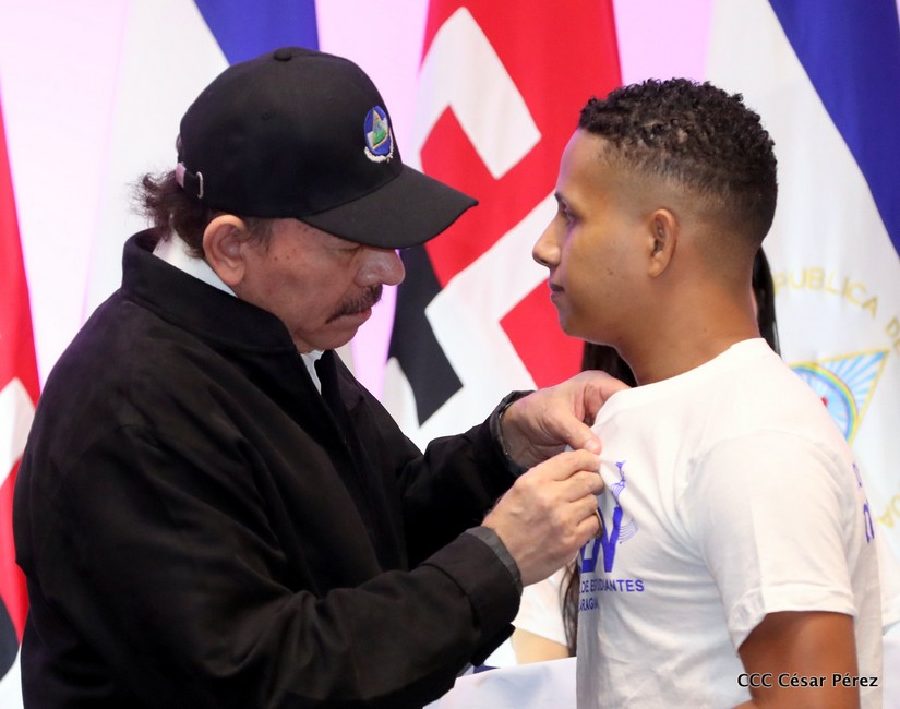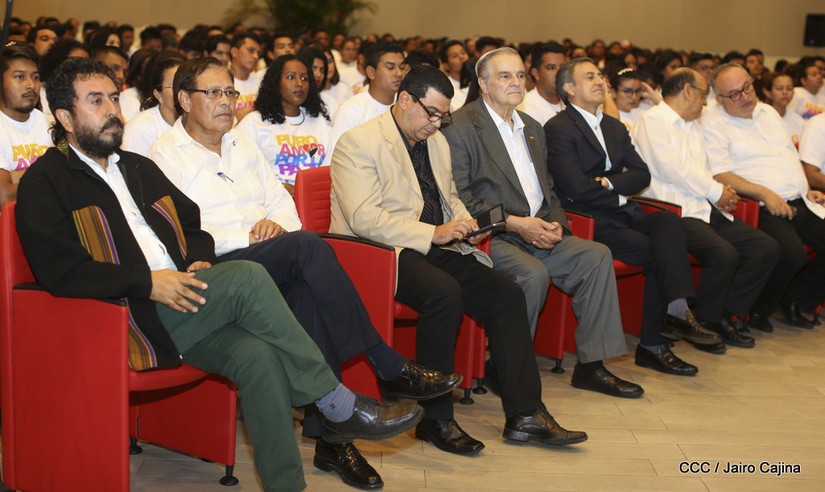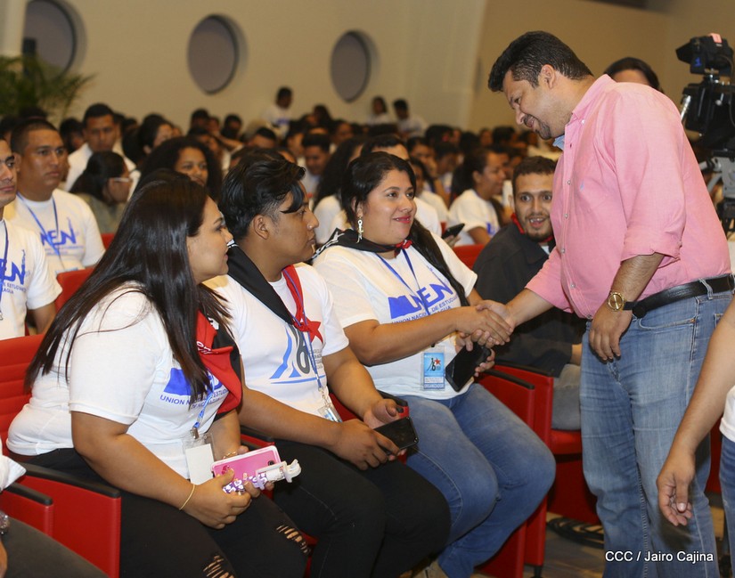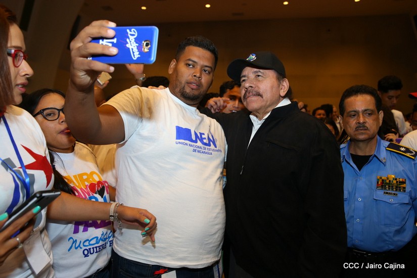 El Presidente de la República, comandante Daniel Ortega Saavedra y la vicepresidenta compañera Rosario Murillo, presidieron la noche de este lunes la clausura del XVI Congreso de la Unión Nacional de Estudiantes de Nicaragua (UNEN).