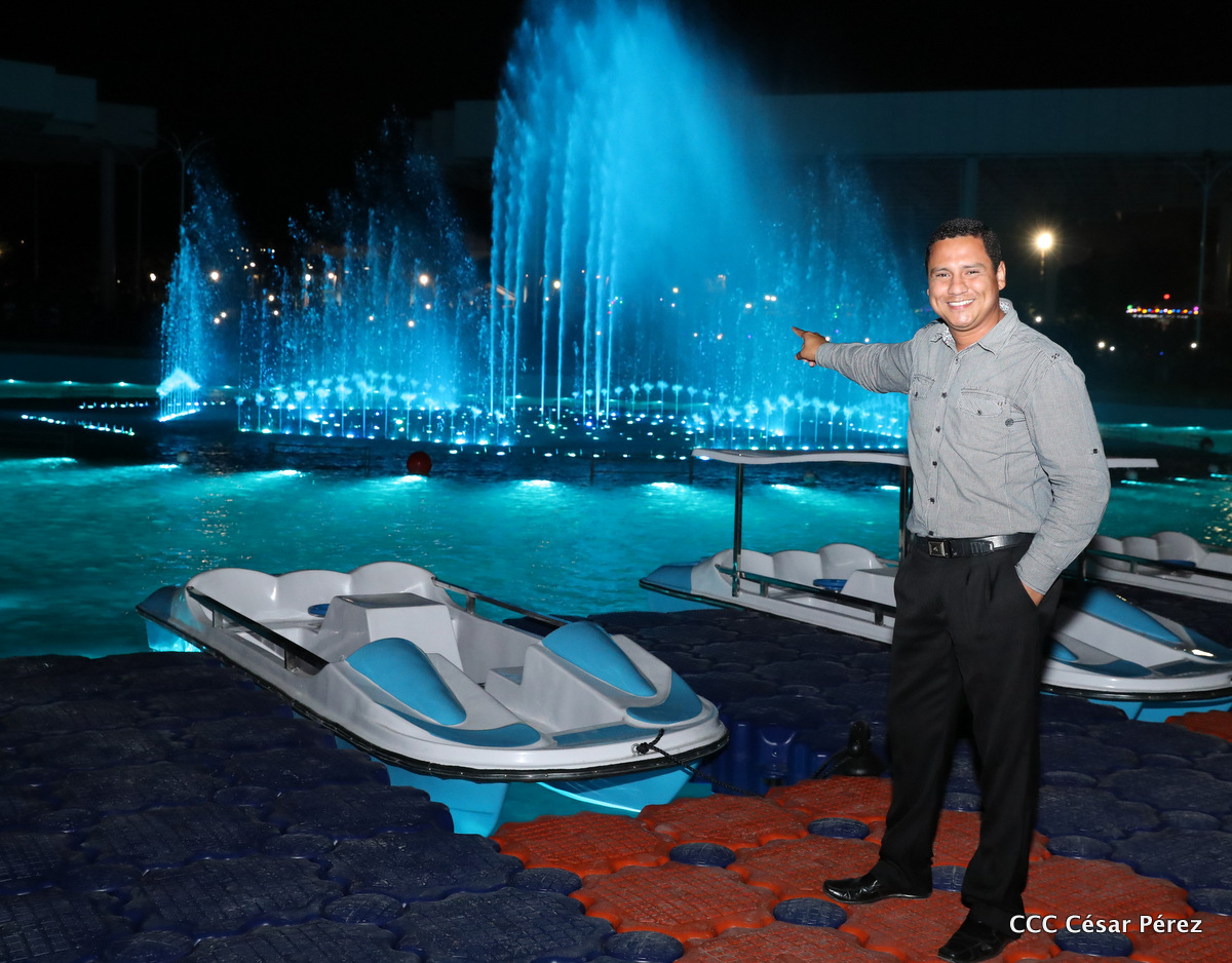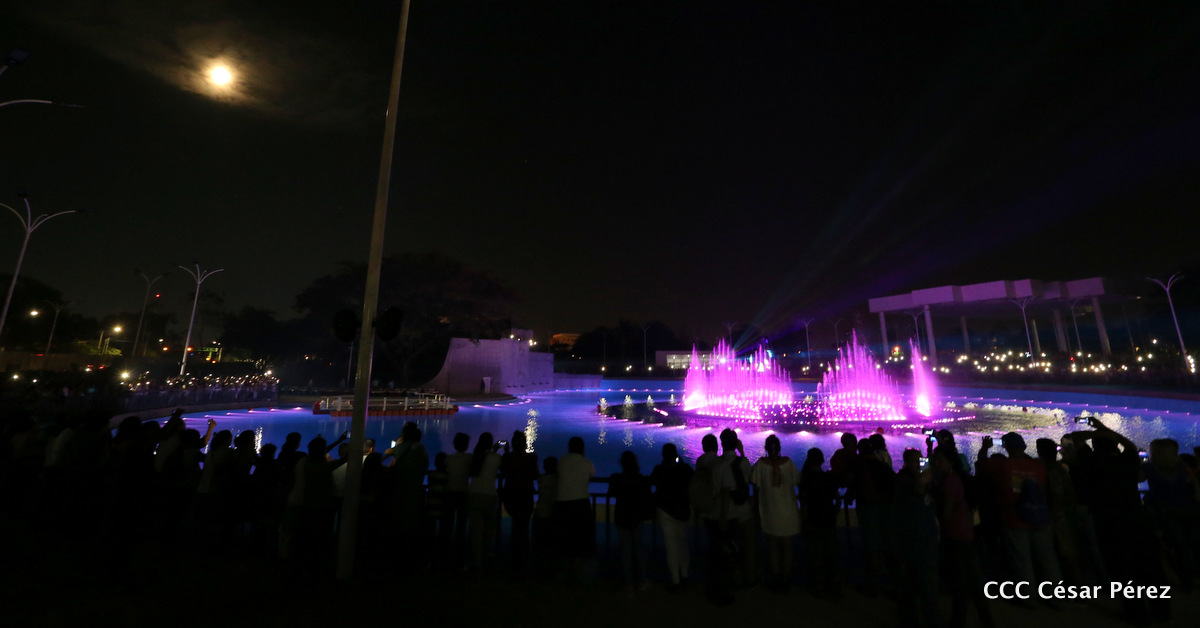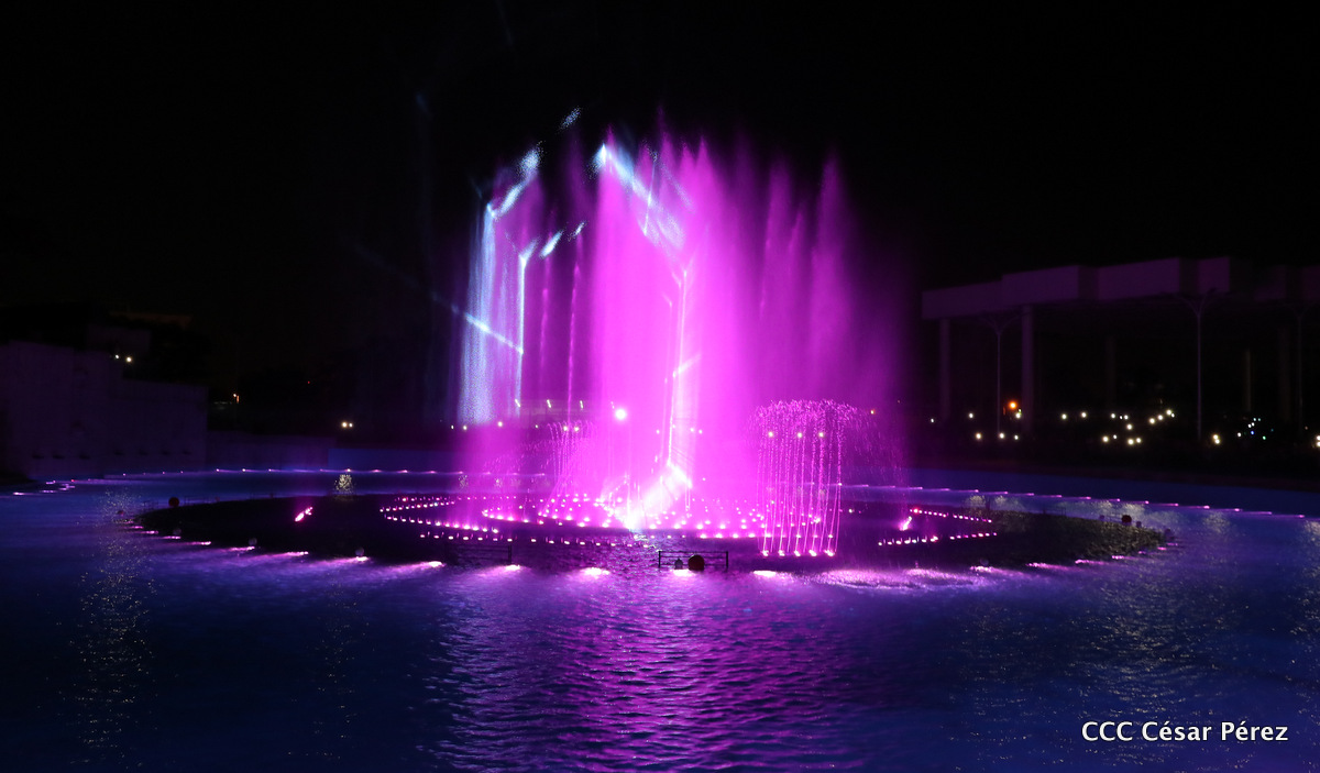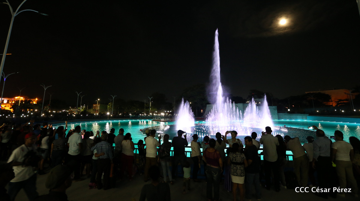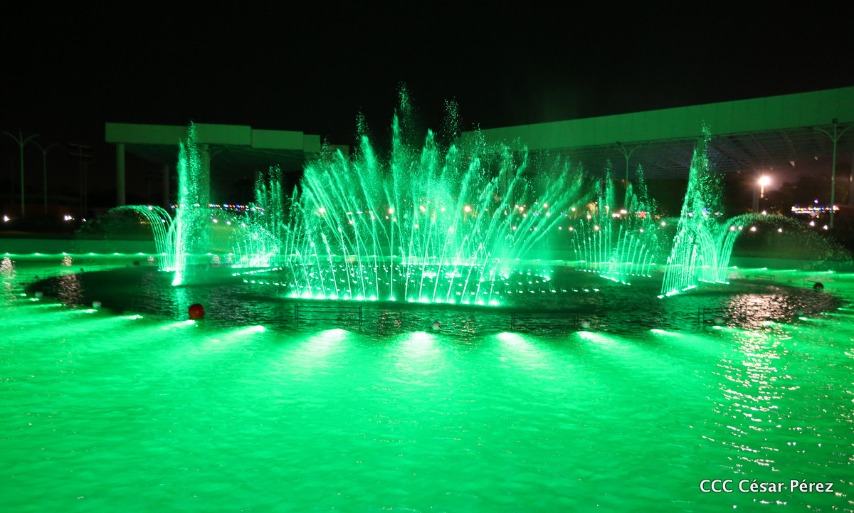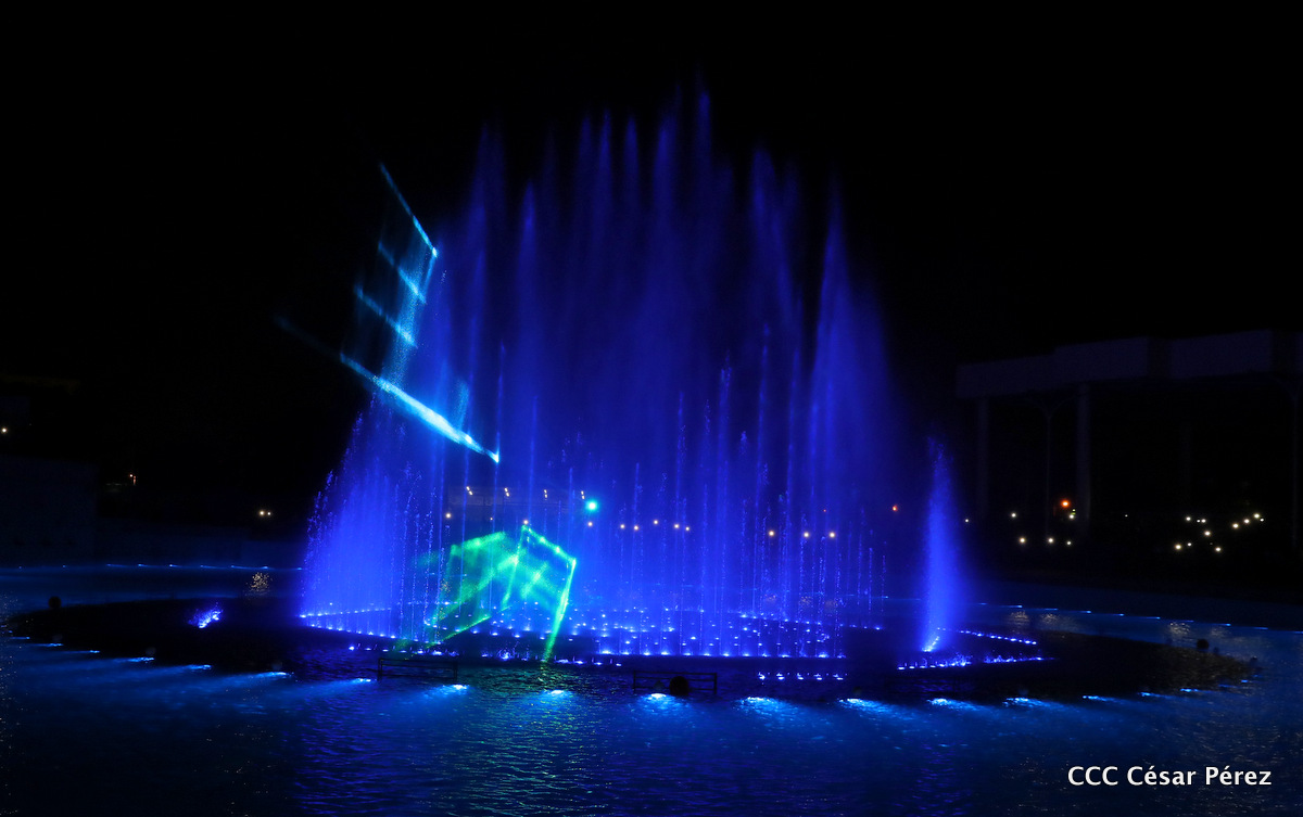 Tenemos también la Fuente Luminosa dentro del Lago Artificial, con impulsores de agua que alcanzan una altura entre 3 a 30 metros; y tenemos el Anfiteatro para Presentaciones Artísticas, con capacidad de 400 personas. Última Etapa del Parque Luis Alfonso, dedicada con Amor a las Familias de toda Nicaragua, a las Familias de Managua. ¡Un Monumento a la Paz y a la Vida !