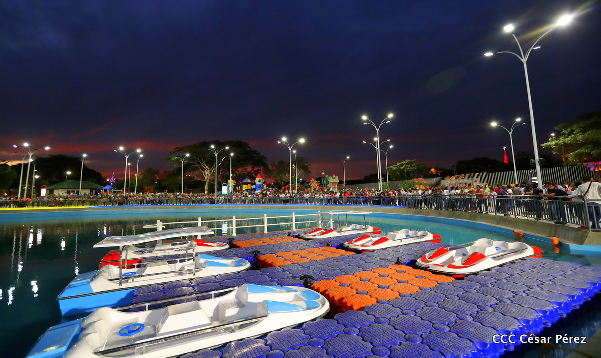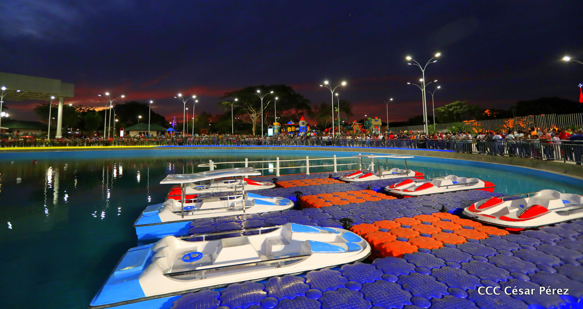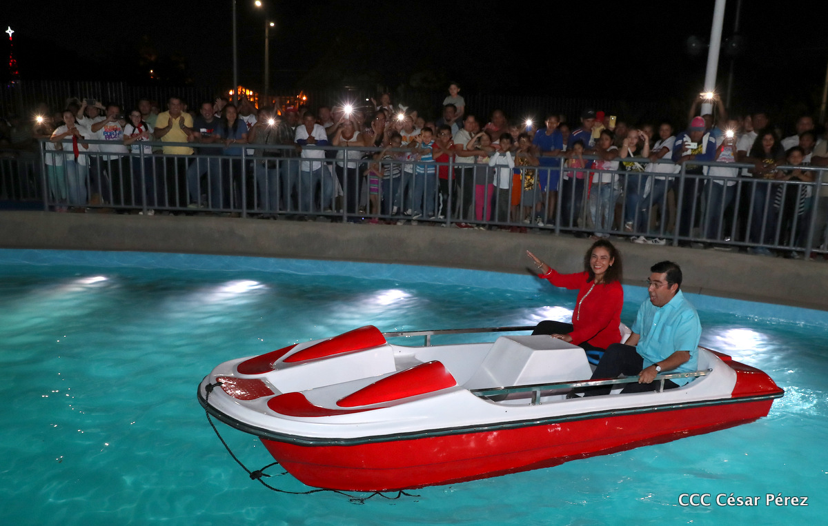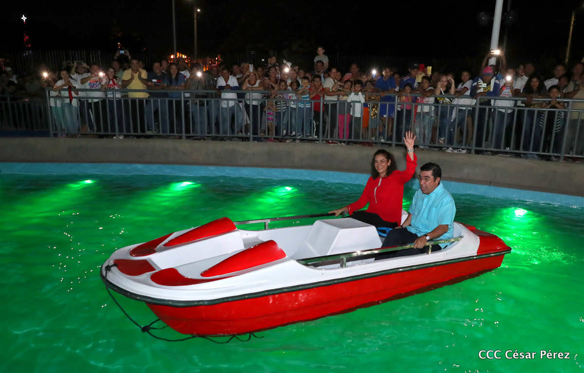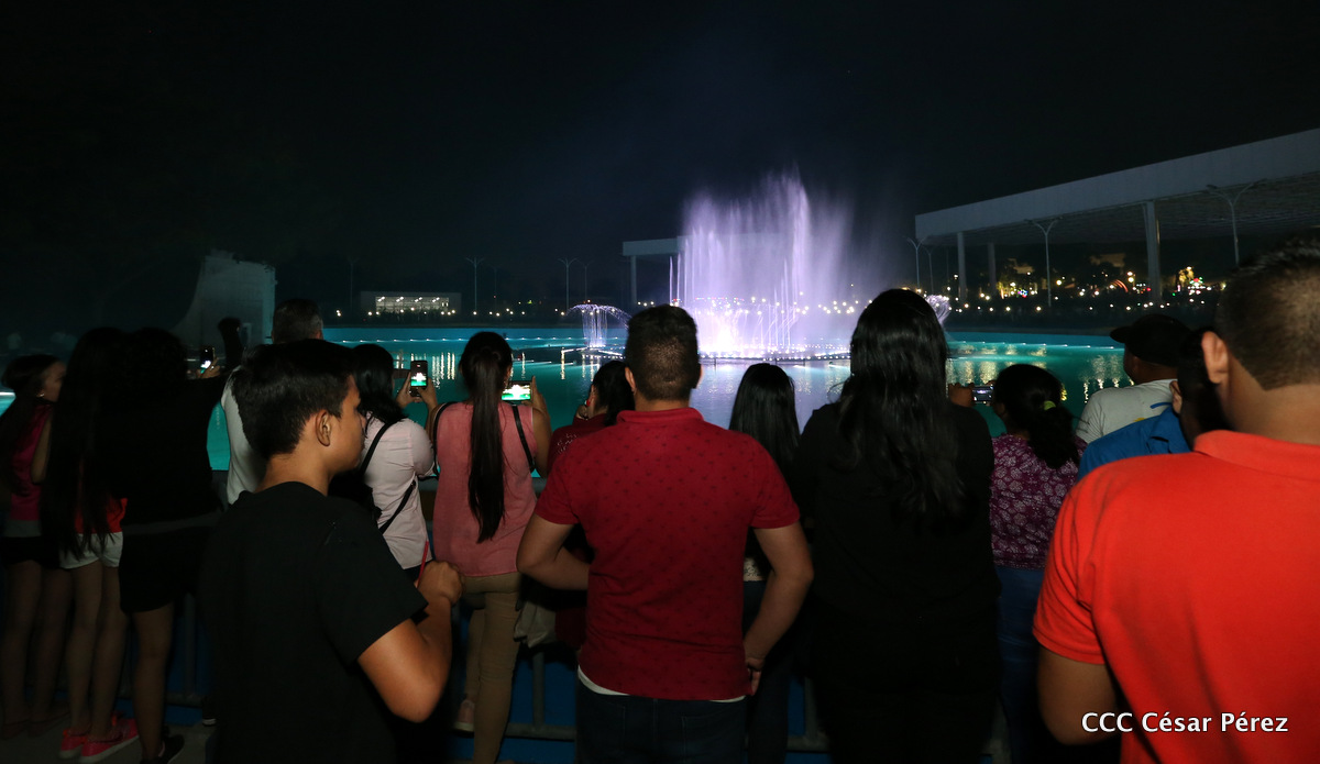 Tenemos también la Fuente Luminosa dentro del Lago Artificial, con impulsores de agua que alcanzan una altura entre 3 a 30 metros; y tenemos el Anfiteatro para Presentaciones Artísticas, con capacidad de 400 personas. Última Etapa del Parque Luis Alfonso, dedicada con Amor a las Familias de toda Nicaragua, a las Familias de Managua. ¡Un Monumento a la Paz y a la Vida !