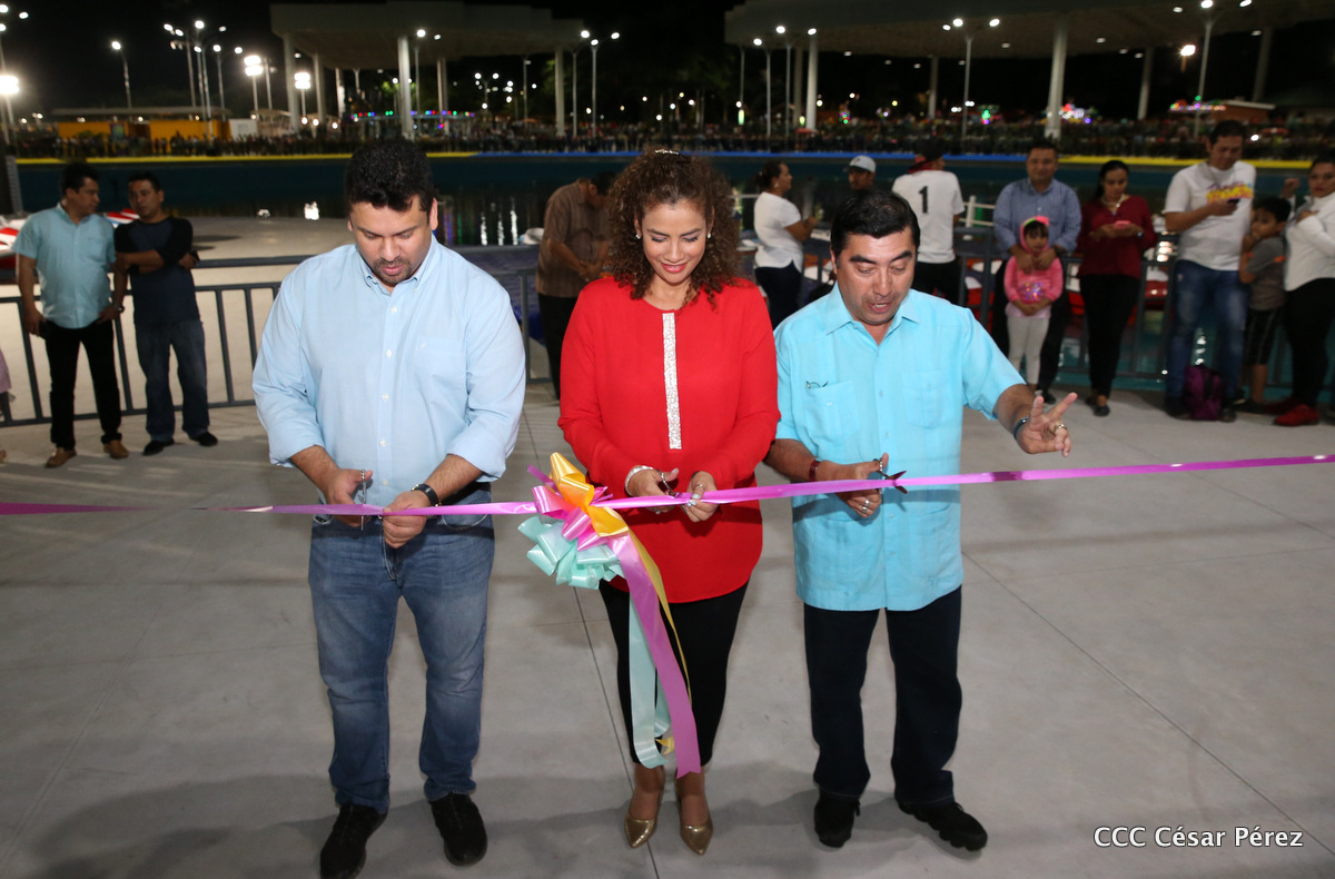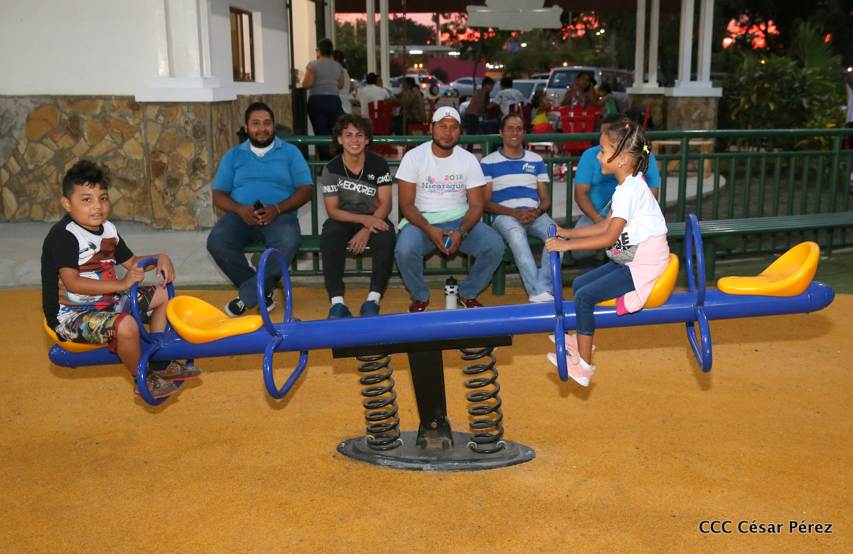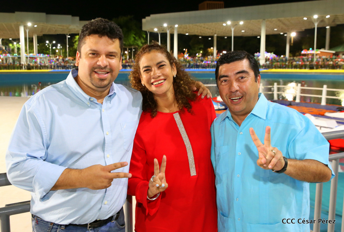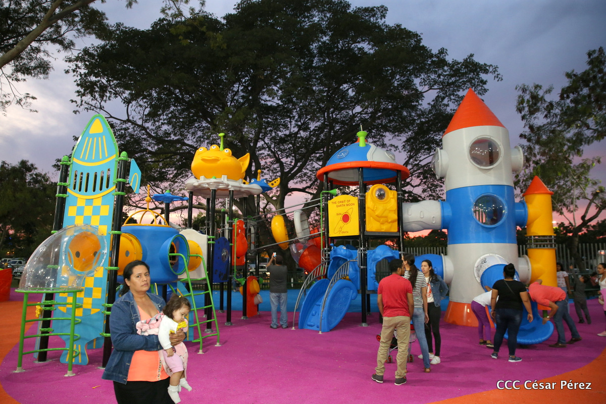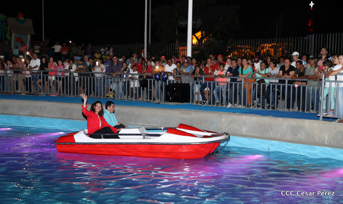Tenemos también la Fuente Luminosa dentro del Lago Artificial, con impulsores de agua que alcanzan una altura entre 3 a 30 metros; y tenemos el Anfiteatro para Presentaciones Artísticas, con capacidad de 400 personas. Última Etapa del Parque Luis Alfonso, dedicada con Amor a las Familias de toda Nicaragua, a las Familias de Managua. ¡Un Monumento a la Paz y a la Vida !