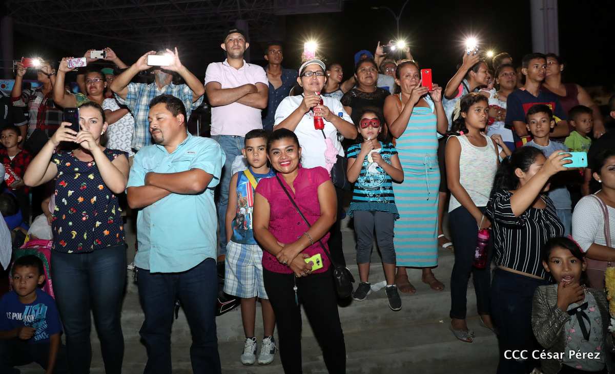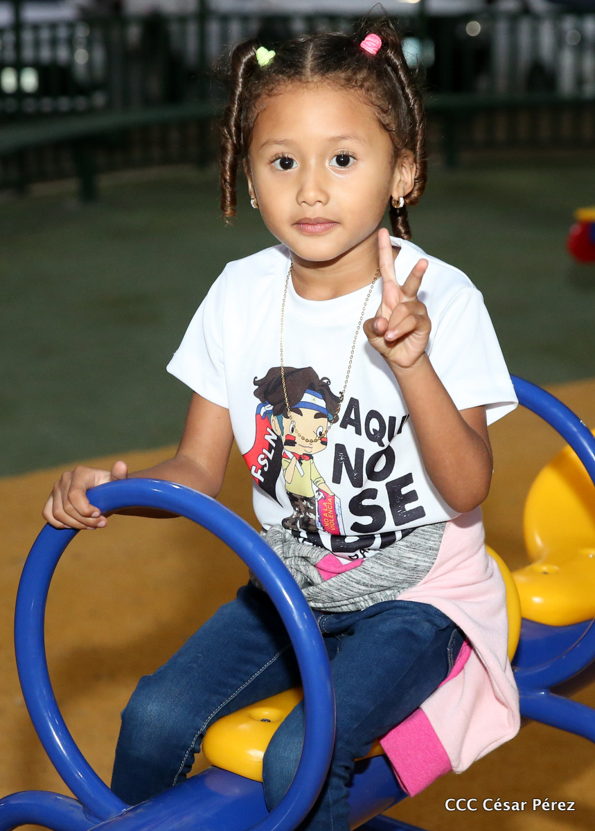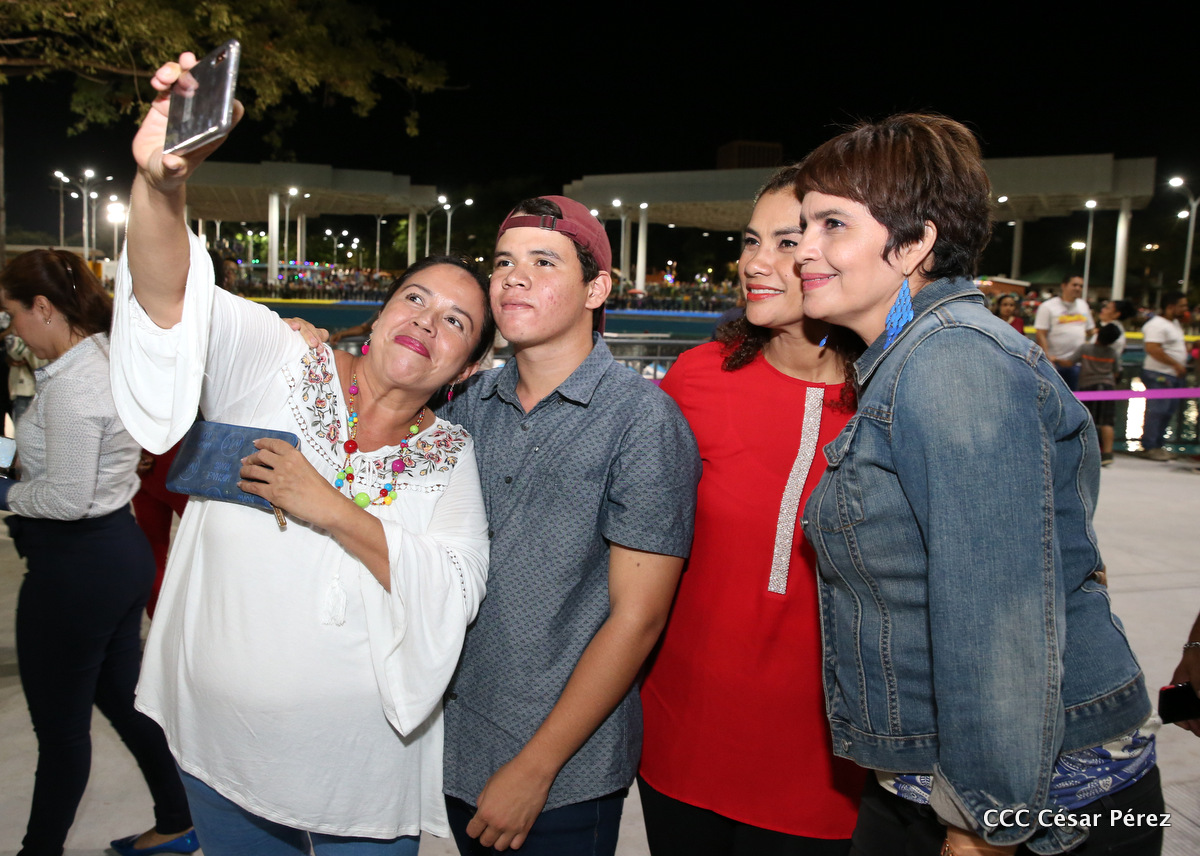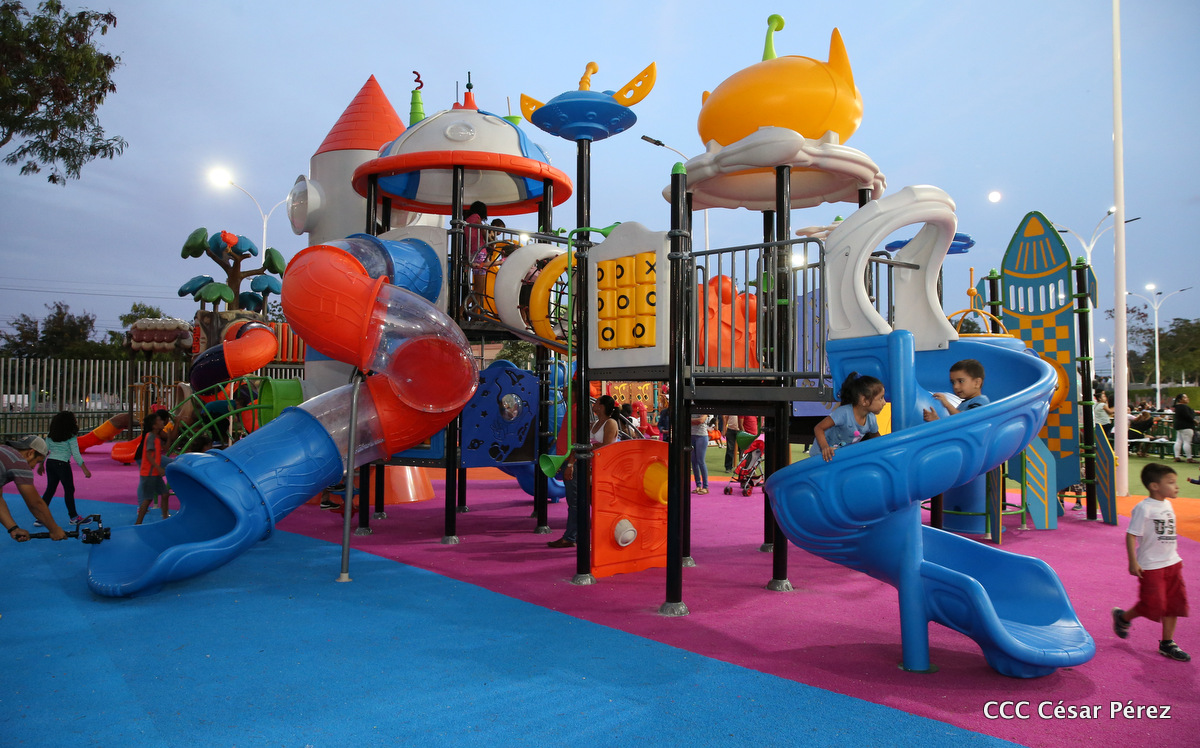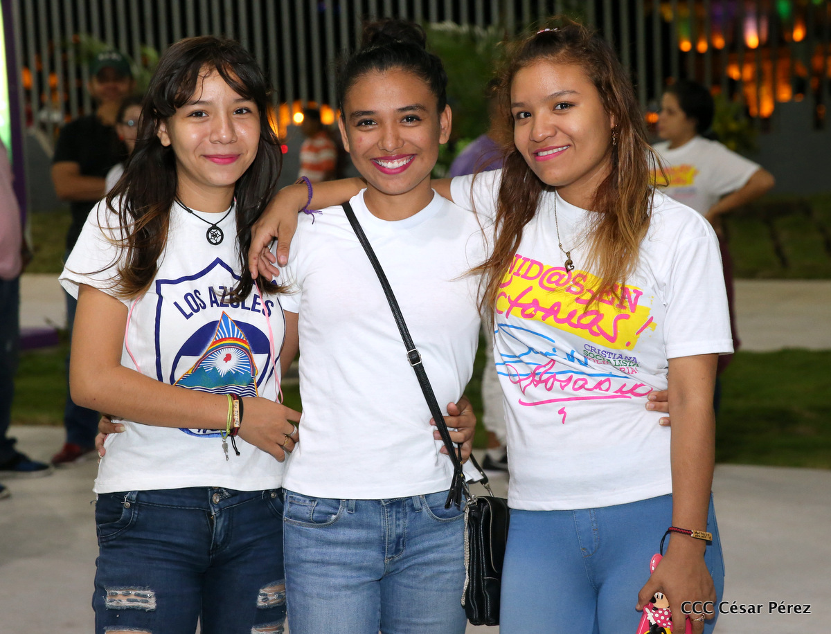 Tenemos también la Fuente Luminosa dentro del Lago Artificial, con impulsores de agua que alcanzan una altura entre 3 a 30 metros; y tenemos el Anfiteatro para Presentaciones Artísticas, con capacidad de 400 personas. Última Etapa del Parque Luis Alfonso, dedicada con Amor a las Familias de toda Nicaragua, a las Familias de Managua. ¡Un Monumento a la Paz y a la Vida !