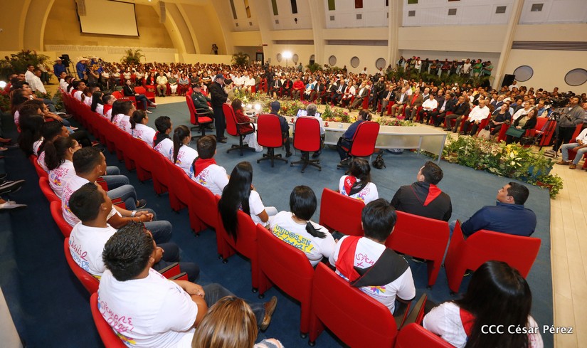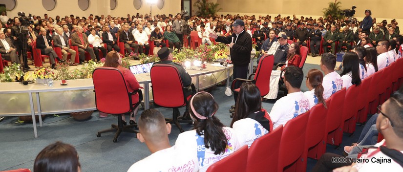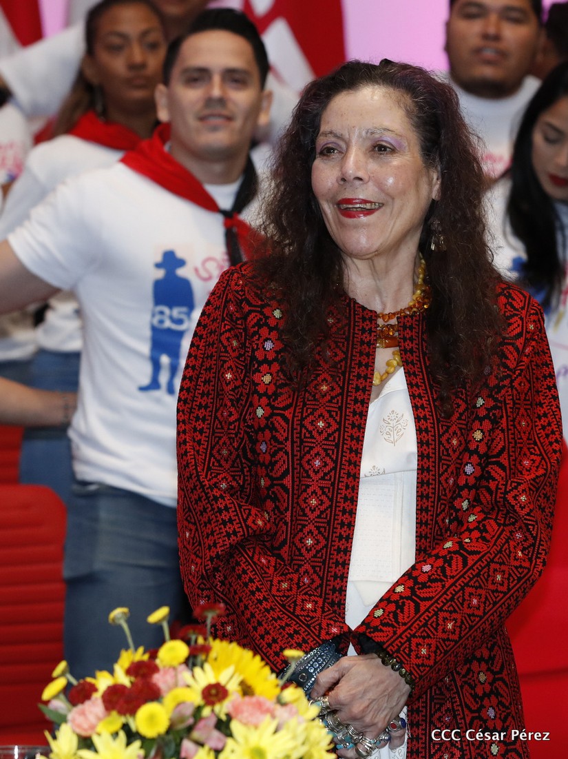 El presidente de la República, comandante Daniel Ortega Saavedra y la vicepresidenta compañera Rosario Murillo, presidieron en Managua el acto central del homenaje al general Augusto C. Sandino, en el 85 aniversario de su paso a la inmortalidad.