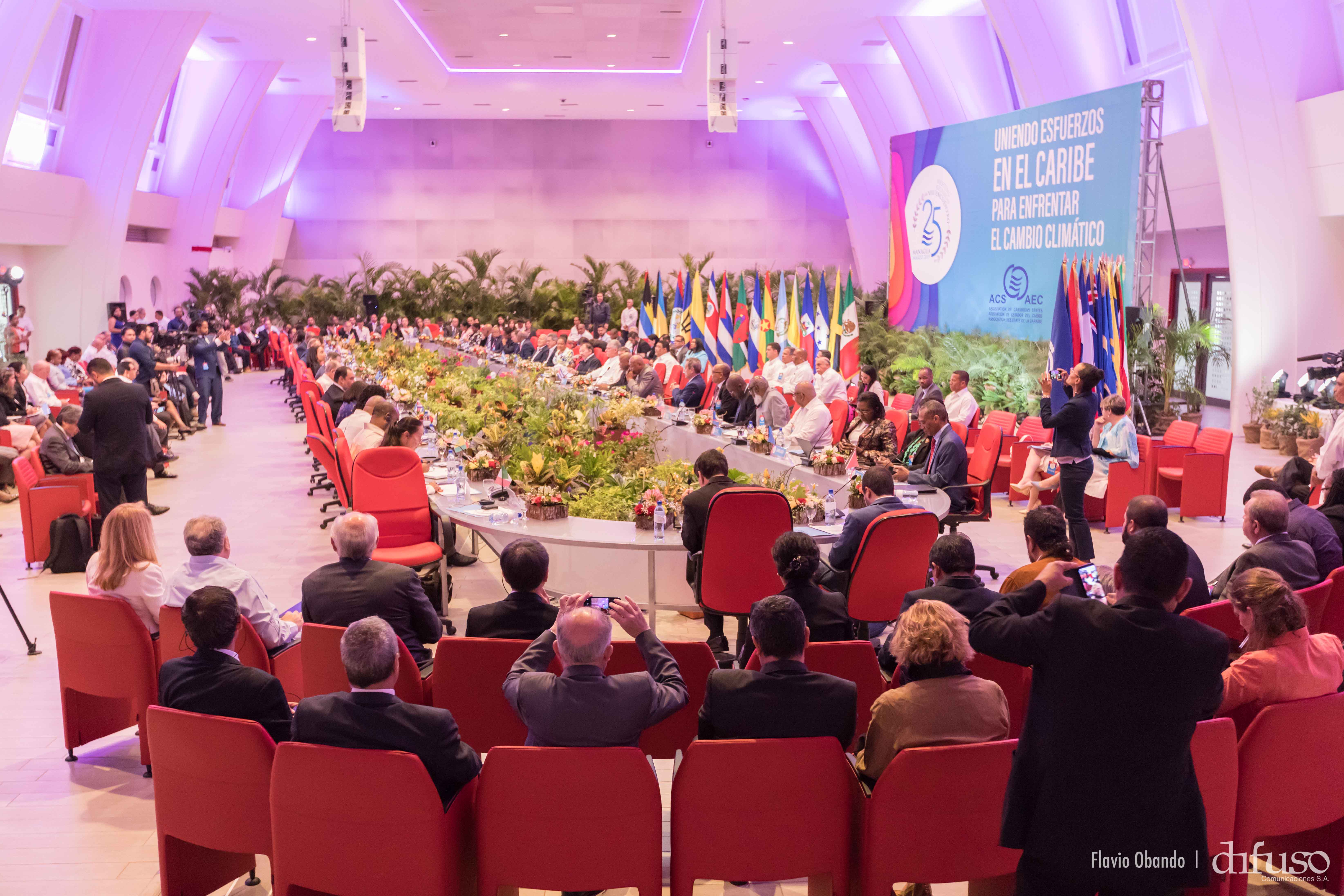 VIII Encuentro de los Jefes y Ministros de la Asociación de Estados del Caribe (AEC) celebrado en Nicaragua en el marco del XXV aniversario de constitución del organismo regional. En la reunión participaron representantes de las 25 naciones miembros y 9 estados asociados.