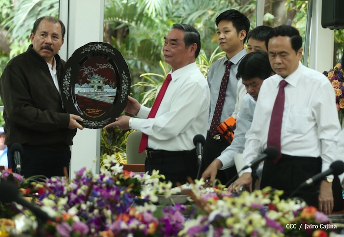 El Presidente de la República, Comandante Daniel Ortega Saavedra, sostuvo un encuentro con una delegación de alto nivel de la República de Vietnam, con la cual abordó la importancia de fortalecer las relaciones de amistad y cooperación entre ambos pueblos.
