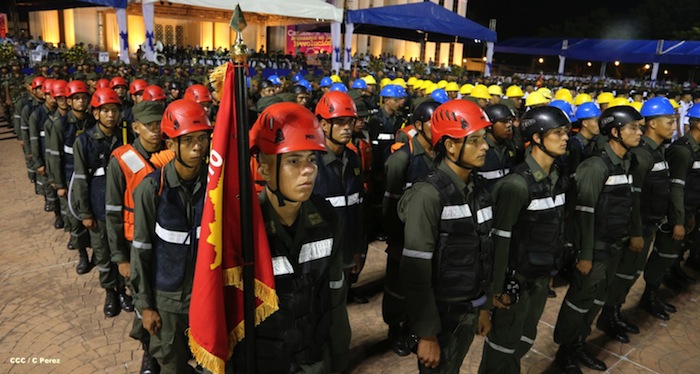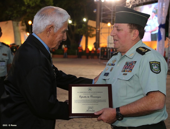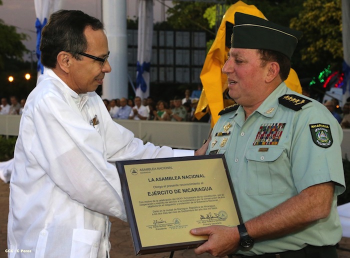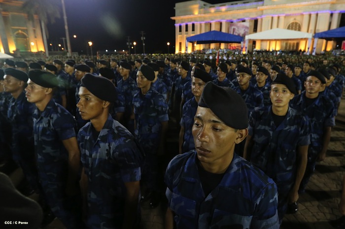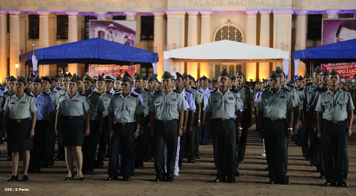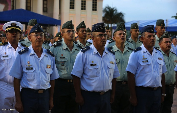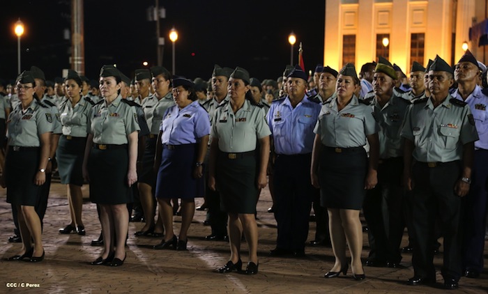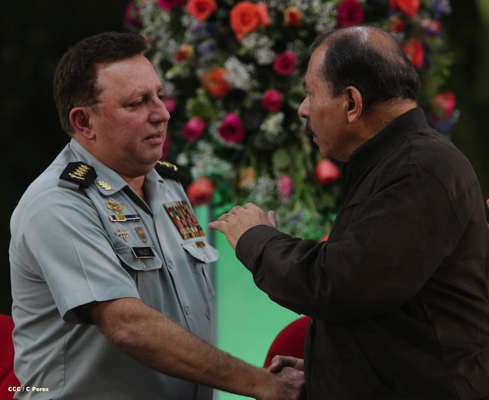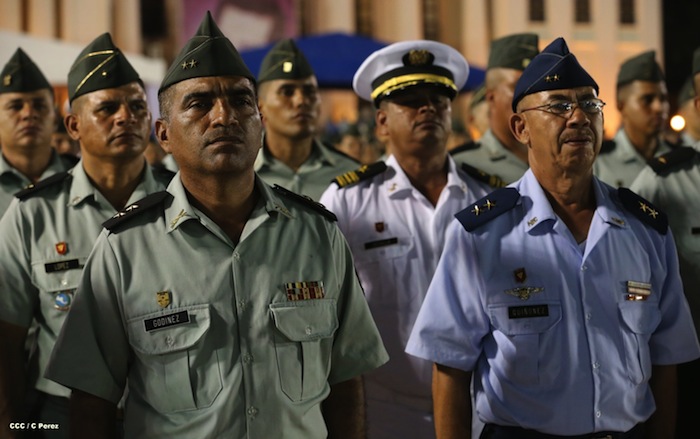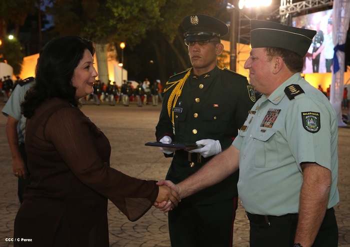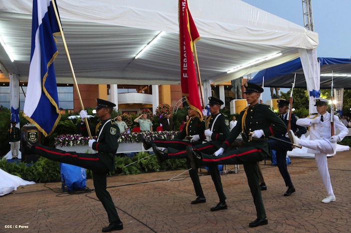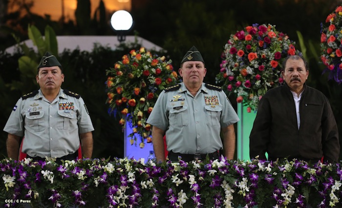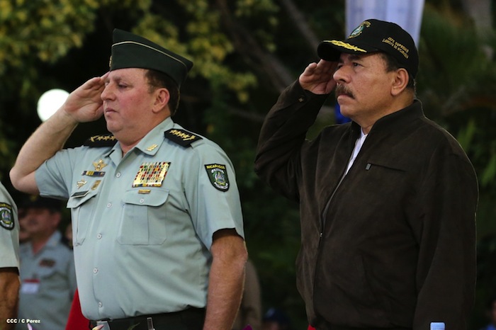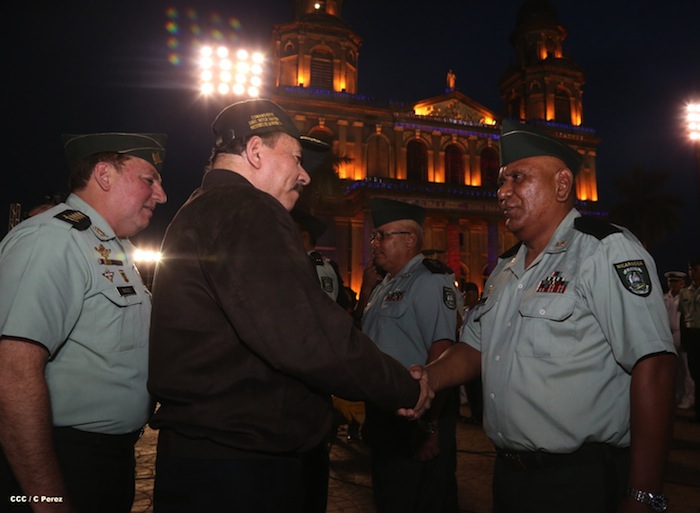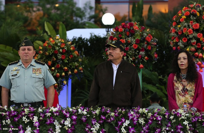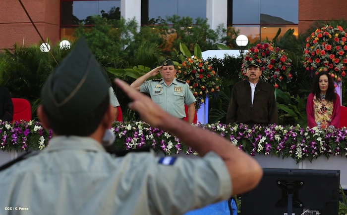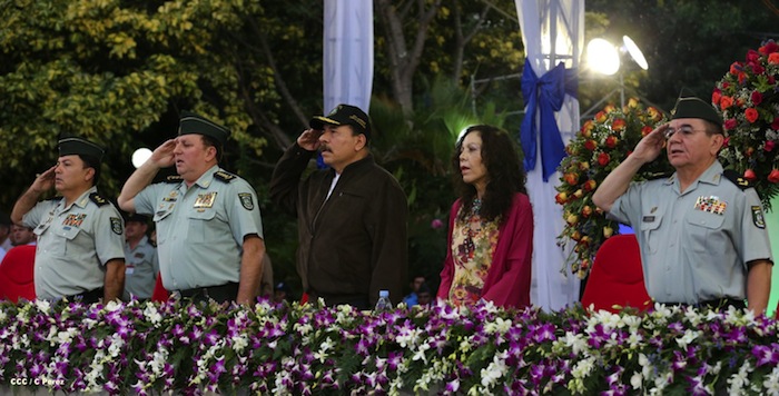 El presidente Daniel Ortega y la compañera Rosario Murillo presidieron el acto del 34 Aniversario del Ejército.