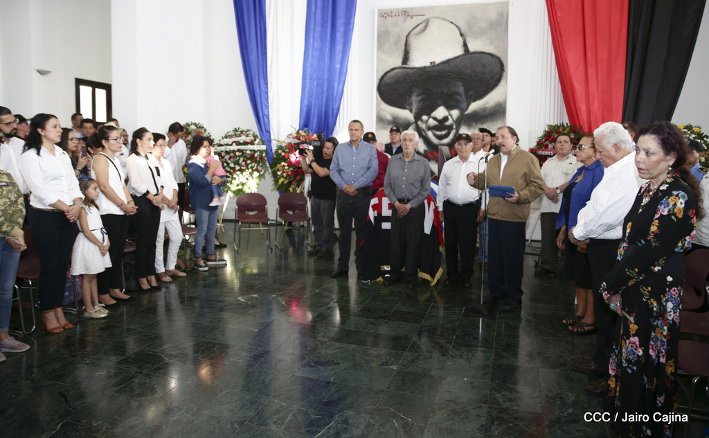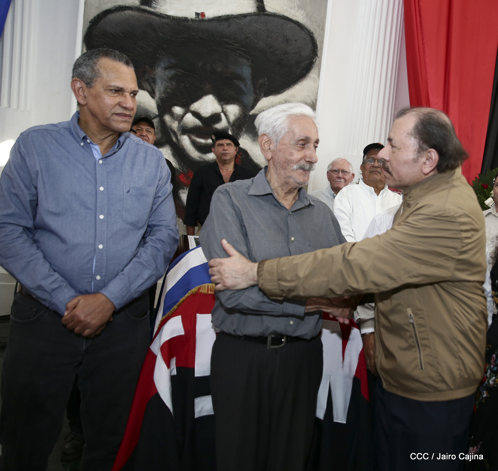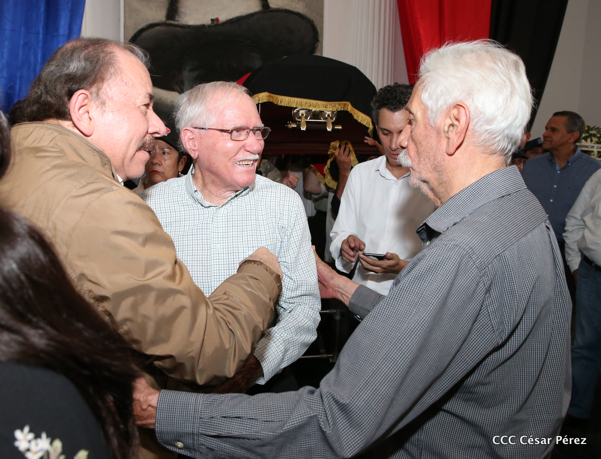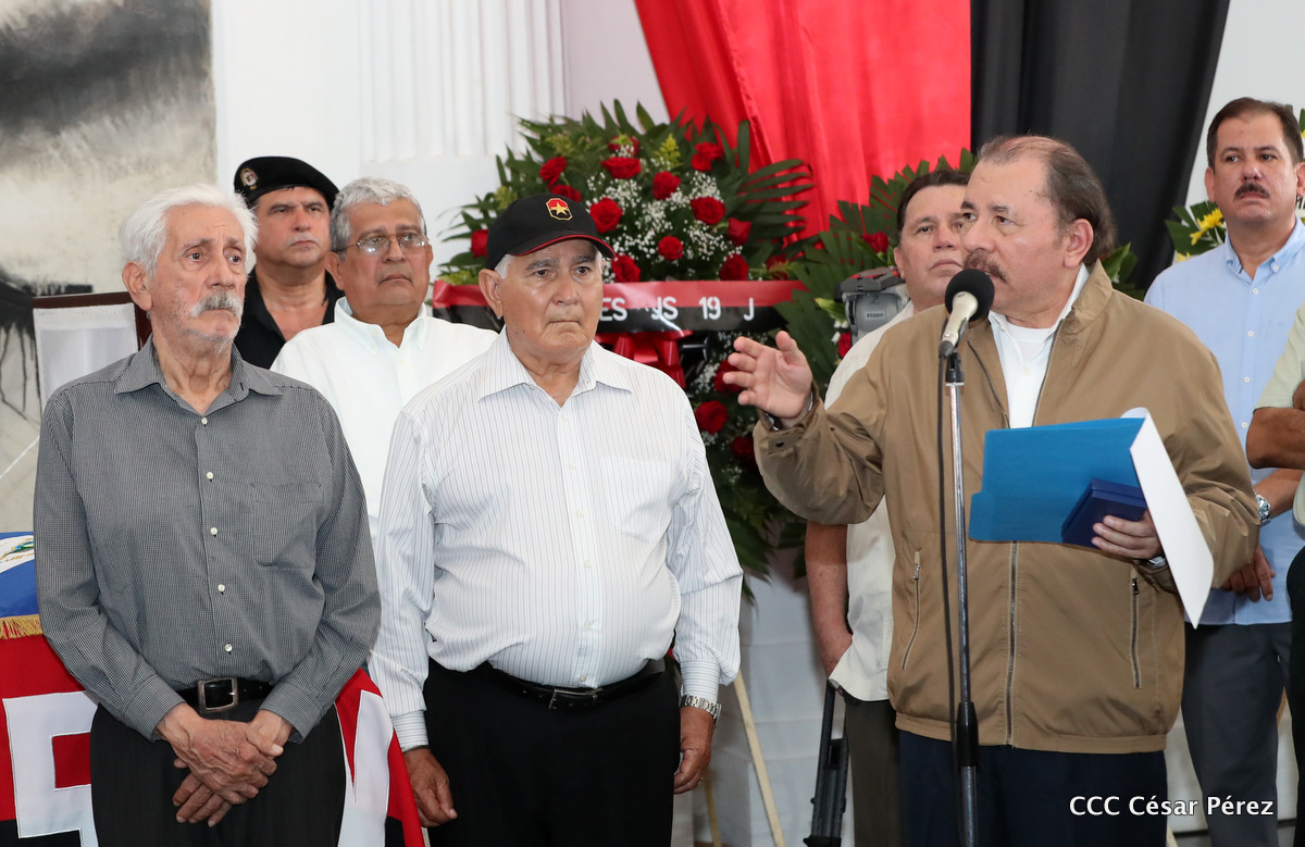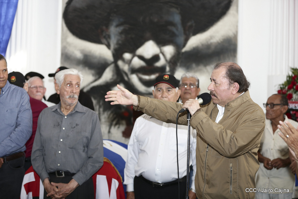 El presidente Daniel Ortega y la compañera vicepresidenta Rosario Murillo, despidieron este lunes 3 de junio al comandante Raúl Venero y el mandatario le otorgó póstumamente la Orden General de Hombres Libres Augusto C. Sandino, la que le fue entregada a su viuda María Félix Fernández.