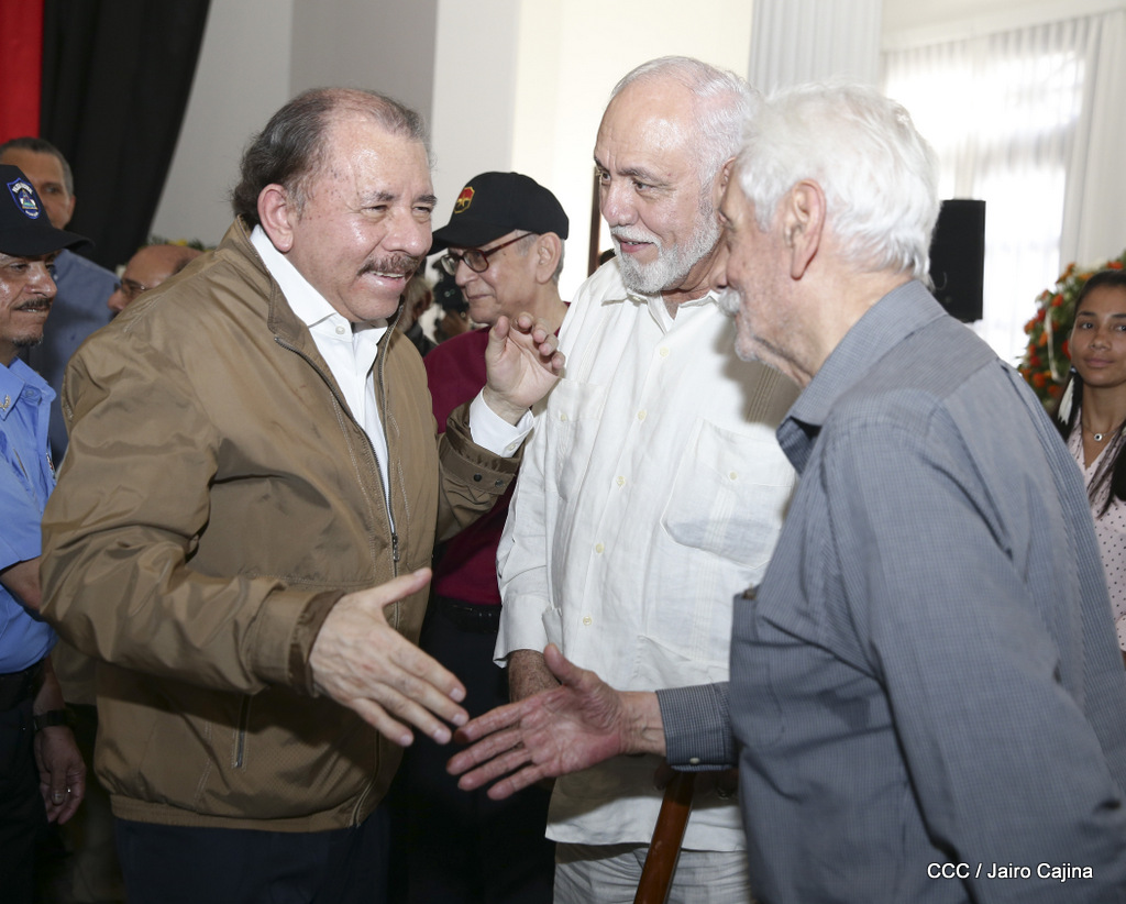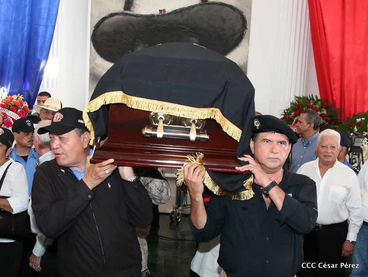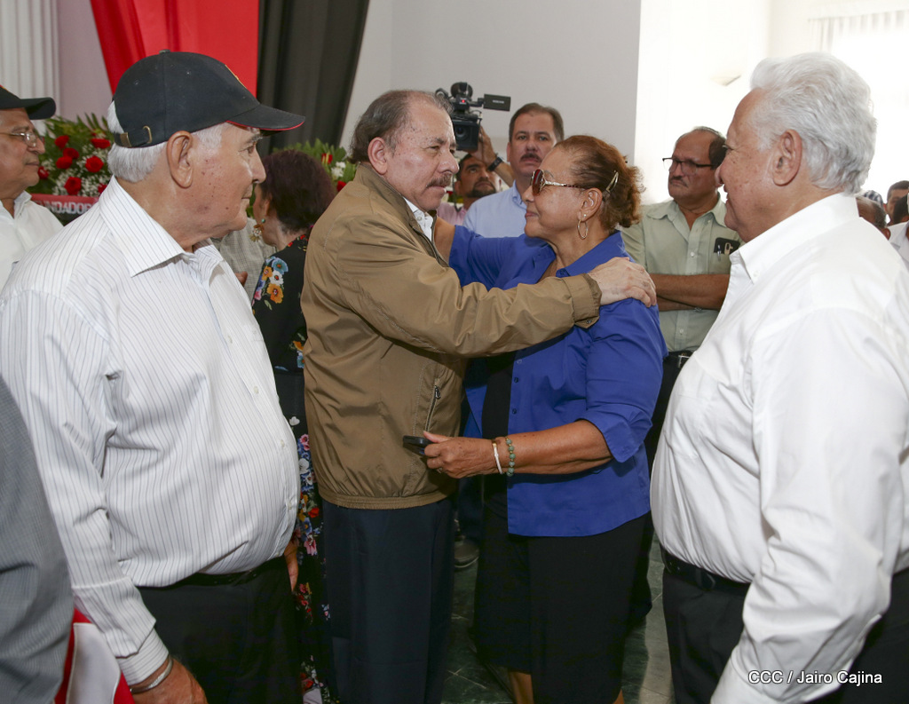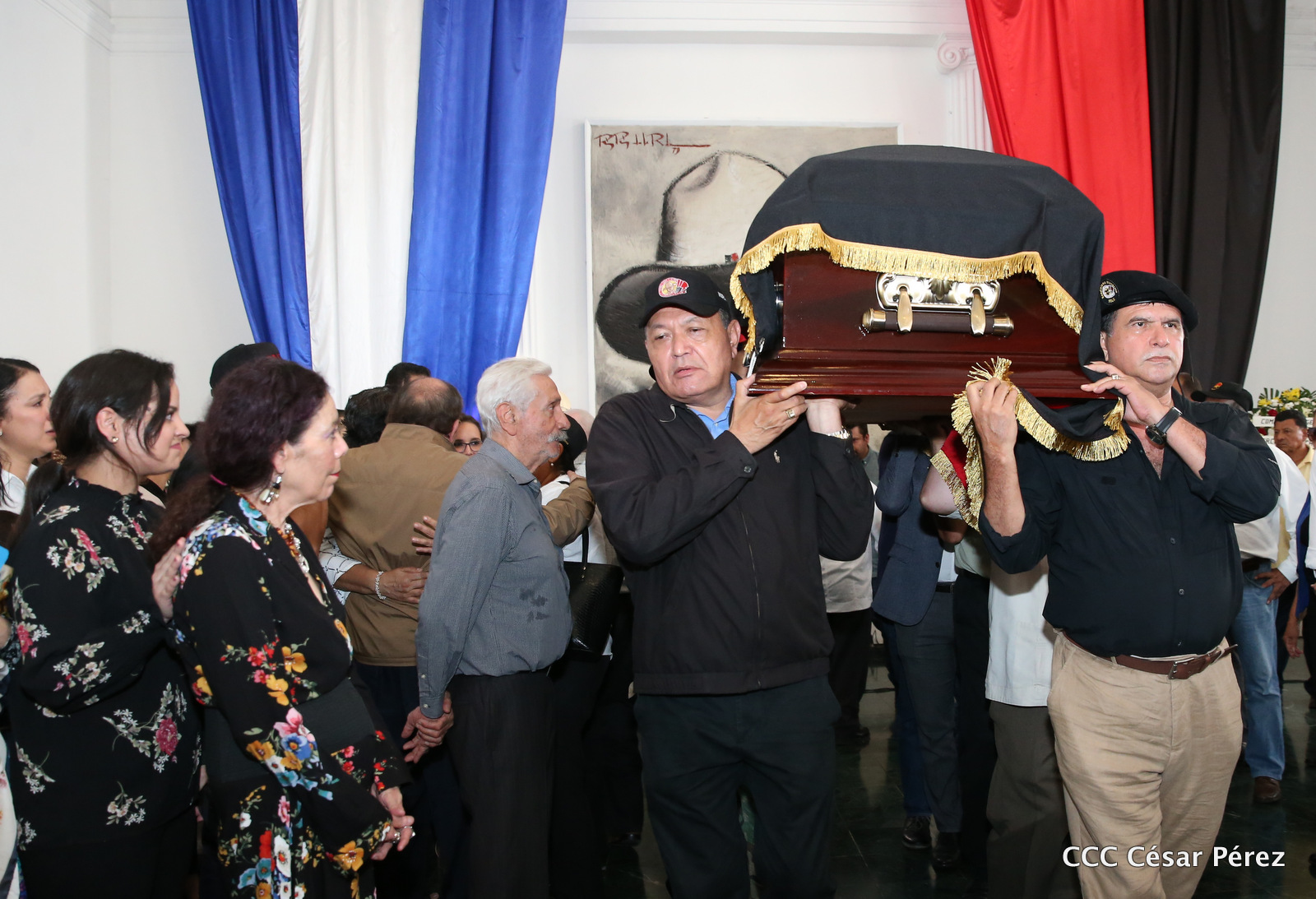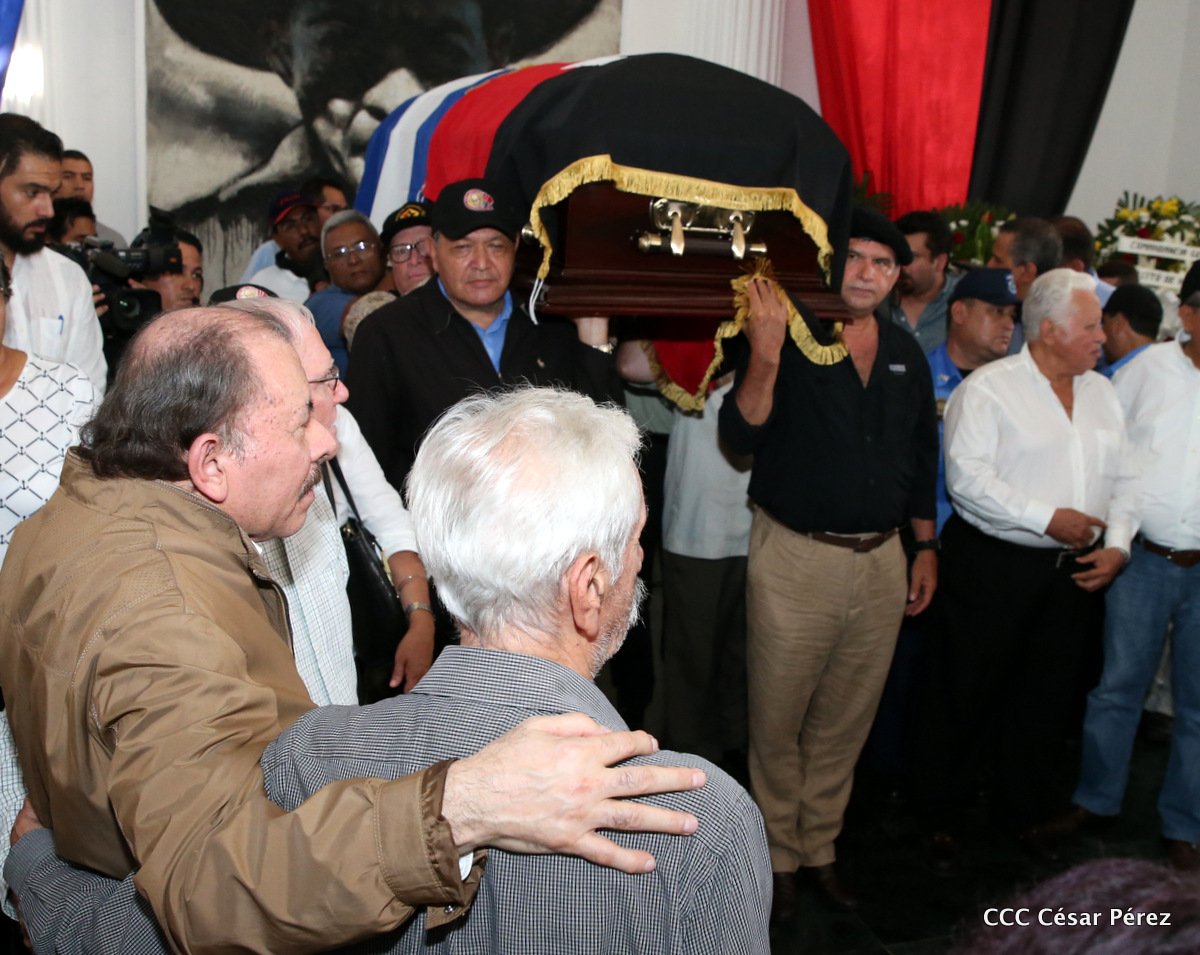 El presidente Daniel Ortega y la compañera vicepresidenta Rosario Murillo, despidieron este lunes 3 de junio al comandante Raúl Venero y el mandatario le otorgó póstumamente la Orden General de Hombres Libres Augusto C. Sandino, la que le fue entregada a su viuda María Félix Fernández.