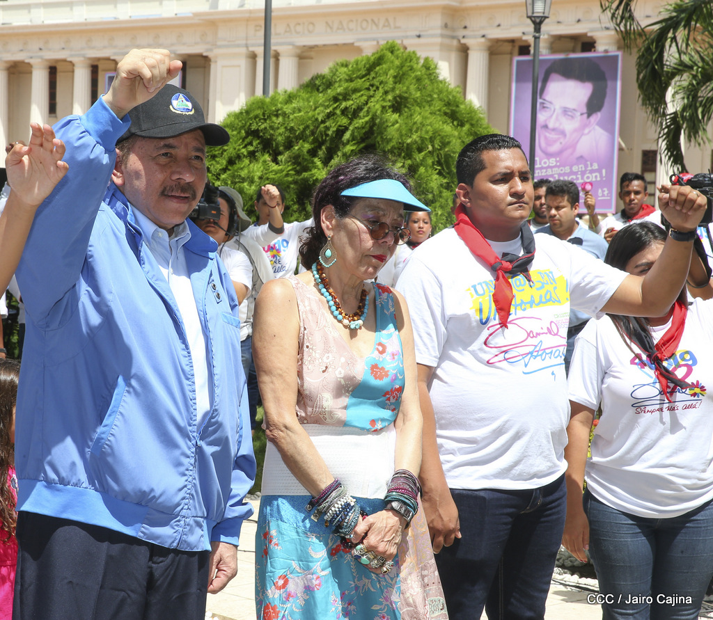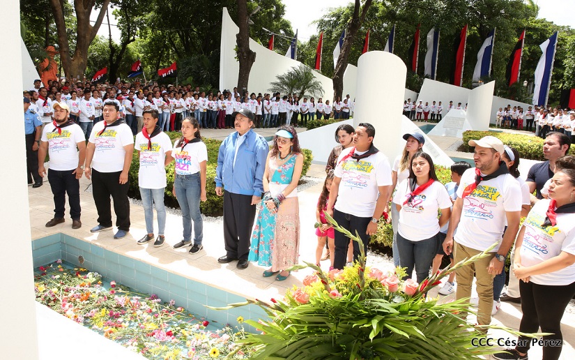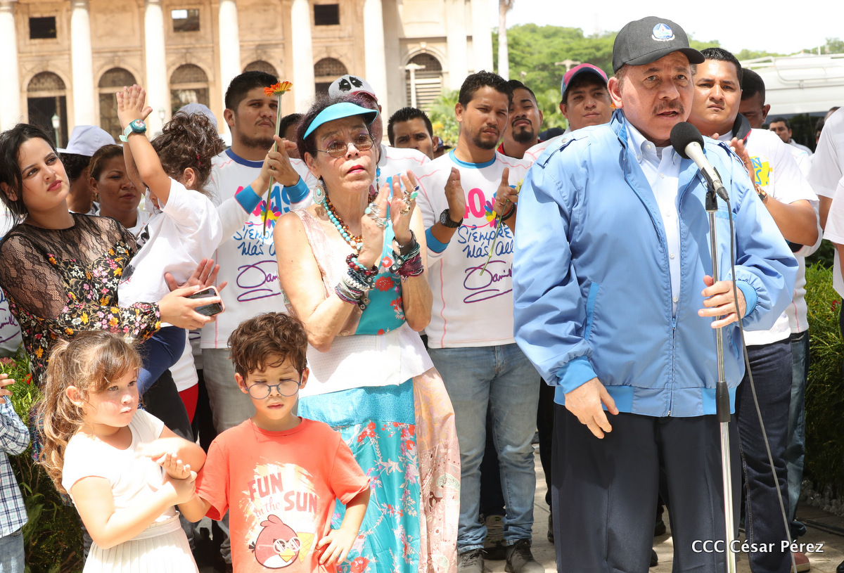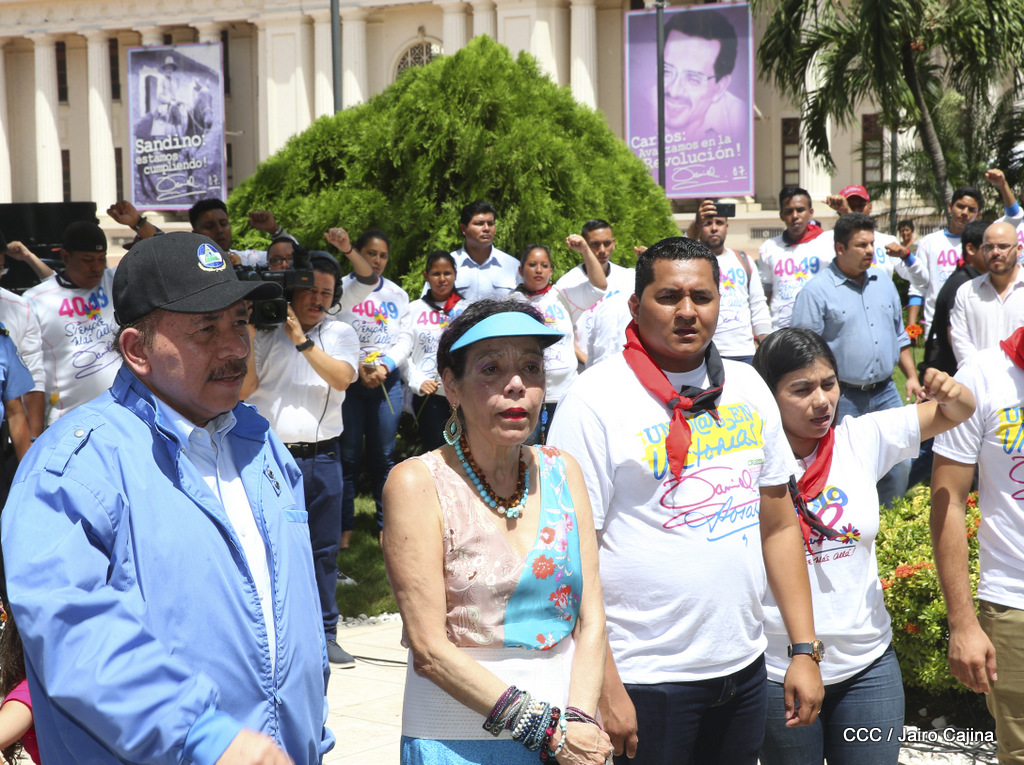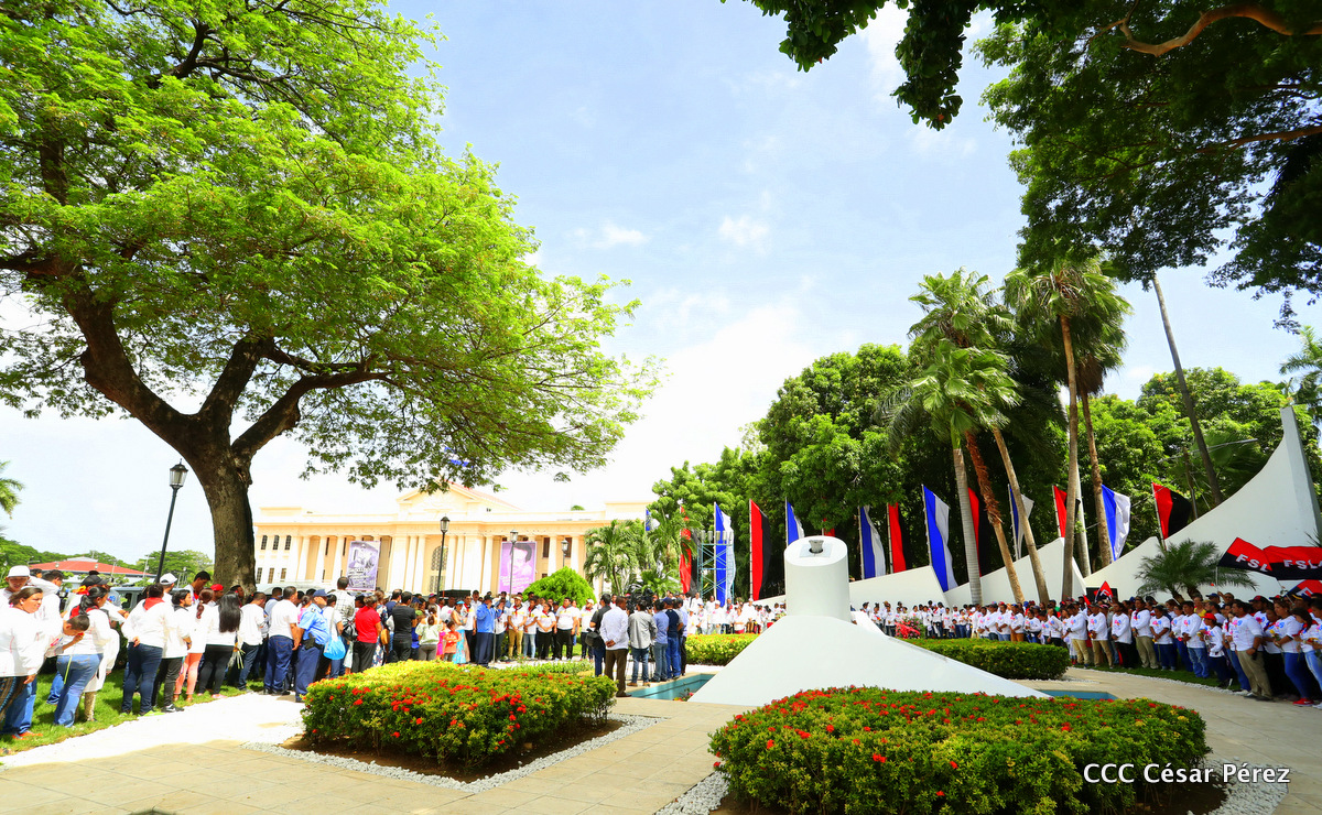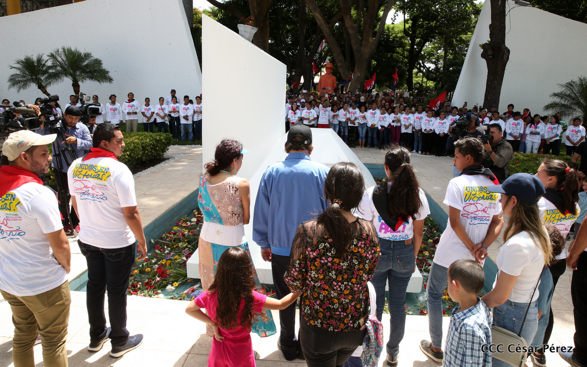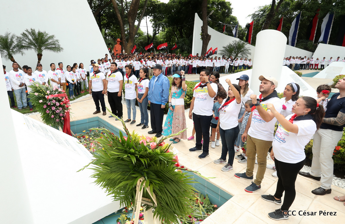 "Hoy en el aniversario de su nacimiento le decimos a Carlos que aquí estamos siempre luchando por la paz, porque queremos la paz, no queremos confrontación no queremos guerra, la paz que tantos nos ha costado conquistar, que tanto nos ha costado alcanzar, cuantos héroes, cuantos mártires a lo largo de nuestra historia para alcanzar la paz, para conquistar la paz”, reiteró el Comandante Daniel Ortega, Presidente de la República, en el homenaje al Comandante Carlos Fonseca Amador, en celebración del 83 aniversario del natalicio del Padre de la Revolución Popular Sandinista.