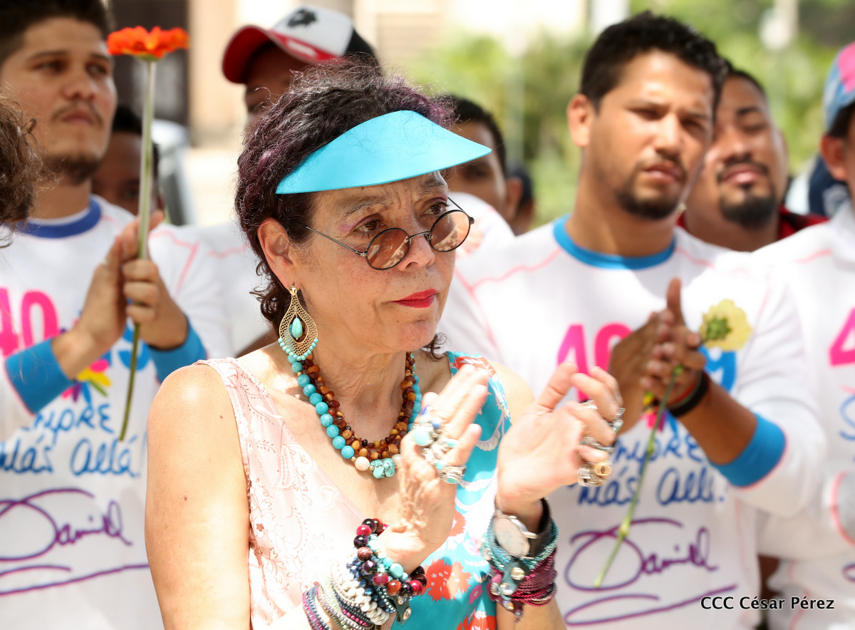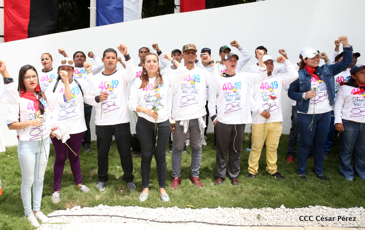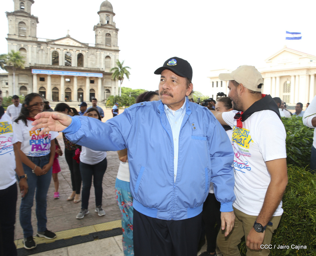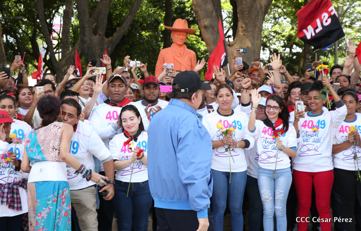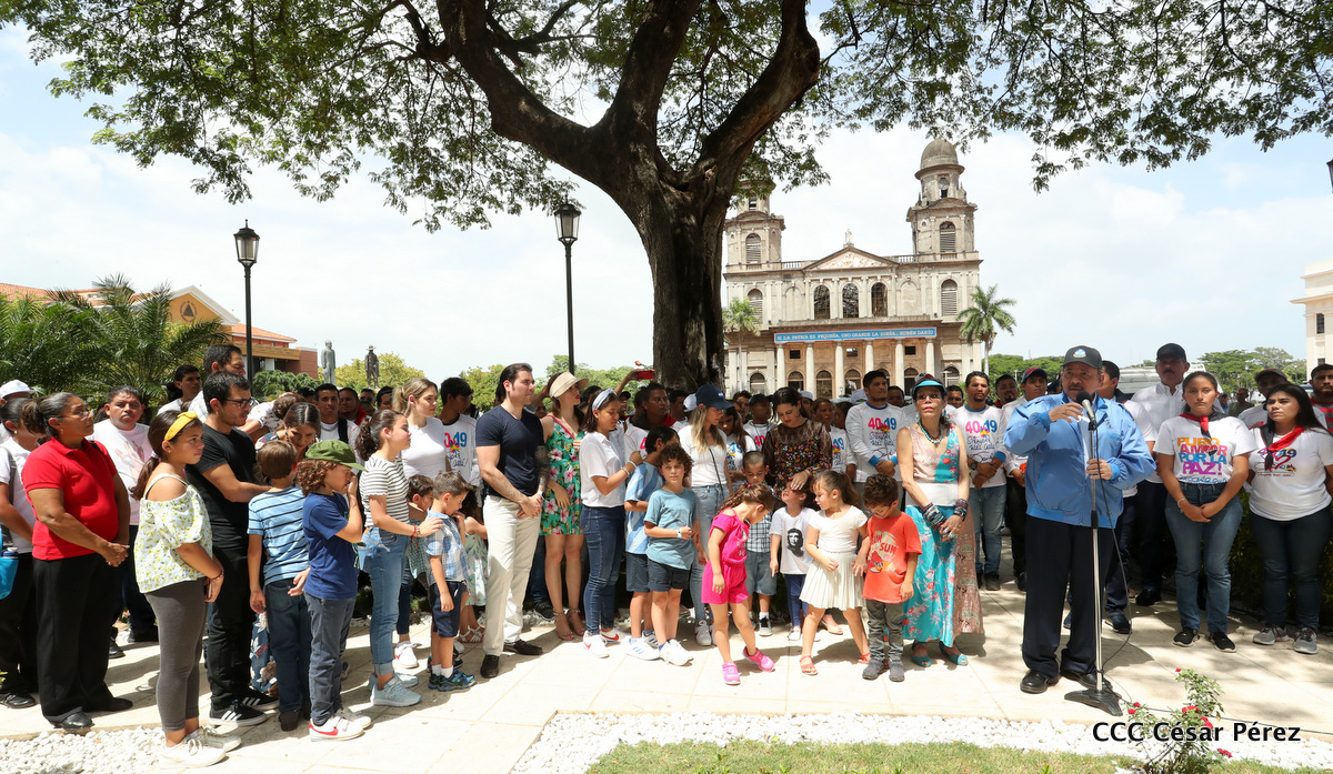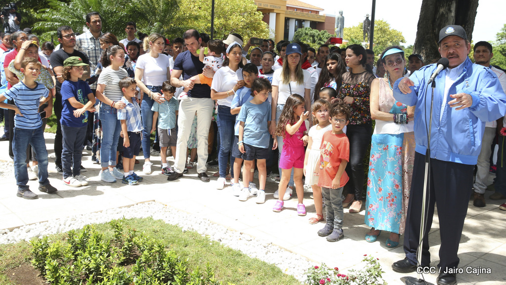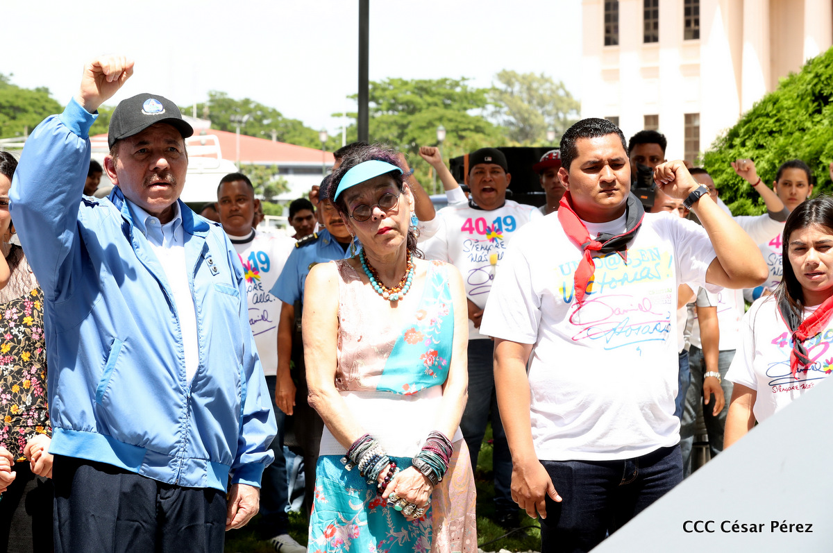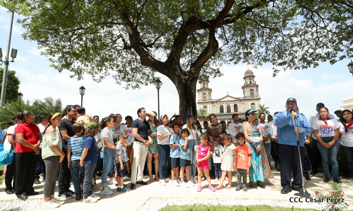 "Hoy en el aniversario de su nacimiento le decimos a Carlos que aquí estamos siempre luchando por la paz, porque queremos la paz, no queremos confrontación no queremos guerra, la paz que tantos nos ha costado conquistar, que tanto nos ha costado alcanzar, cuantos héroes, cuantos mártires a lo largo de nuestra historia para alcanzar la paz, para conquistar la paz”, reiteró el Comandante Daniel Ortega, Presidente de la República, en el homenaje al Comandante Carlos Fonseca Amador, en celebración del 83 aniversario del natalicio del Padre de la Revolución Popular Sandinista.