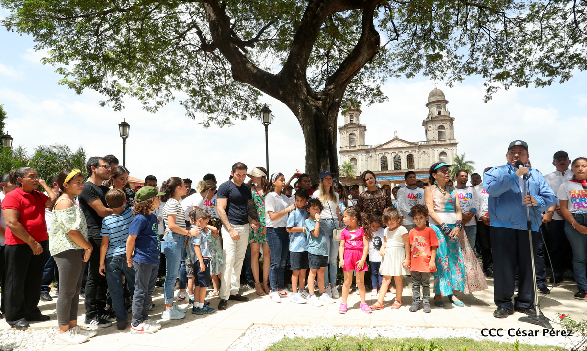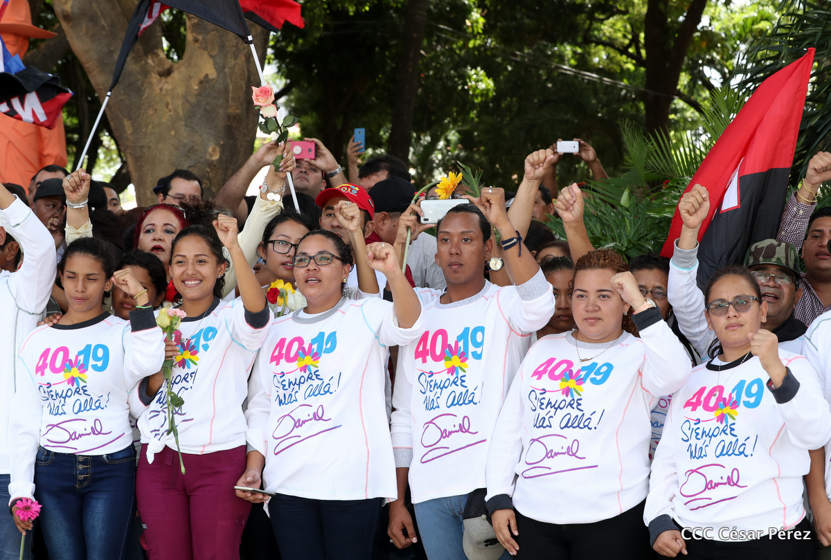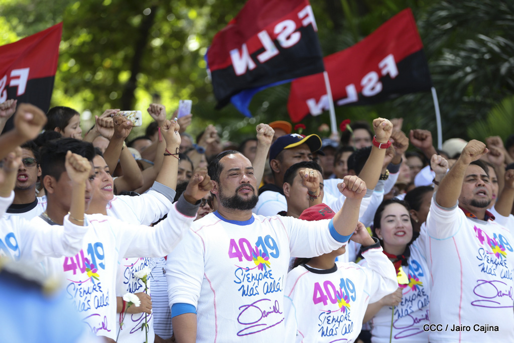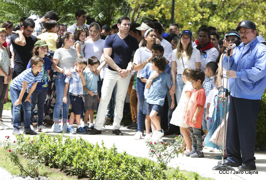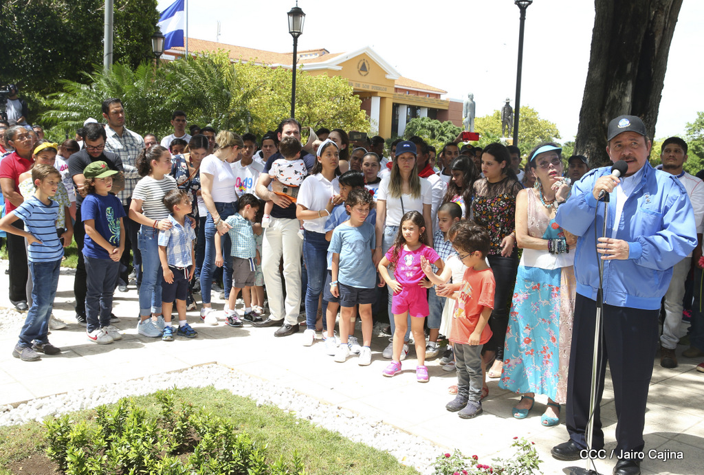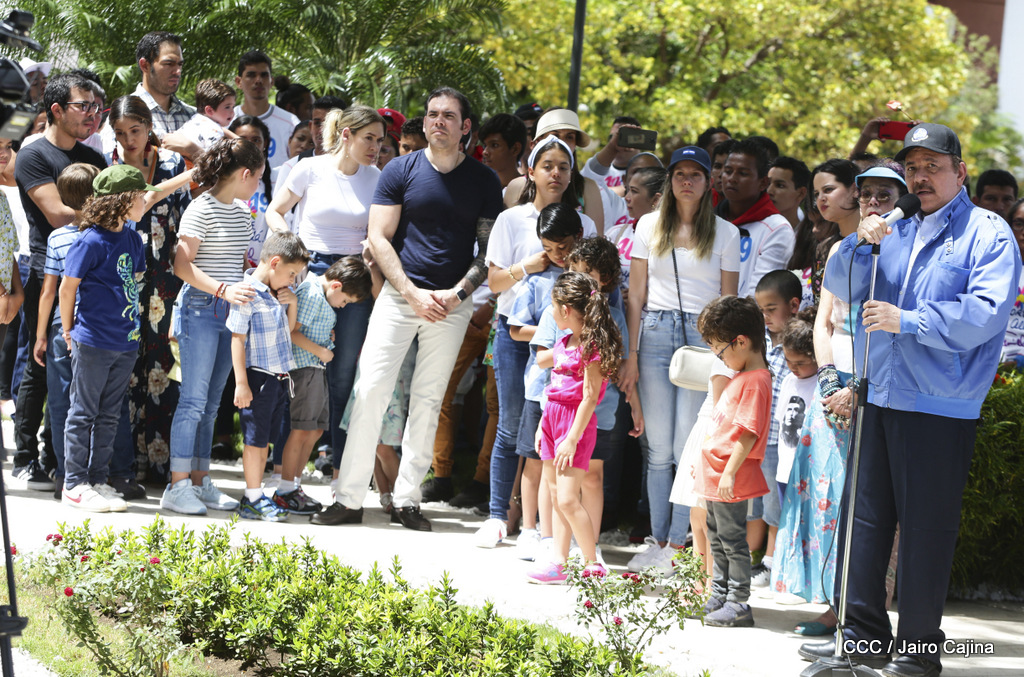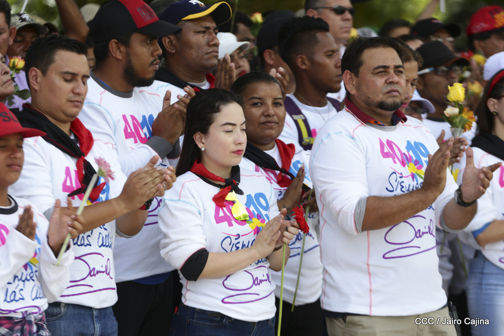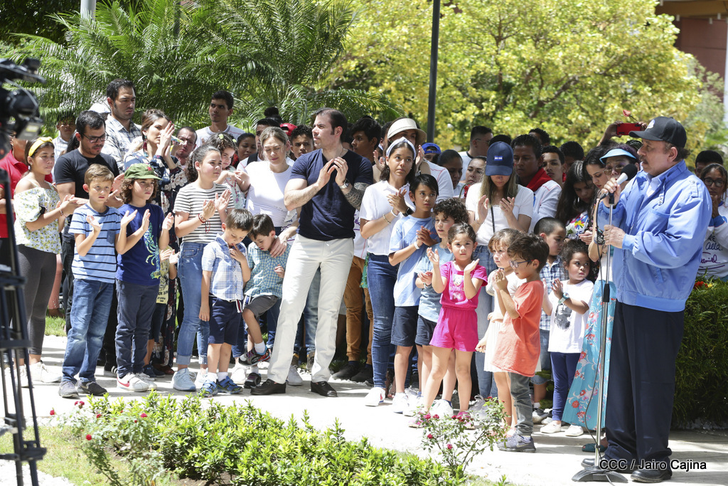 "Hoy en el aniversario de su nacimiento le decimos a Carlos que aquí estamos siempre luchando por la paz, porque queremos la paz, no queremos confrontación no queremos guerra, la paz que tantos nos ha costado conquistar, que tanto nos ha costado alcanzar, cuantos héroes, cuantos mártires a lo largo de nuestra historia para alcanzar la paz, para conquistar la paz”, reiteró el Comandante Daniel Ortega, Presidente de la República, en el homenaje al Comandante Carlos Fonseca Amador, en celebración del 83 aniversario del natalicio del Padre de la Revolución Popular Sandinista.