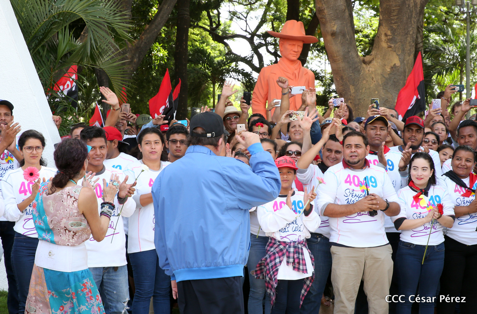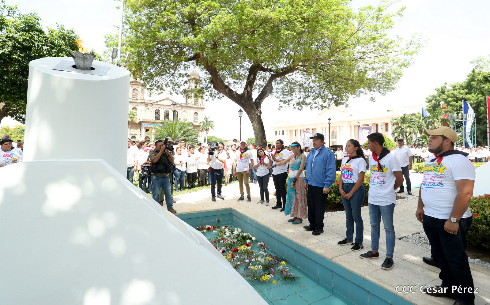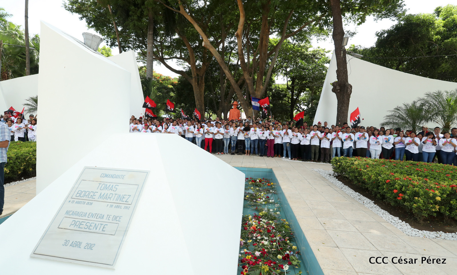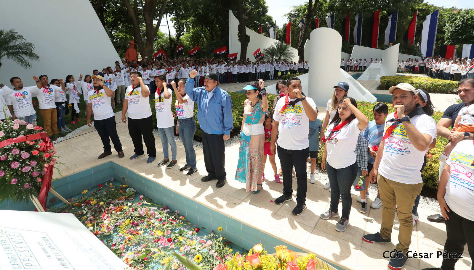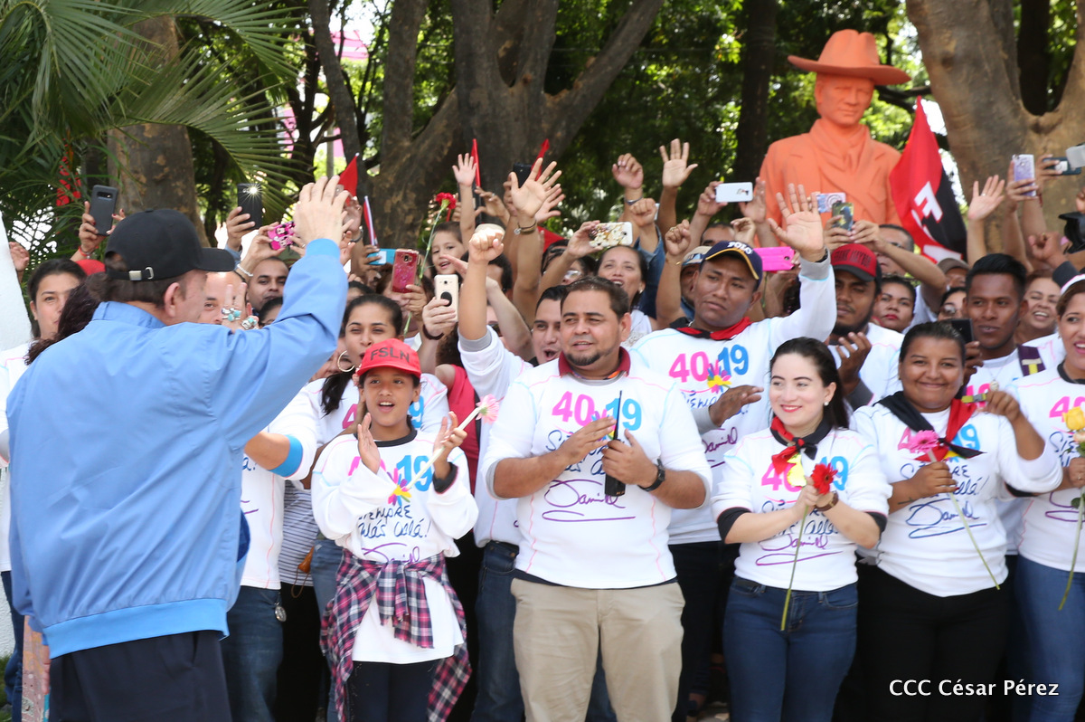 "Hoy en el aniversario de su nacimiento le decimos a Carlos que aquí estamos siempre luchando por la paz, porque queremos la paz, no queremos confrontación no queremos guerra, la paz que tantos nos ha costado conquistar, que tanto nos ha costado alcanzar, cuantos héroes, cuantos mártires a lo largo de nuestra historia para alcanzar la paz, para conquistar la paz”, reiteró el Comandante Daniel Ortega, Presidente de la República, en el homenaje al Comandante Carlos Fonseca Amador, en celebración del 83 aniversario del natalicio del Padre de la Revolución Popular Sandinista.