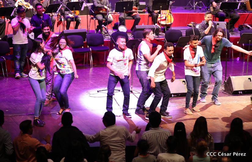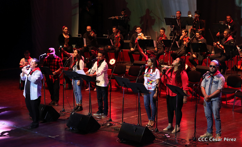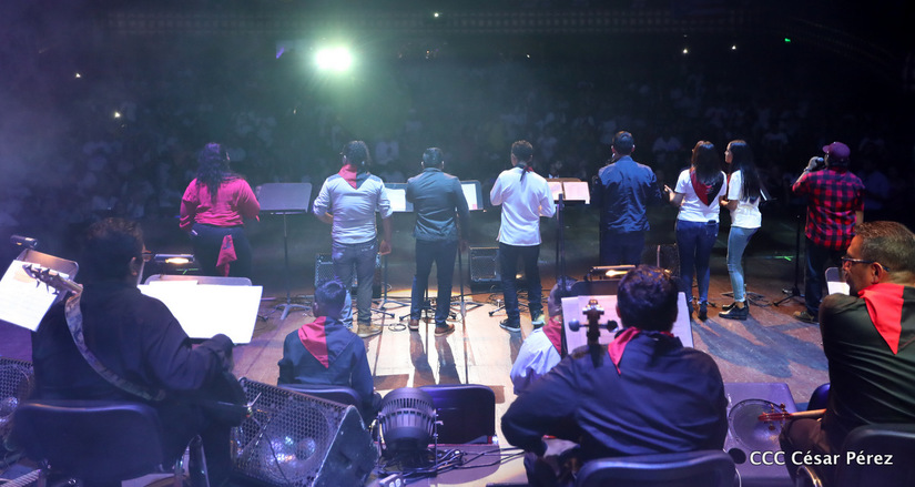 El Teatro Nacional Rubén Darío fue escenario de una constelación de jóvenes artistas que cantaron a la revolución para un pueblo capitalino que se mantuvo en vigilia previo a la celebración de 40 años del triunfo.