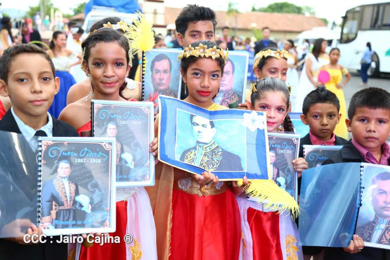 Las familias de León se volcaron al Cuarto Festival Azul Darío, en saludo al 131 aniversario de la publicación de la obra del gran panida, que la población protagonizó con desfile de carrozas, musas, comparsas y la representación de mitos y leyendas.