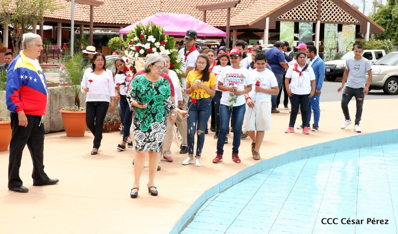 La juventud nicaragüense celebró junto a la representación diplomática venezolana en Nicaragua, el 65 aniversario natal del comandante Hugo Chávez Frías.