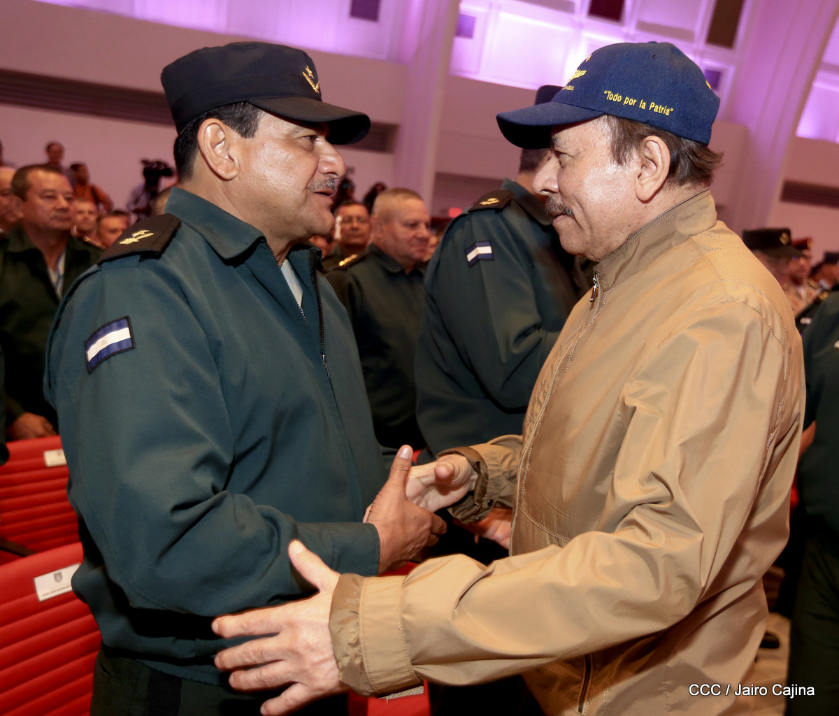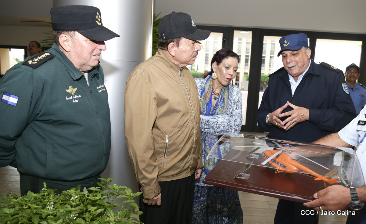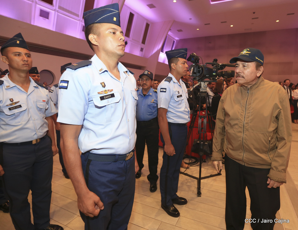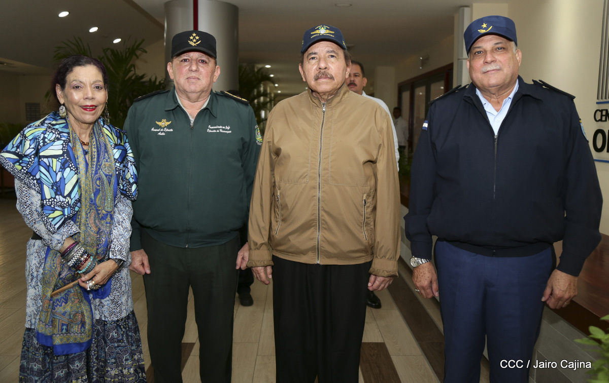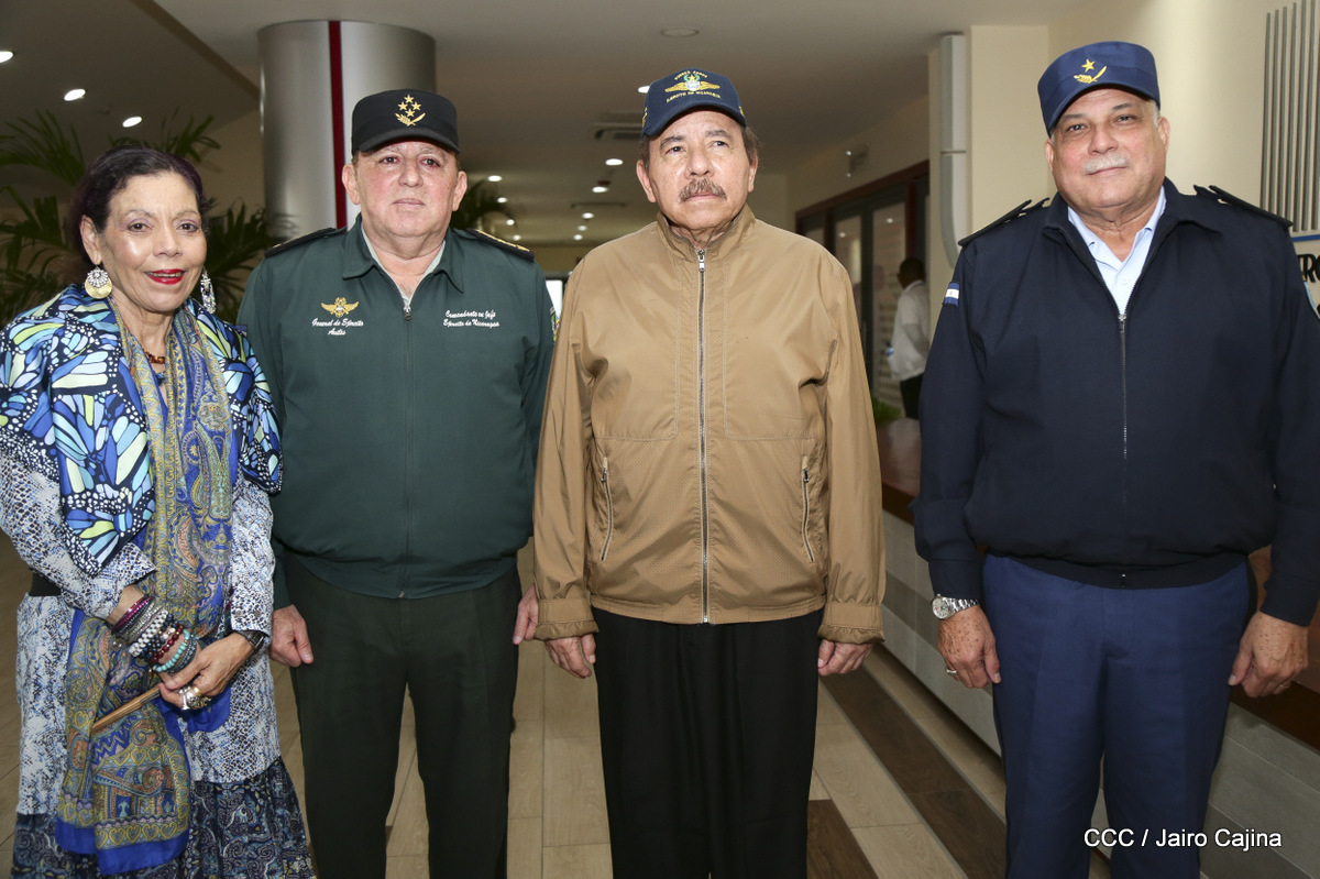 El presidente Daniel Ortega y la vicepresidenta Rosario Murillo, presidieron este miércoles 31 de julio, el acto solemne de conmemoración del 40 Aniversario de constitución de la Fuerza Aérea del Ejército de Nicaragua.