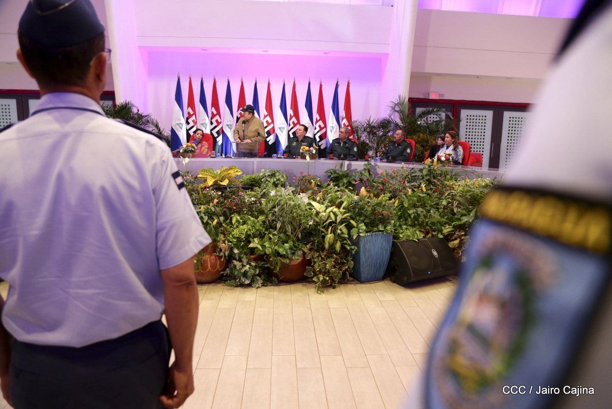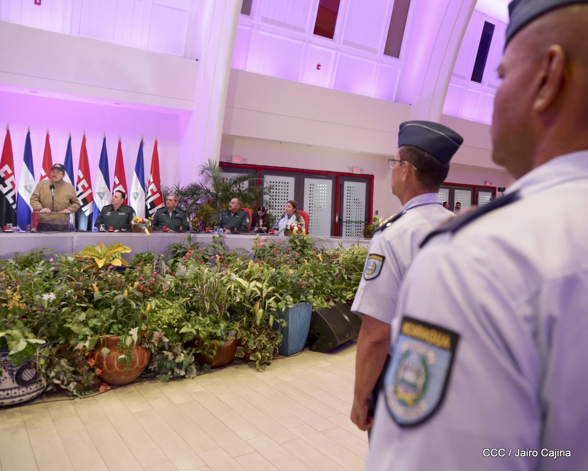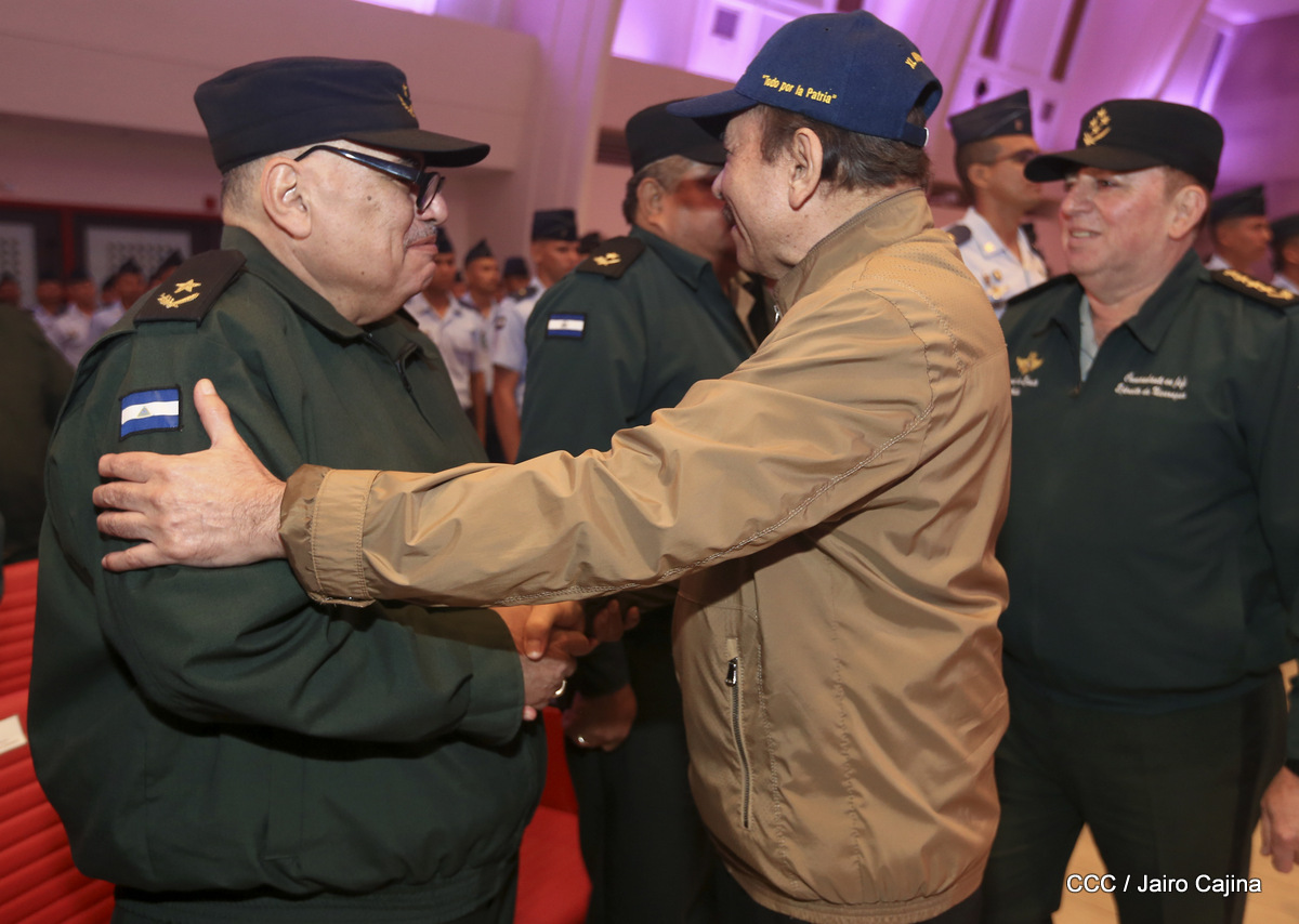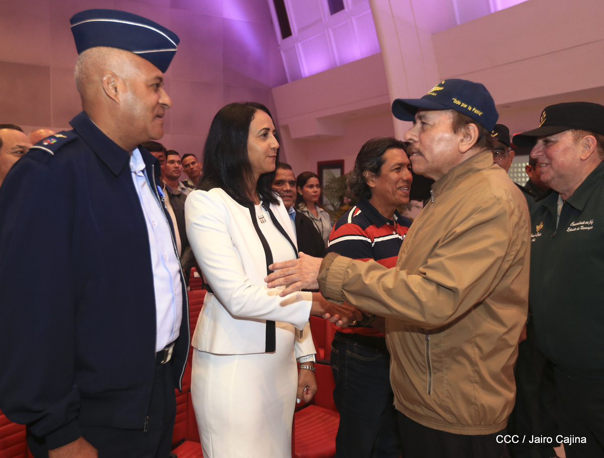 El presidente Daniel Ortega y la vicepresidenta Rosario Murillo, presidieron este miércoles 31 de julio, el acto solemne de conmemoración del 40 Aniversario de constitución de la Fuerza Aérea del Ejército de Nicaragua.