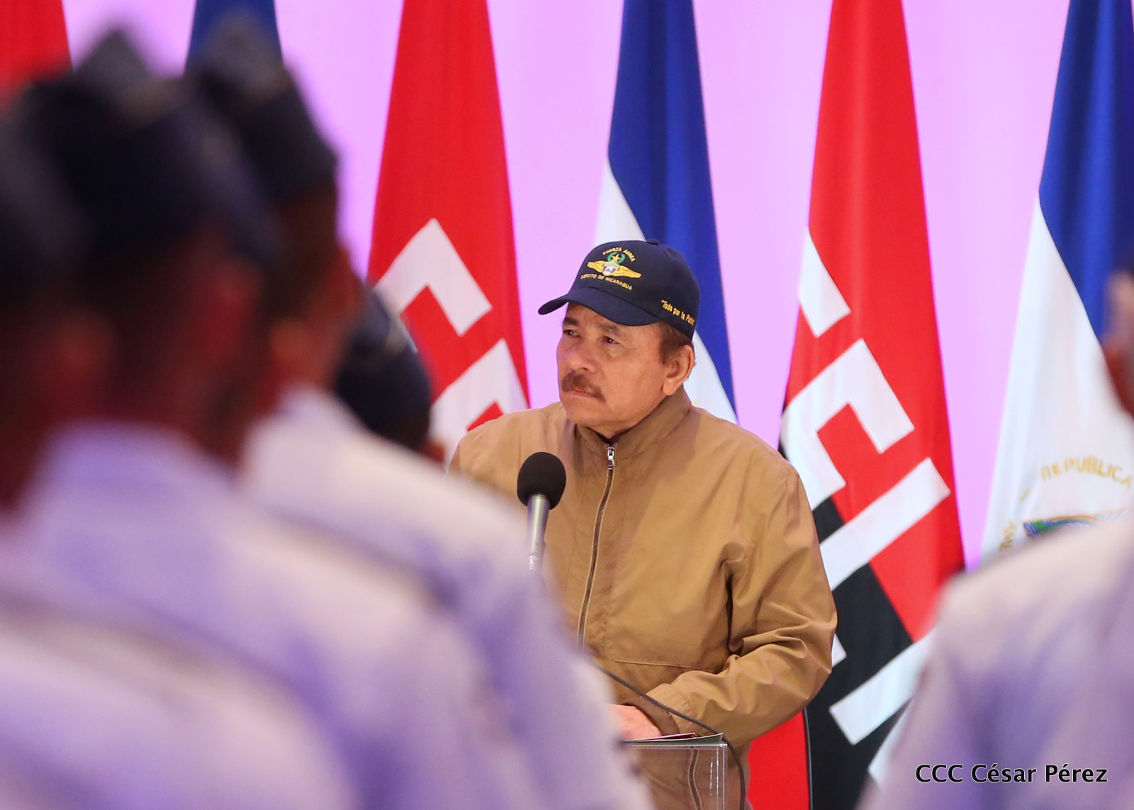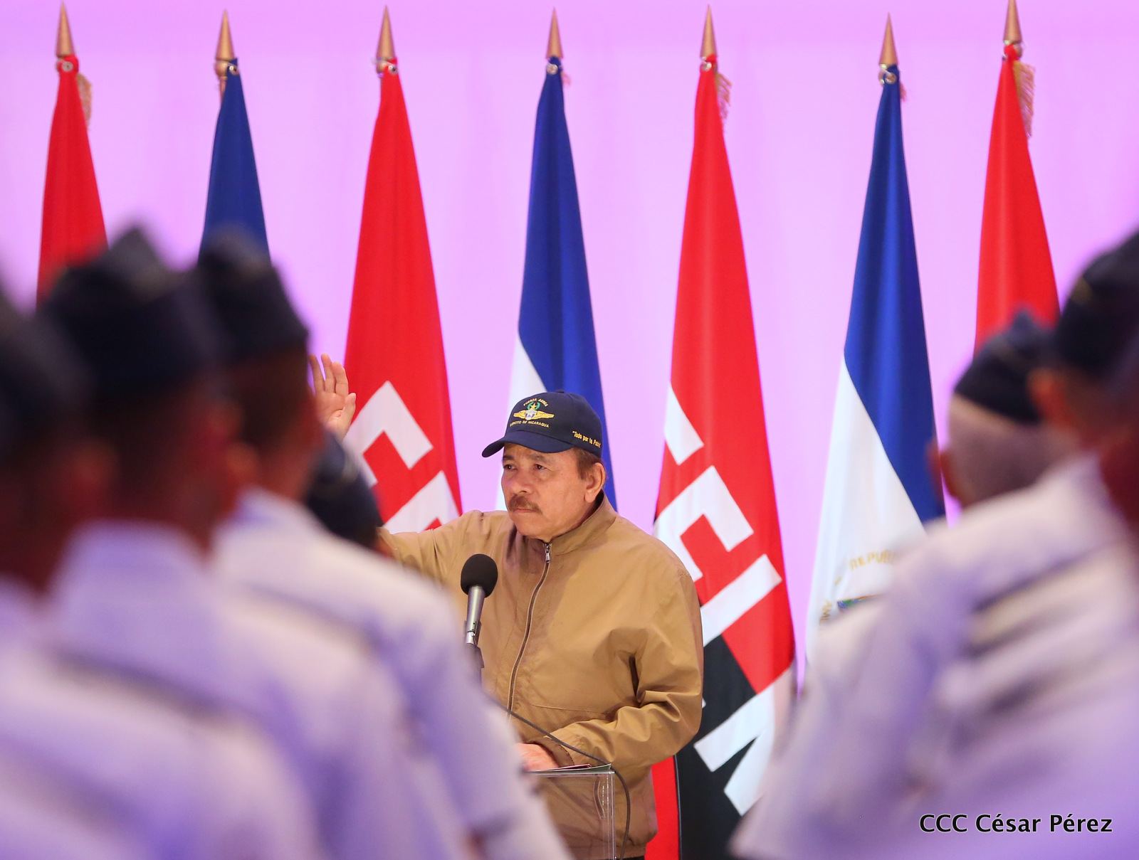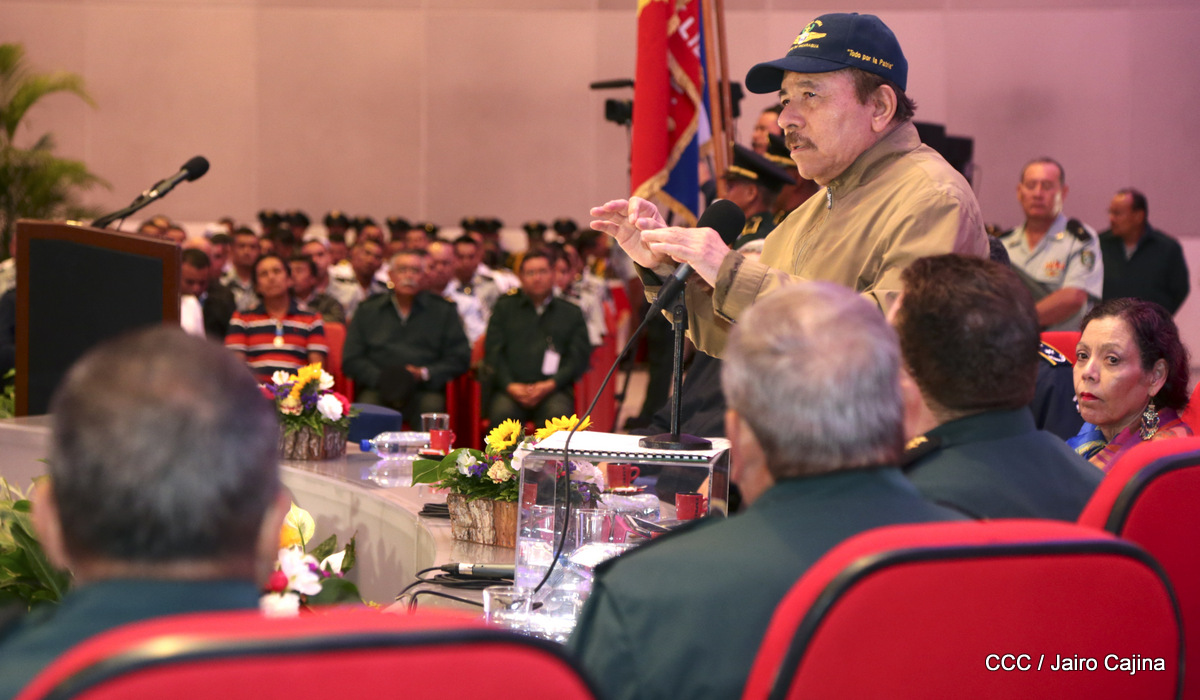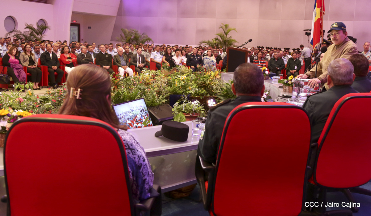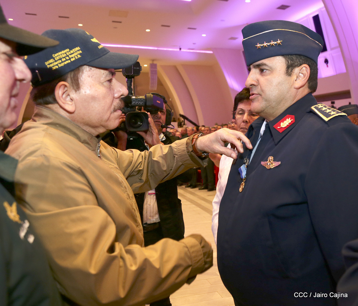 El presidente Daniel Ortega y la vicepresidenta Rosario Murillo, presidieron este miércoles 31 de julio, el acto solemne de conmemoración del 40 Aniversario de constitución de la Fuerza Aérea del Ejército de Nicaragua.