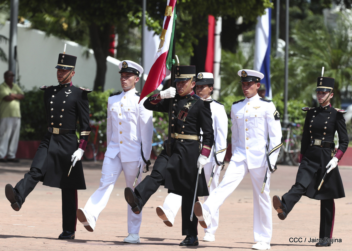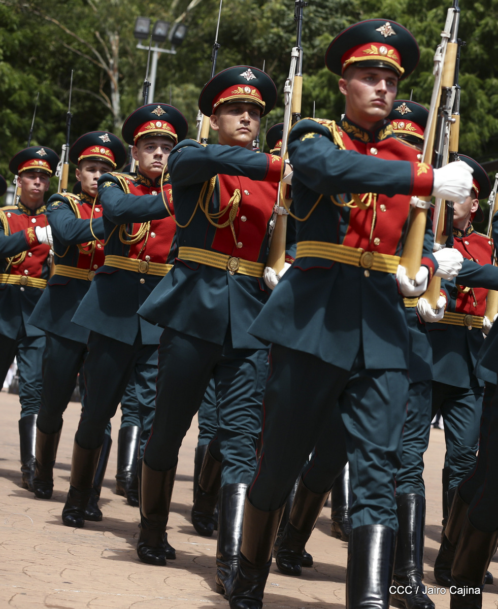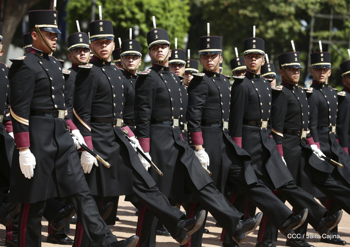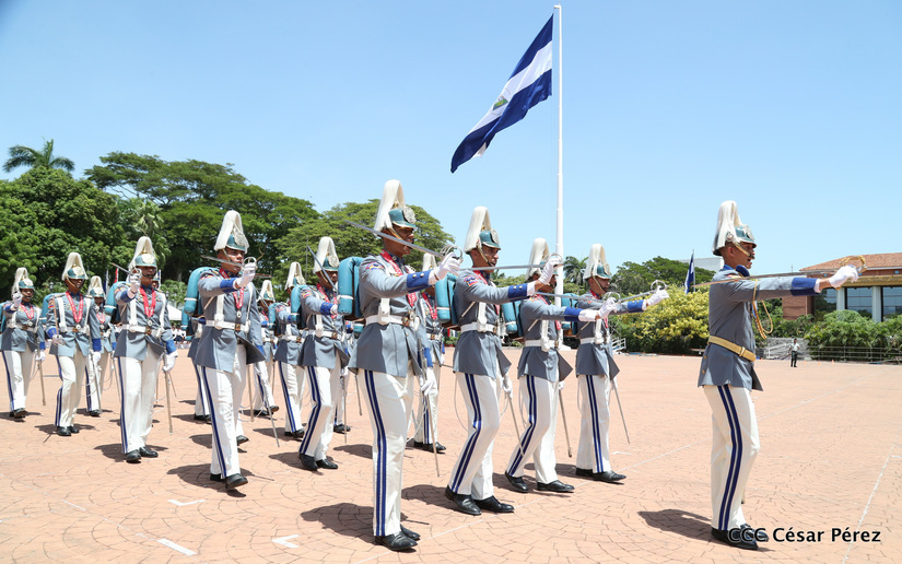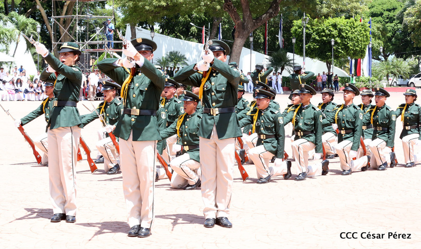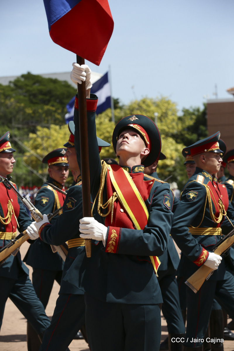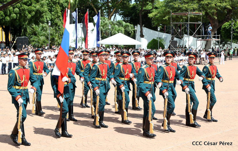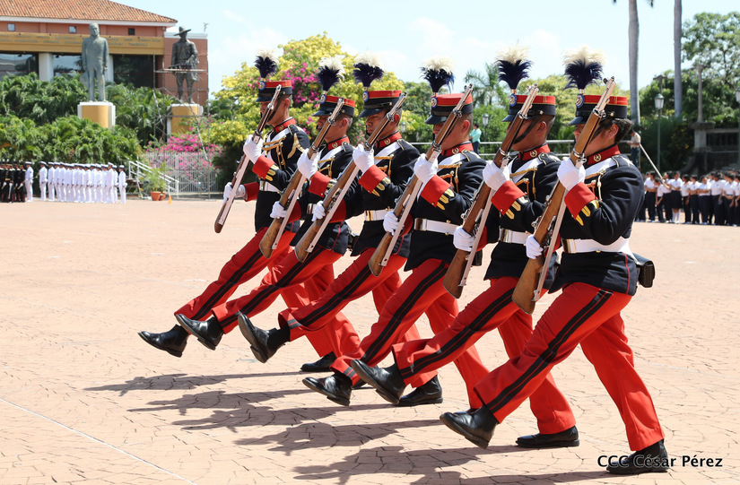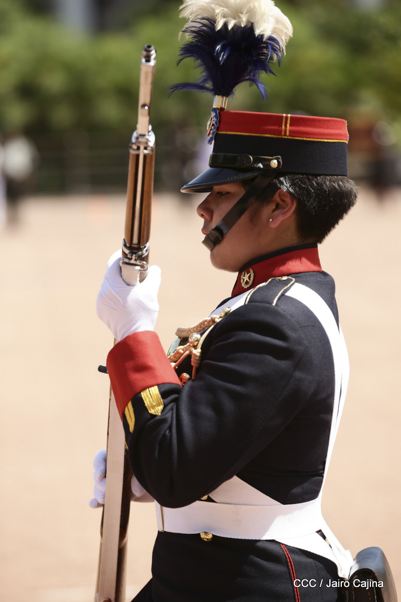 Representantes de academias y fuerzas armadas de países como Taiwán, México, Rusia, Guatemala, Honduras y Venezuela, realizaron una exhibición de movimientos de fantasía en la Plaza de la Revolución, como parte de las celebraciones del 40 aniversario de constitución del Ejército de Nicaragua.