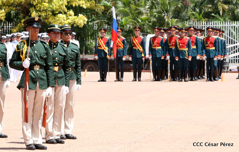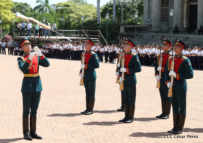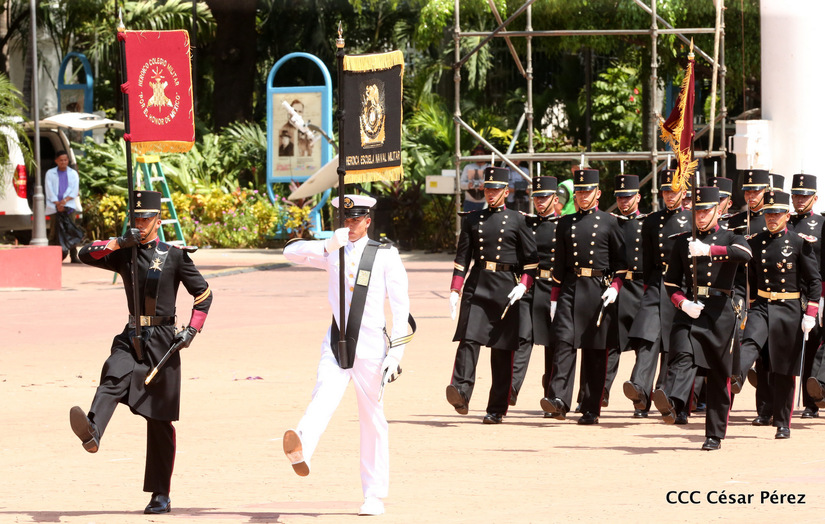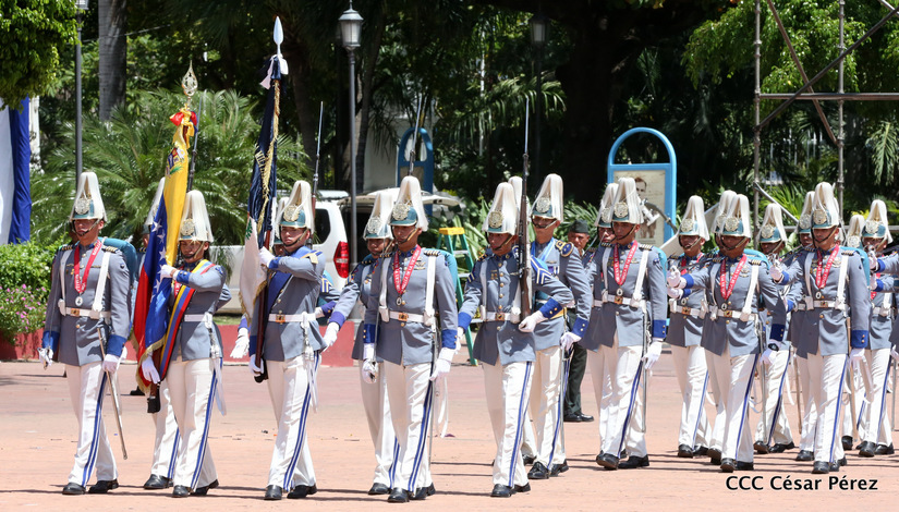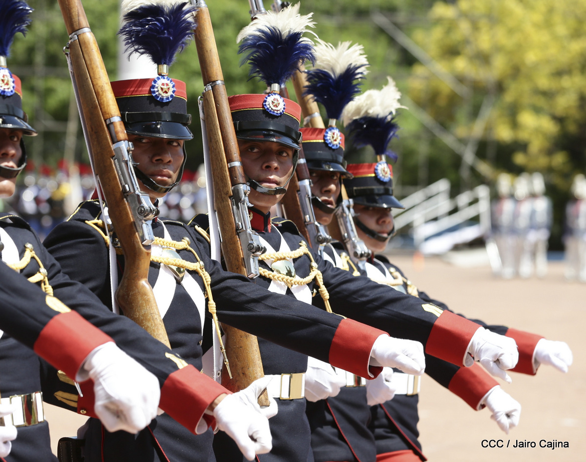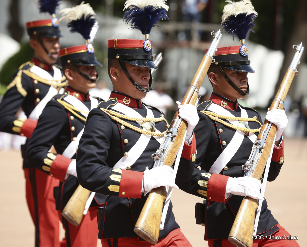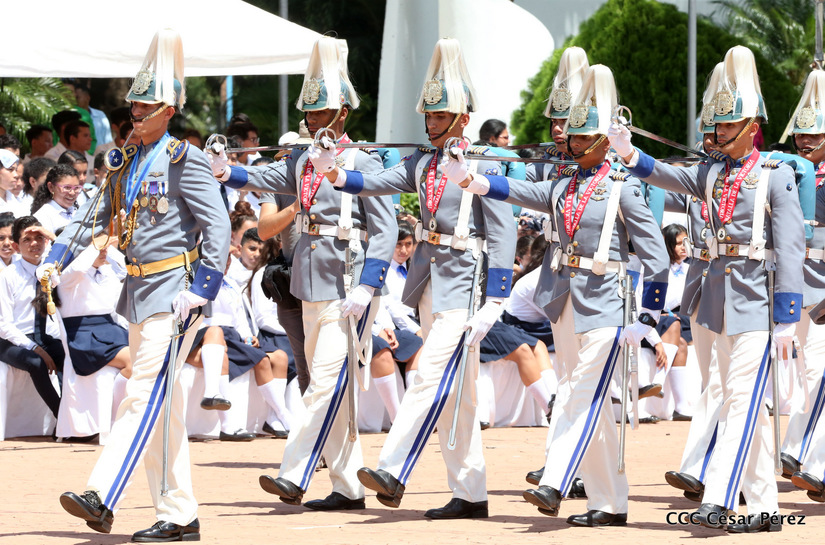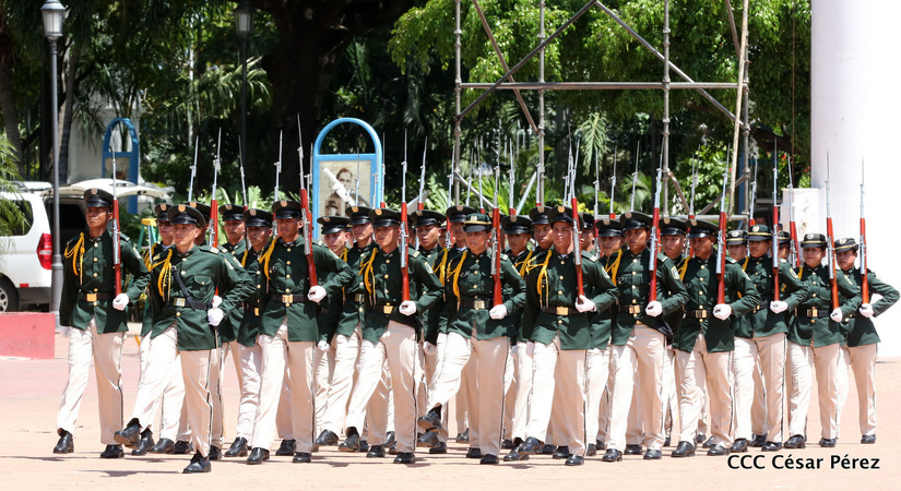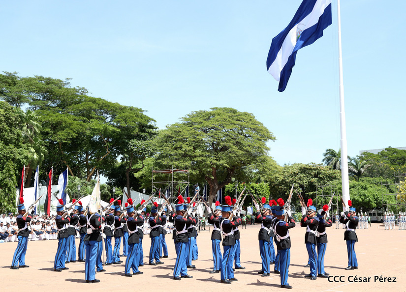 Representantes de academias y fuerzas armadas de países como Taiwán, México, Rusia, Guatemala, Honduras y Venezuela, realizaron una exhibición de movimientos de fantasía en la Plaza de la Revolución, como parte de las celebraciones del 40 aniversario de constitución del Ejército de Nicaragua.