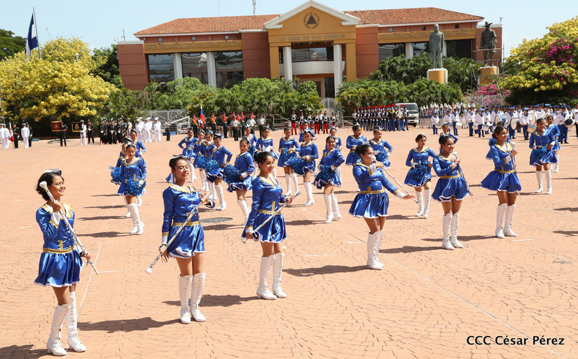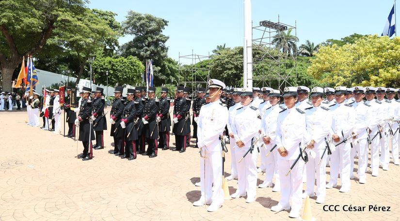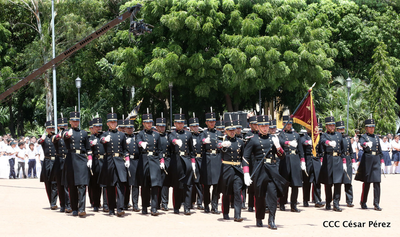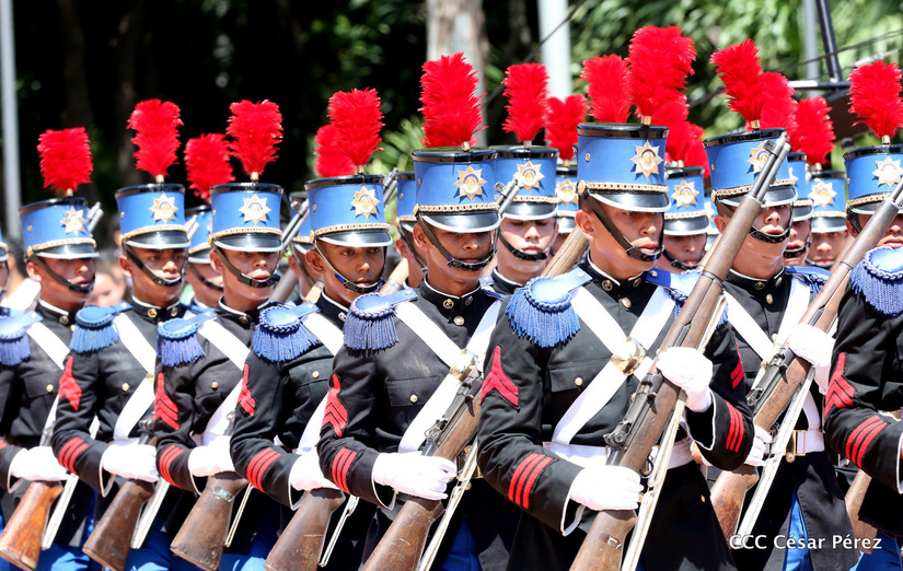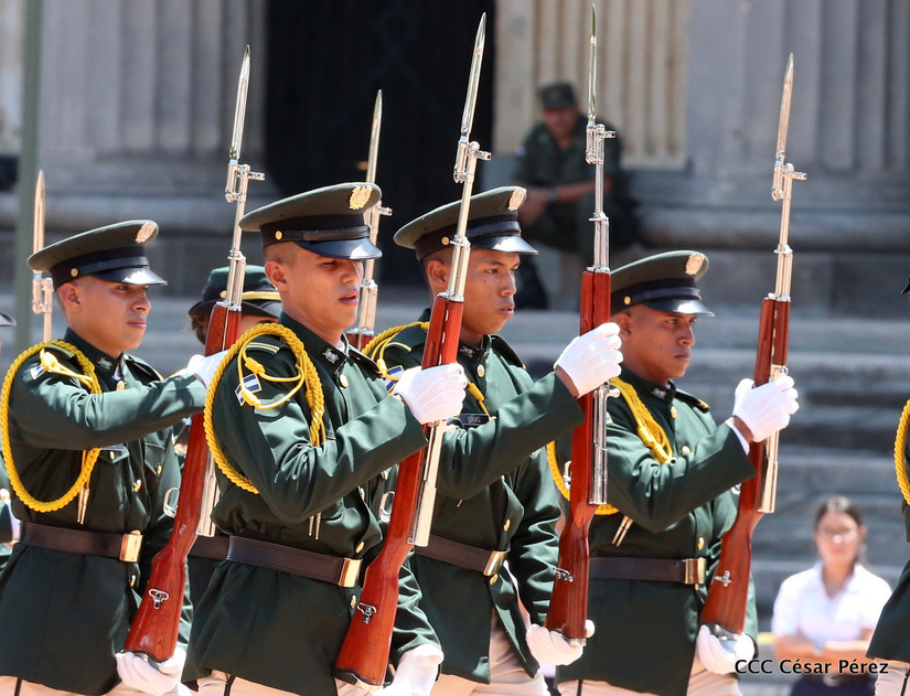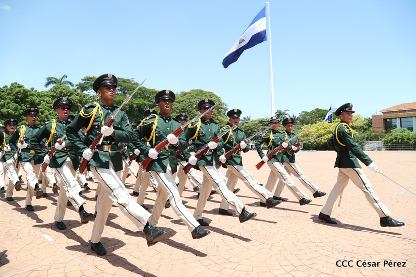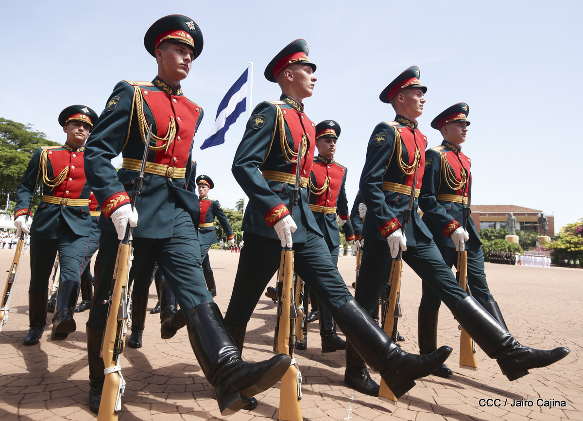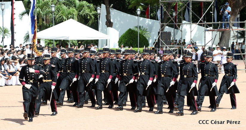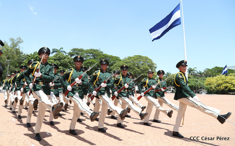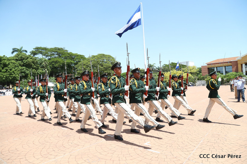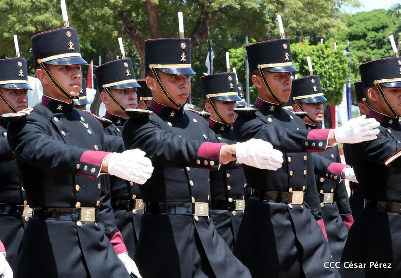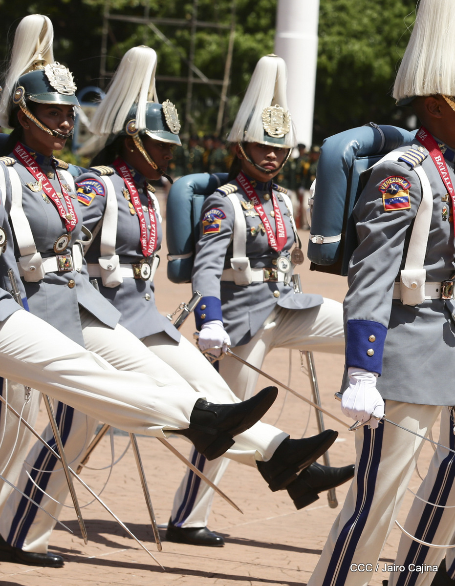 Representantes de academias y fuerzas armadas de países como Taiwán, México, Rusia, Guatemala, Honduras y Venezuela, realizaron una exhibición de movimientos de fantasía en la Plaza de la Revolución, como parte de las celebraciones del 40 aniversario de constitución del Ejército de Nicaragua.