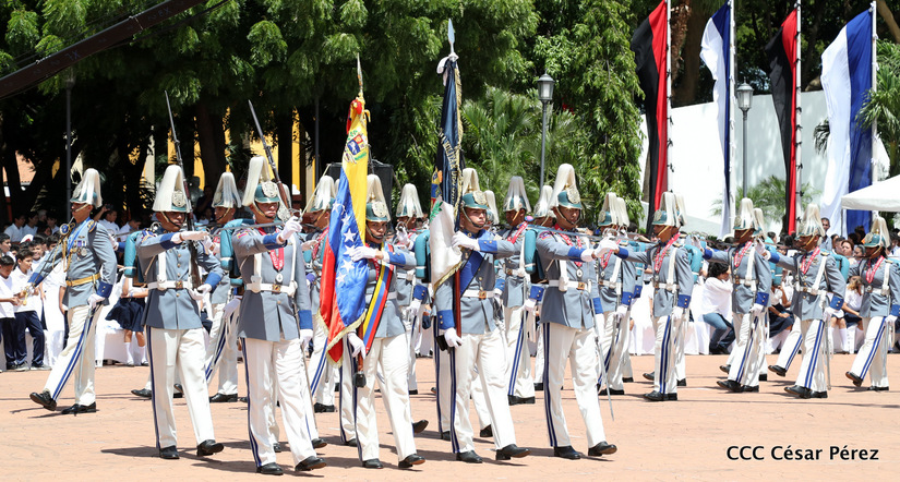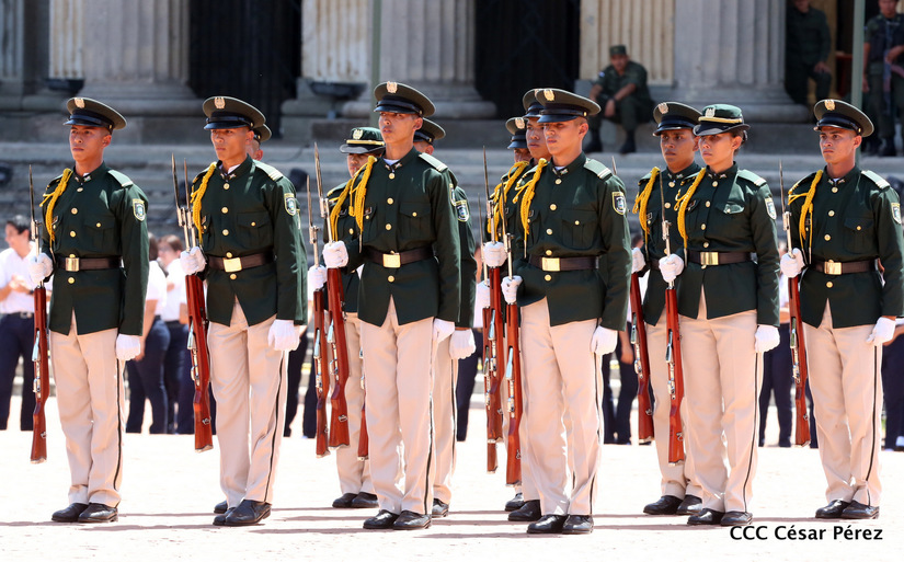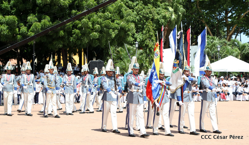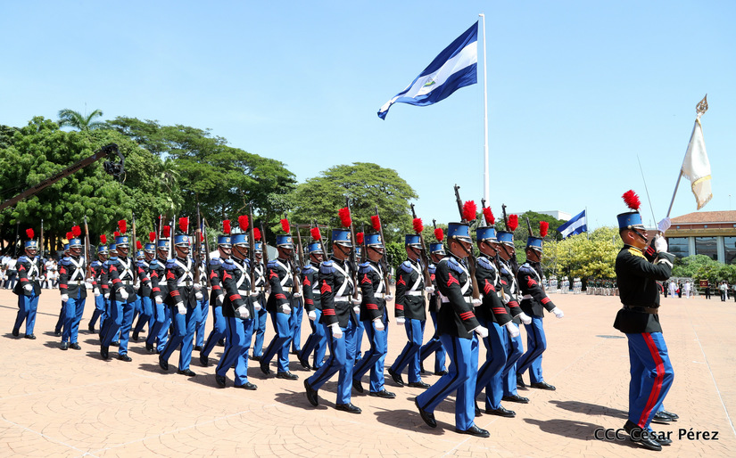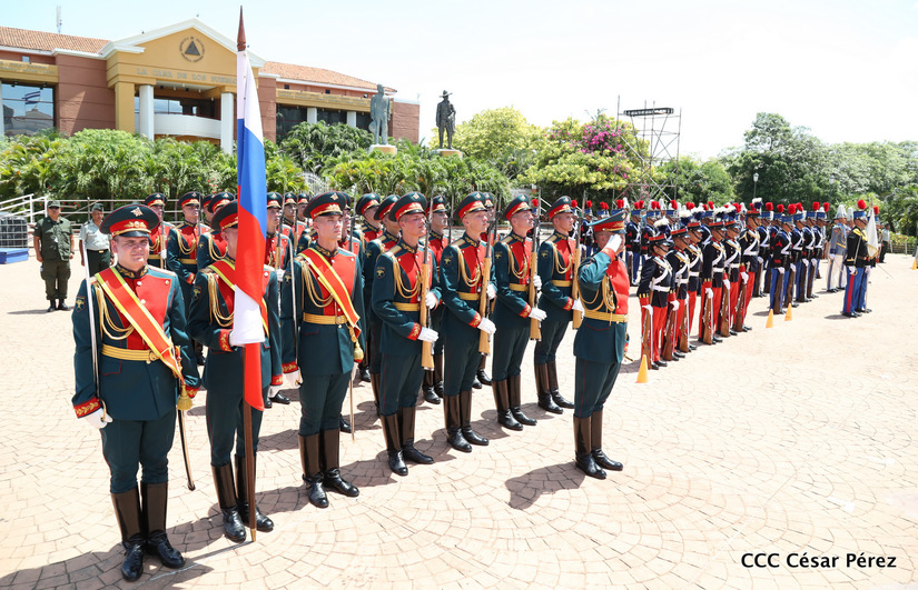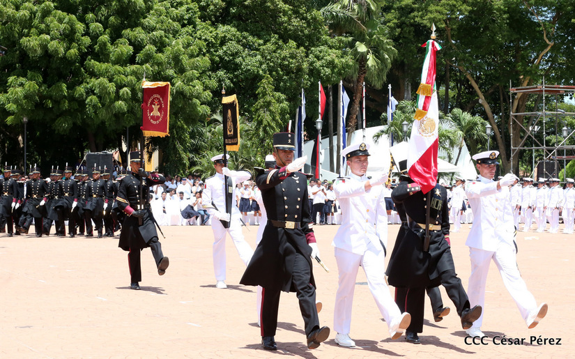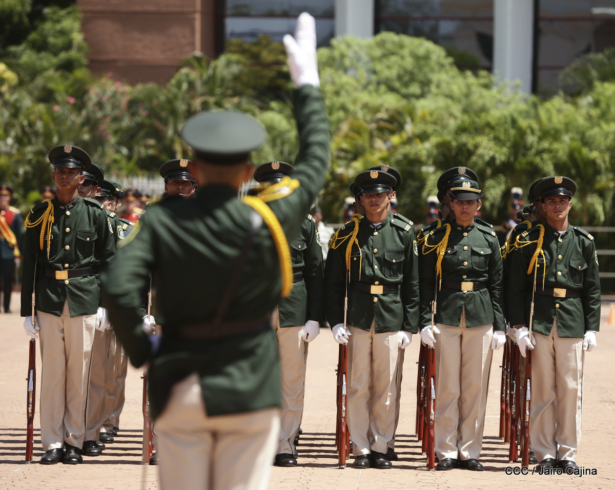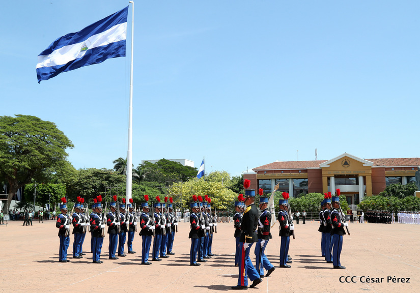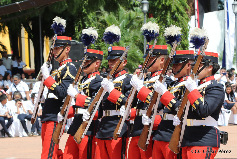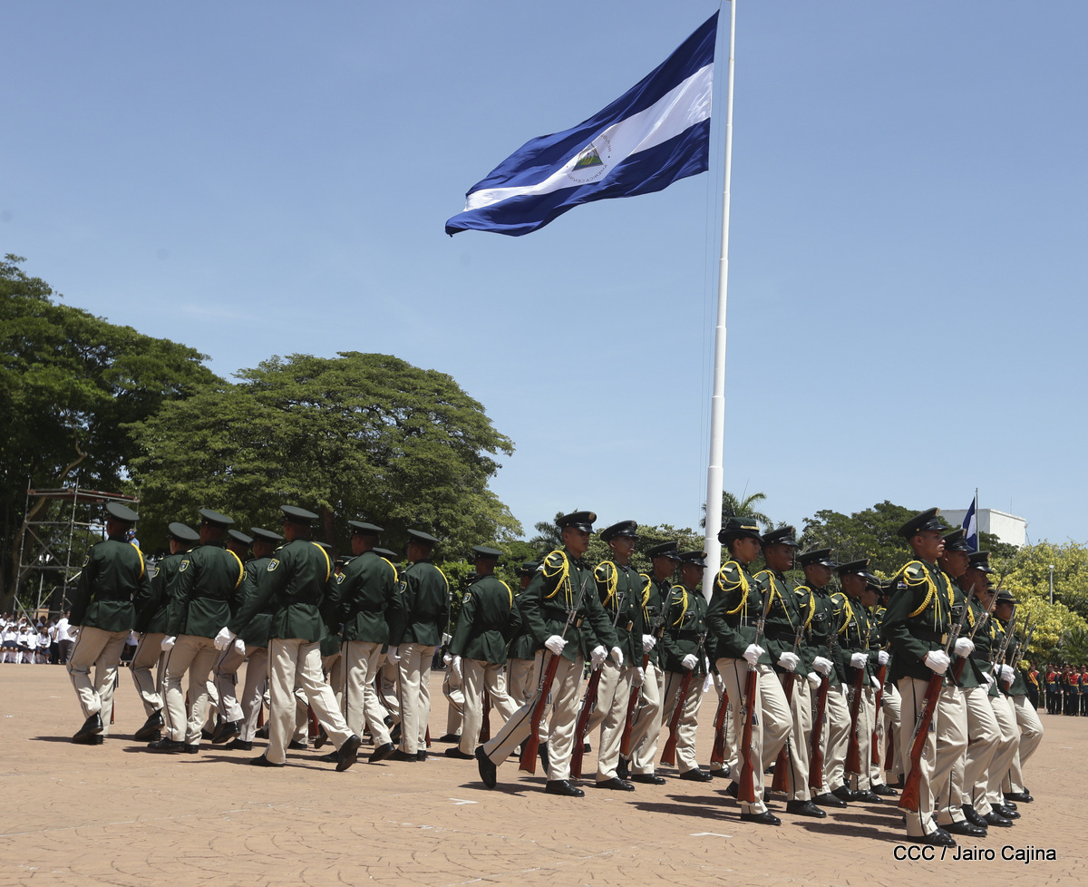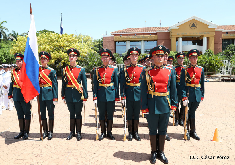 Representantes de academias y fuerzas armadas de países como Taiwán, México, Rusia, Guatemala, Honduras y Venezuela, realizaron una exhibición de movimientos de fantasía en la Plaza de la Revolución, como parte de las celebraciones del 40 aniversario de constitución del Ejército de Nicaragua.