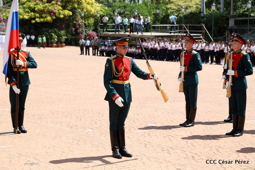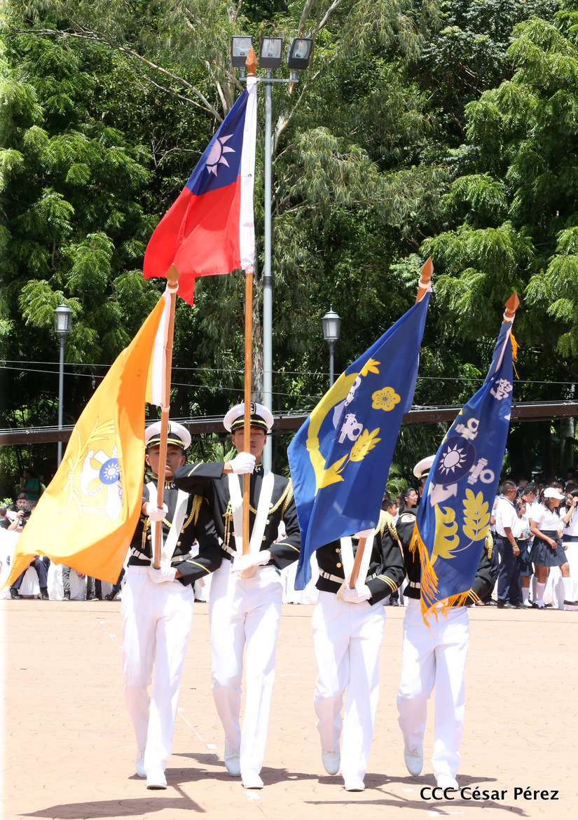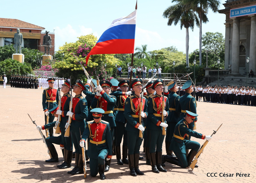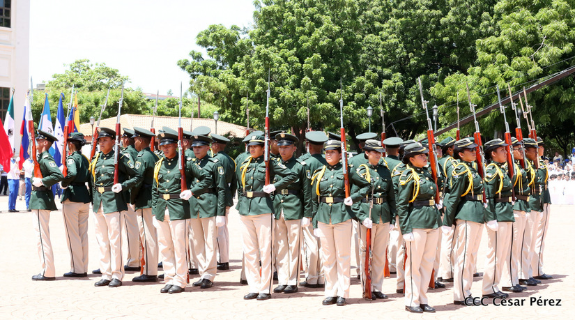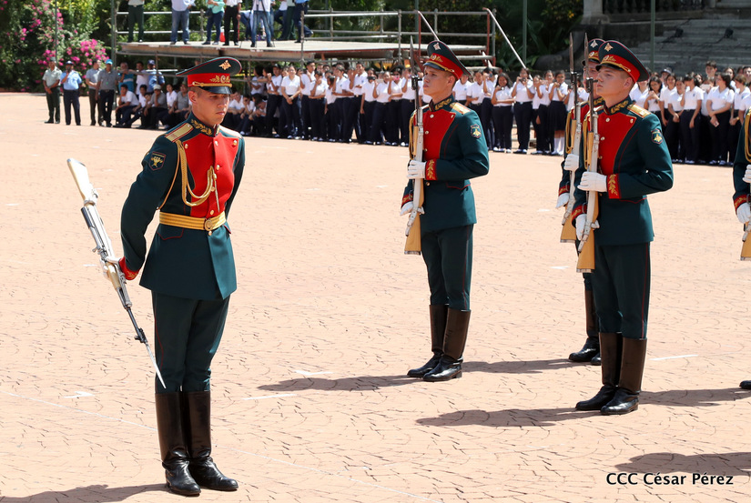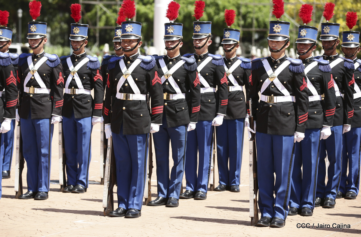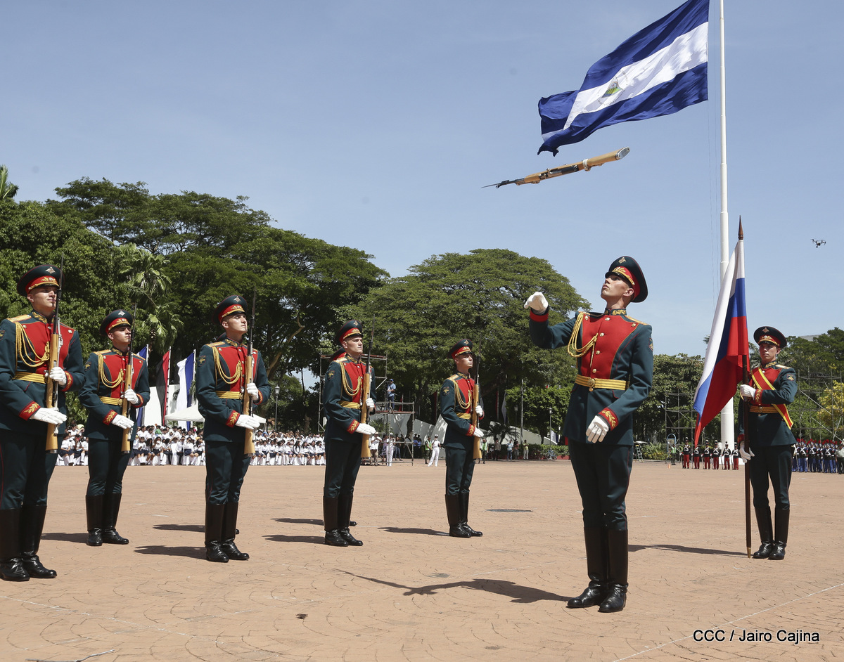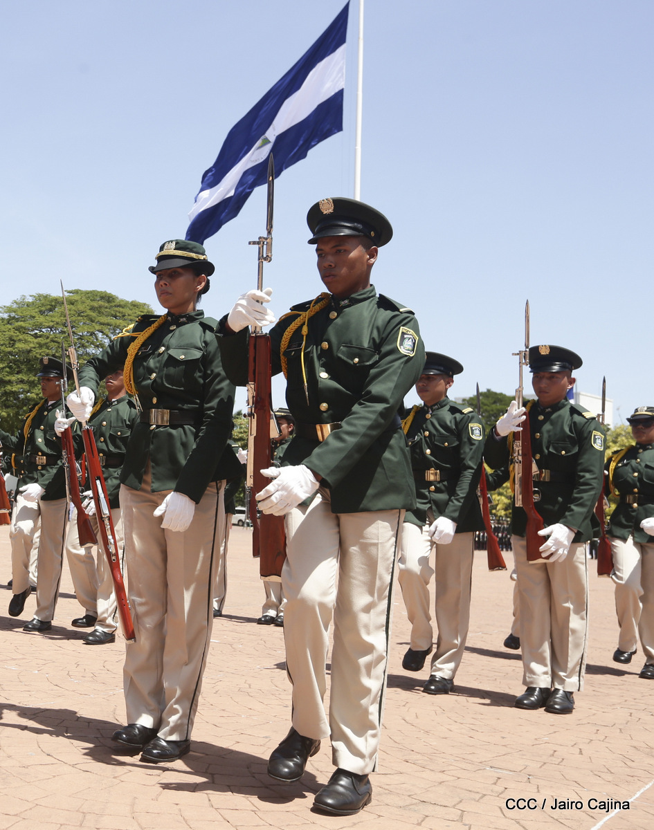 Representantes de academias y fuerzas armadas de países como Taiwán, México, Rusia, Guatemala, Honduras y Venezuela, realizaron una exhibición de movimientos de fantasía en la Plaza de la Revolución, como parte de las celebraciones del 40 aniversario de constitución del Ejército de Nicaragua.