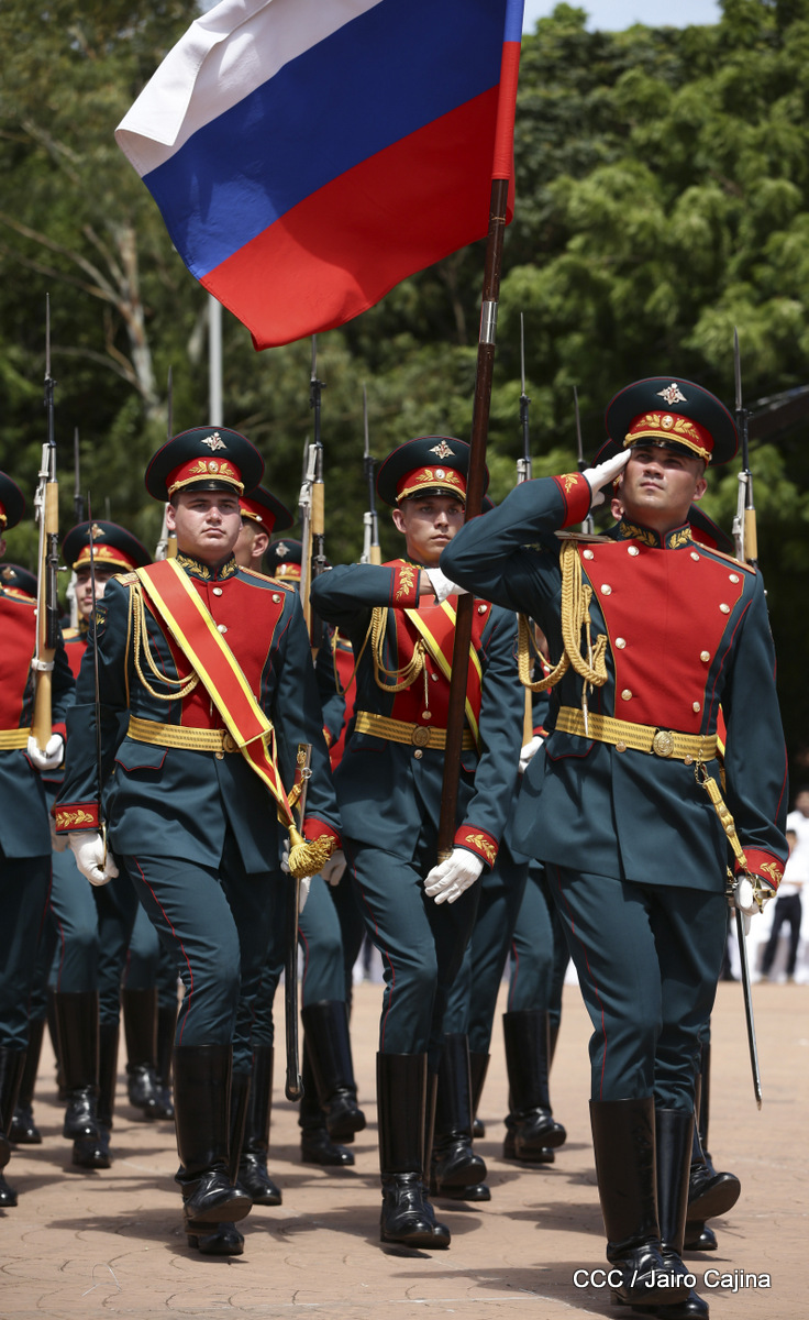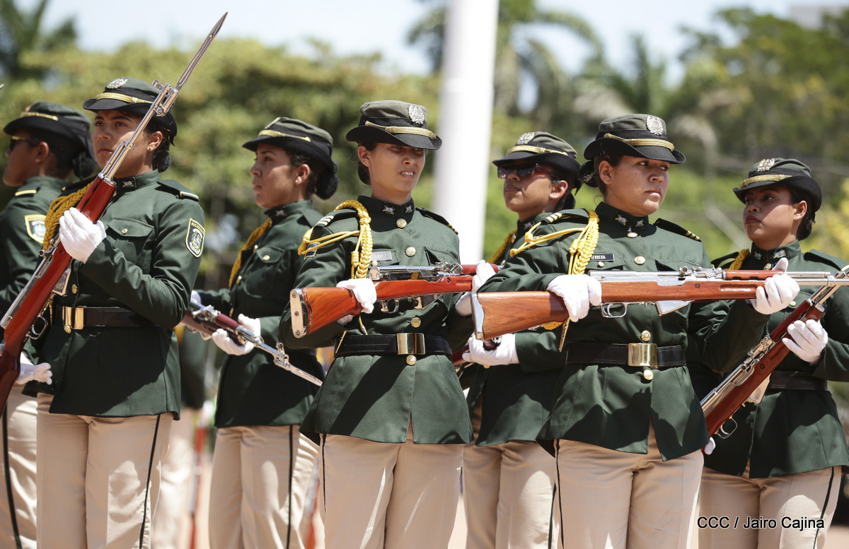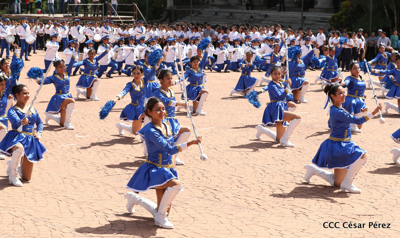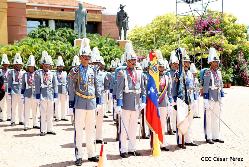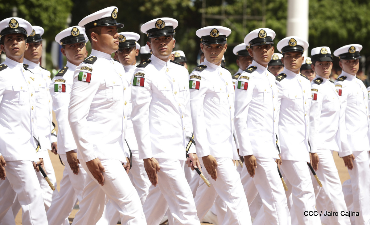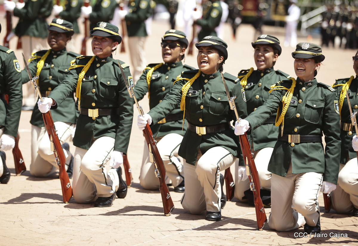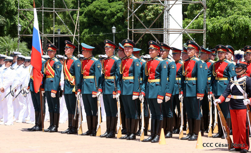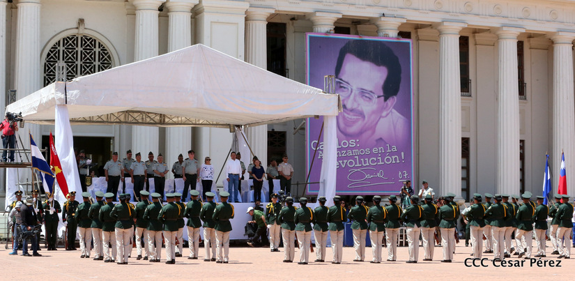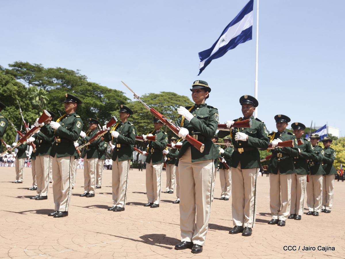 Representantes de academias y fuerzas armadas de países como Taiwán, México, Rusia, Guatemala, Honduras y Venezuela, realizaron una exhibición de movimientos de fantasía en la Plaza de la Revolución, como parte de las celebraciones del 40 aniversario de constitución del Ejército de Nicaragua.