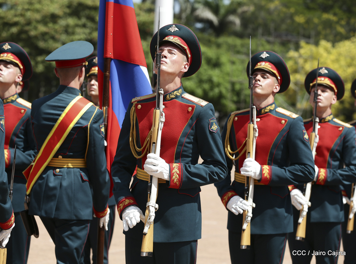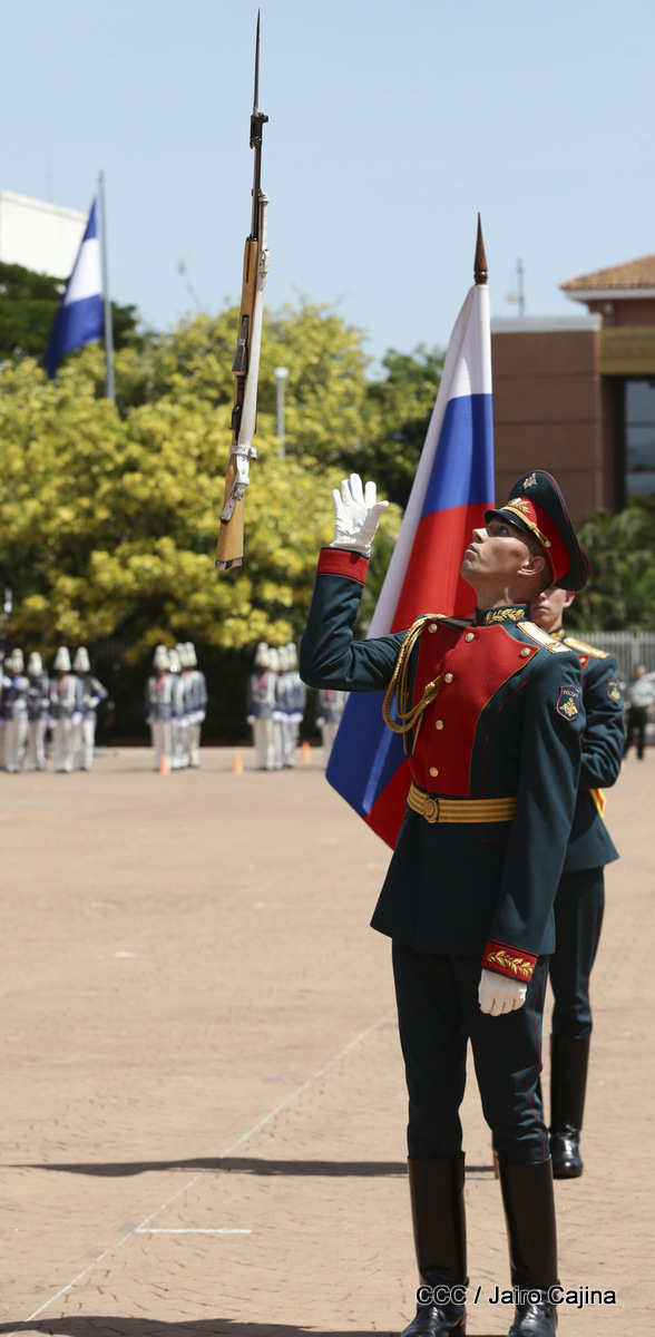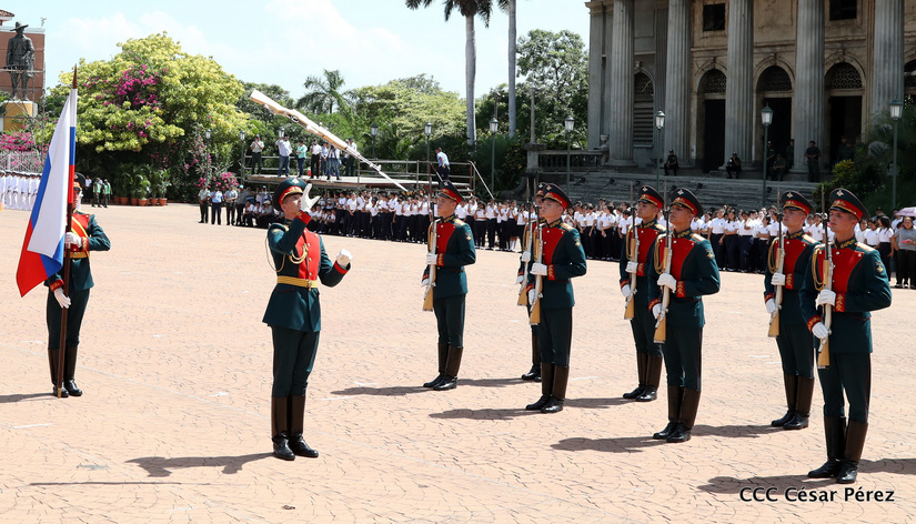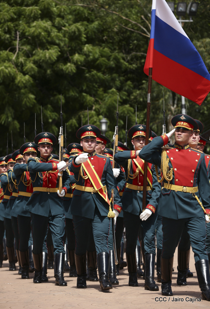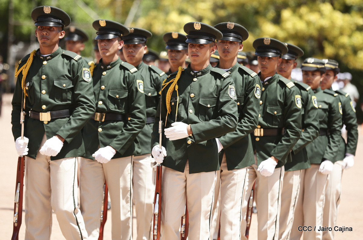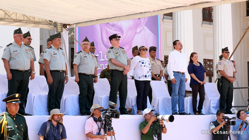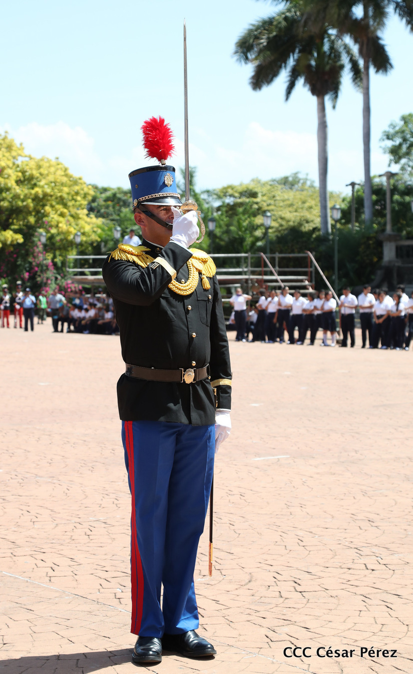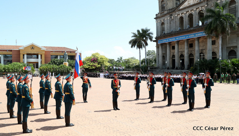 Representantes de academias y fuerzas armadas de países como Taiwán, México, Rusia, Guatemala, Honduras y Venezuela, realizaron una exhibición de movimientos de fantasía en la Plaza de la Revolución, como parte de las celebraciones del 40 aniversario de constitución del Ejército de Nicaragua.