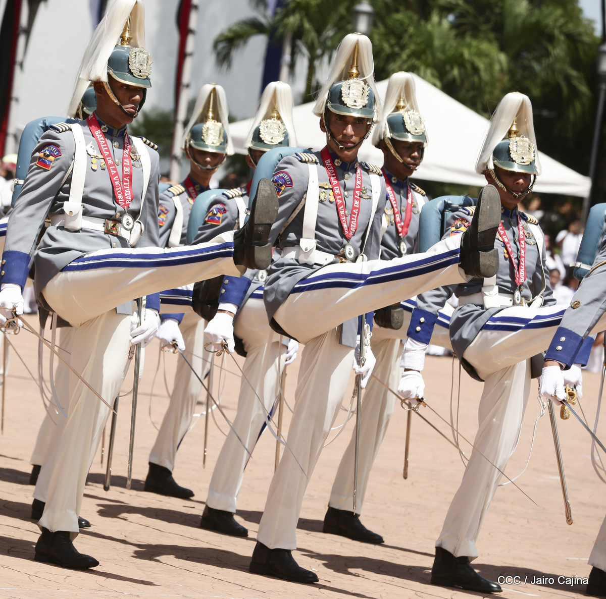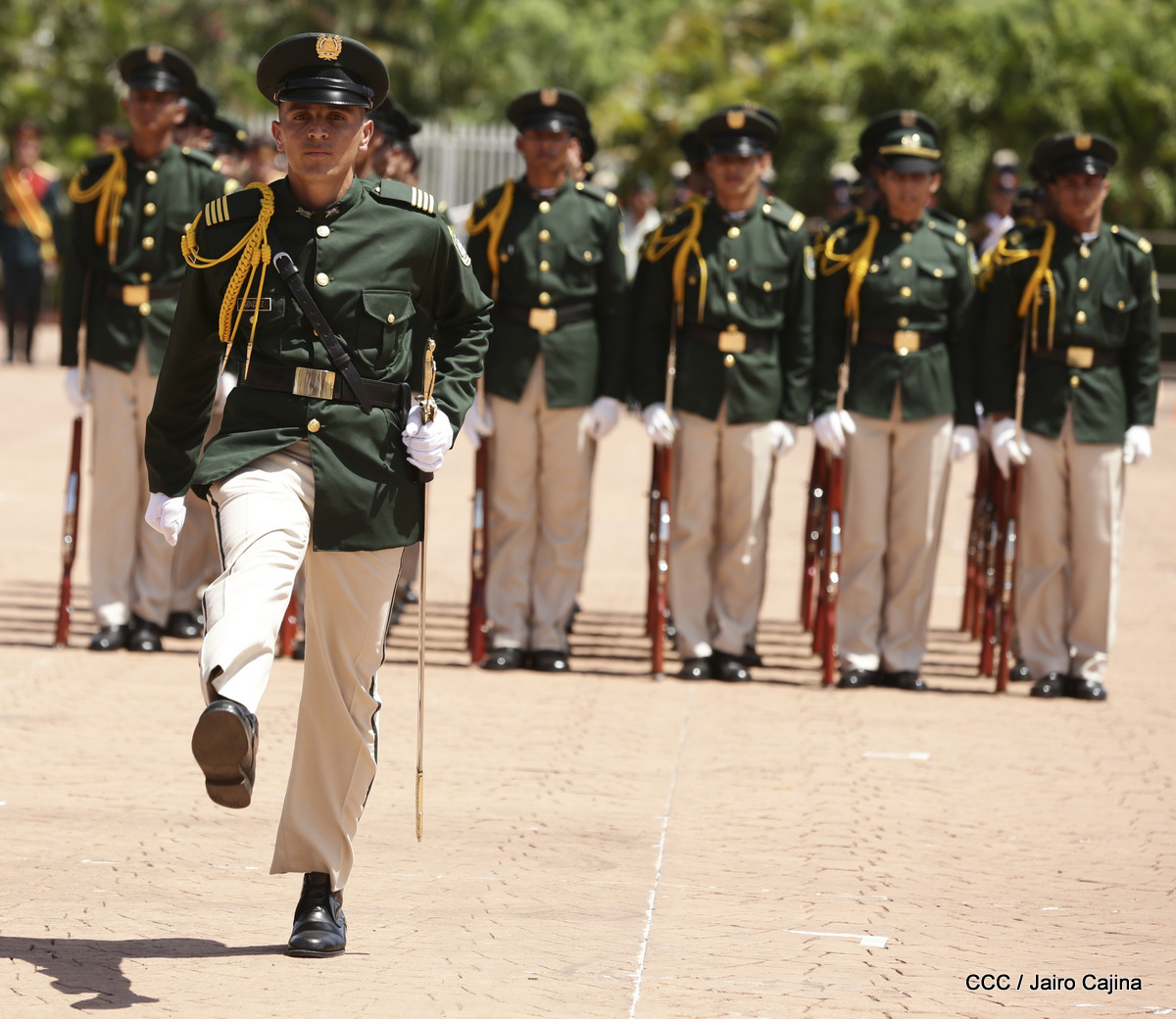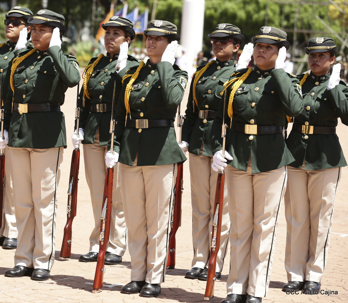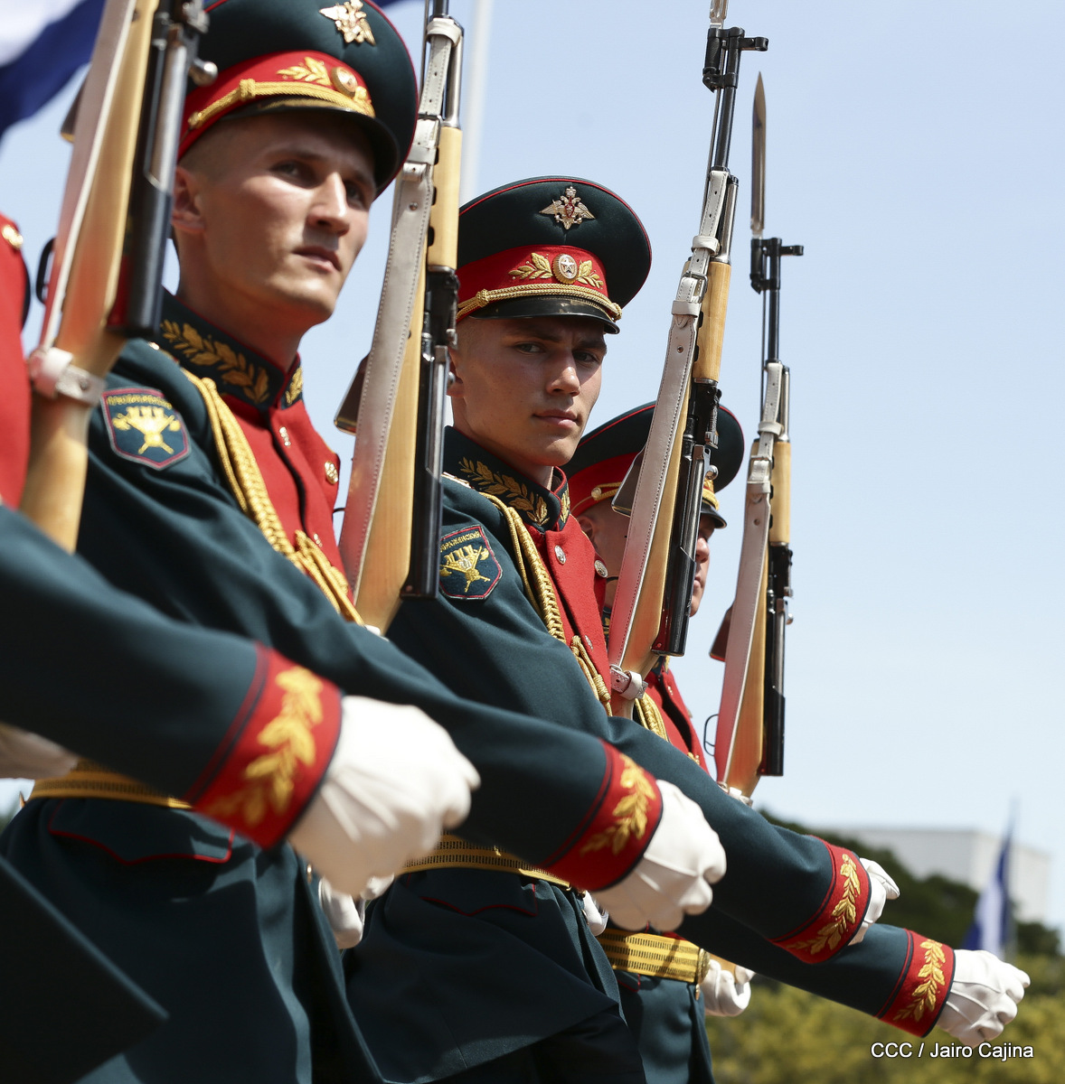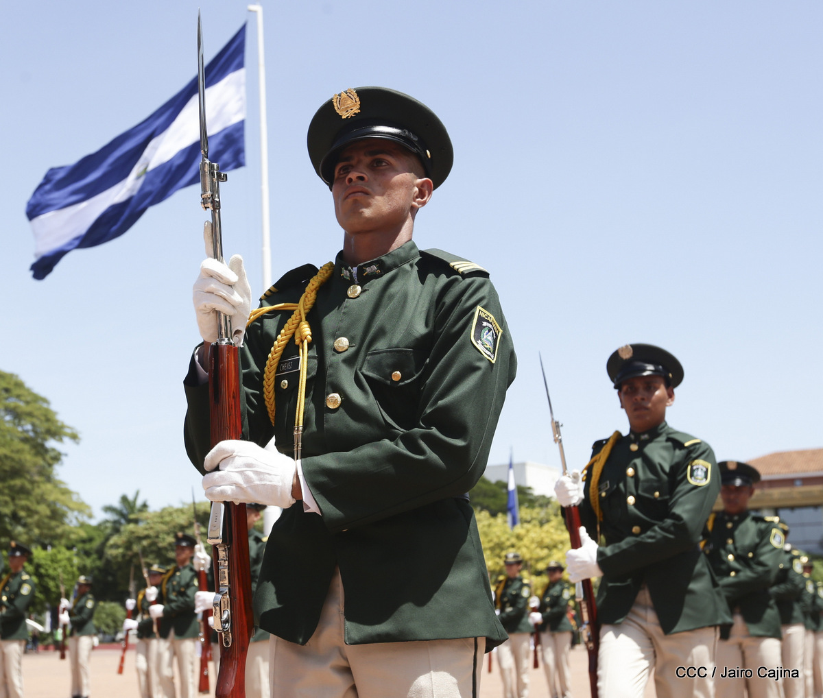Representantes de academias y fuerzas armadas de países como Taiwán, México, Rusia, Guatemala, Honduras y Venezuela, realizaron una exhibición de movimientos de fantasía en la Plaza de la Revolución, como parte de las celebraciones del 40 aniversario de constitución del Ejército de Nicaragua.