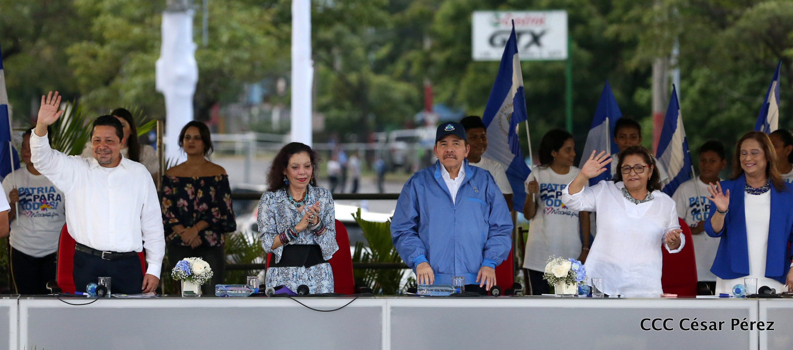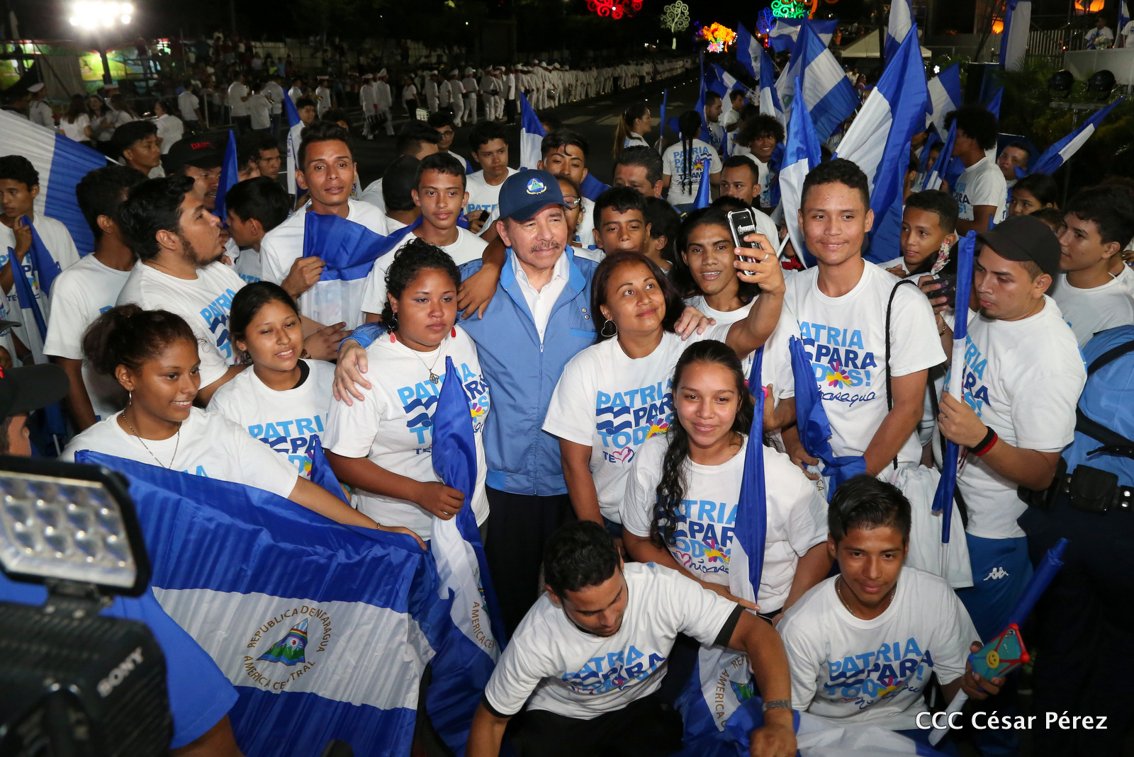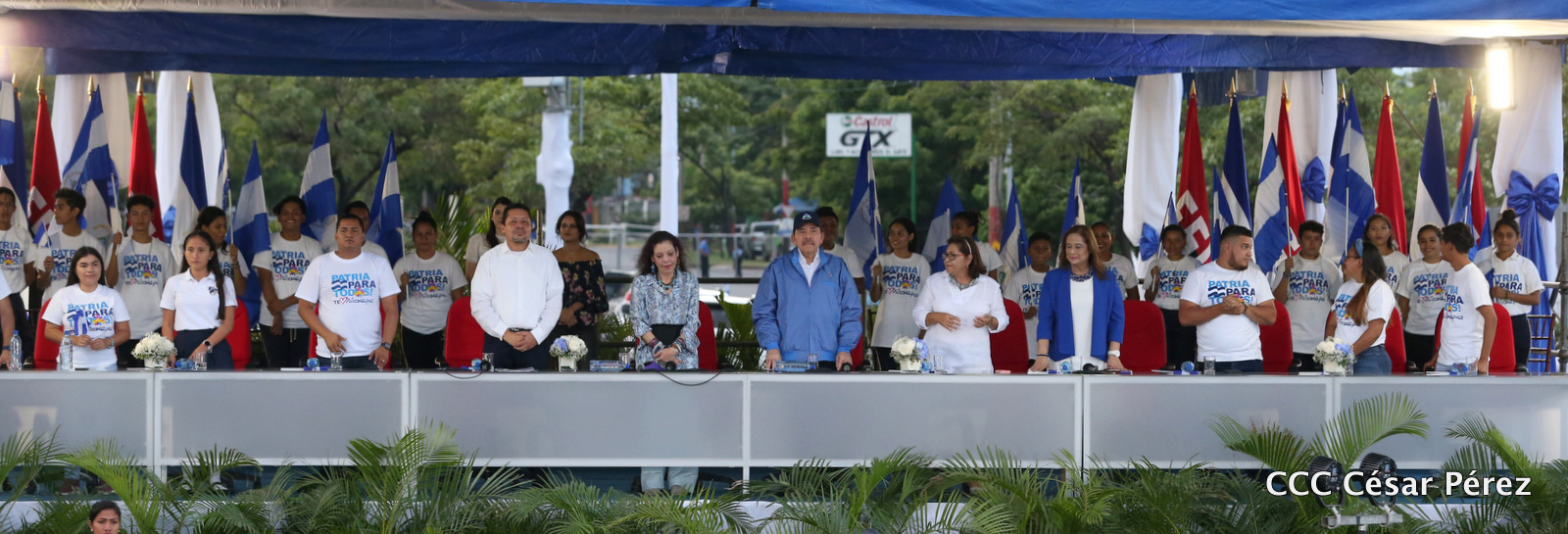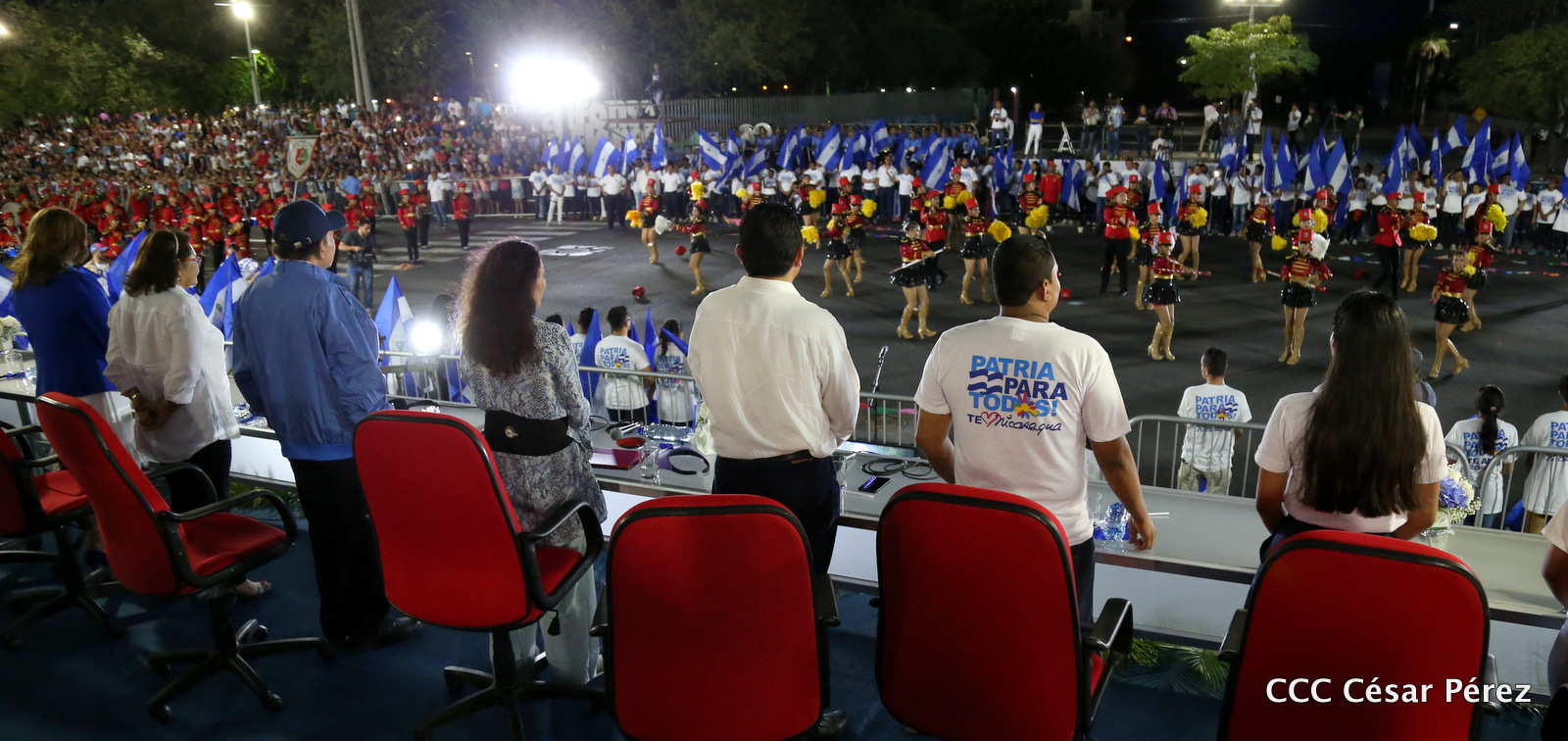 Las familias nicaragüenses desfilaron este 14 de septiembre en todo el país, rindiendo homenaje a la Patria y honor y gloria al pueblo nicaragüense, porque la Patria somos todos, la Patria es el pueblo, la Patria son las familias que trabajan, que se ganan la vida honradamente y que con su trabajo aportan al crecimiento y la prosperidad de nuestra Nicaragua. La Patria somos todos y estamos llenos de cariño y de compromiso con la paz.