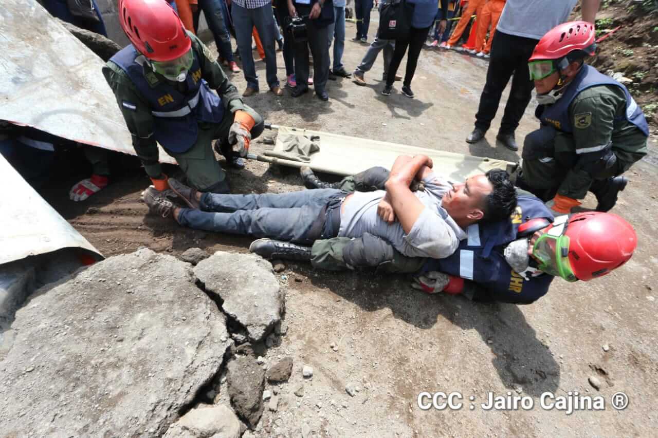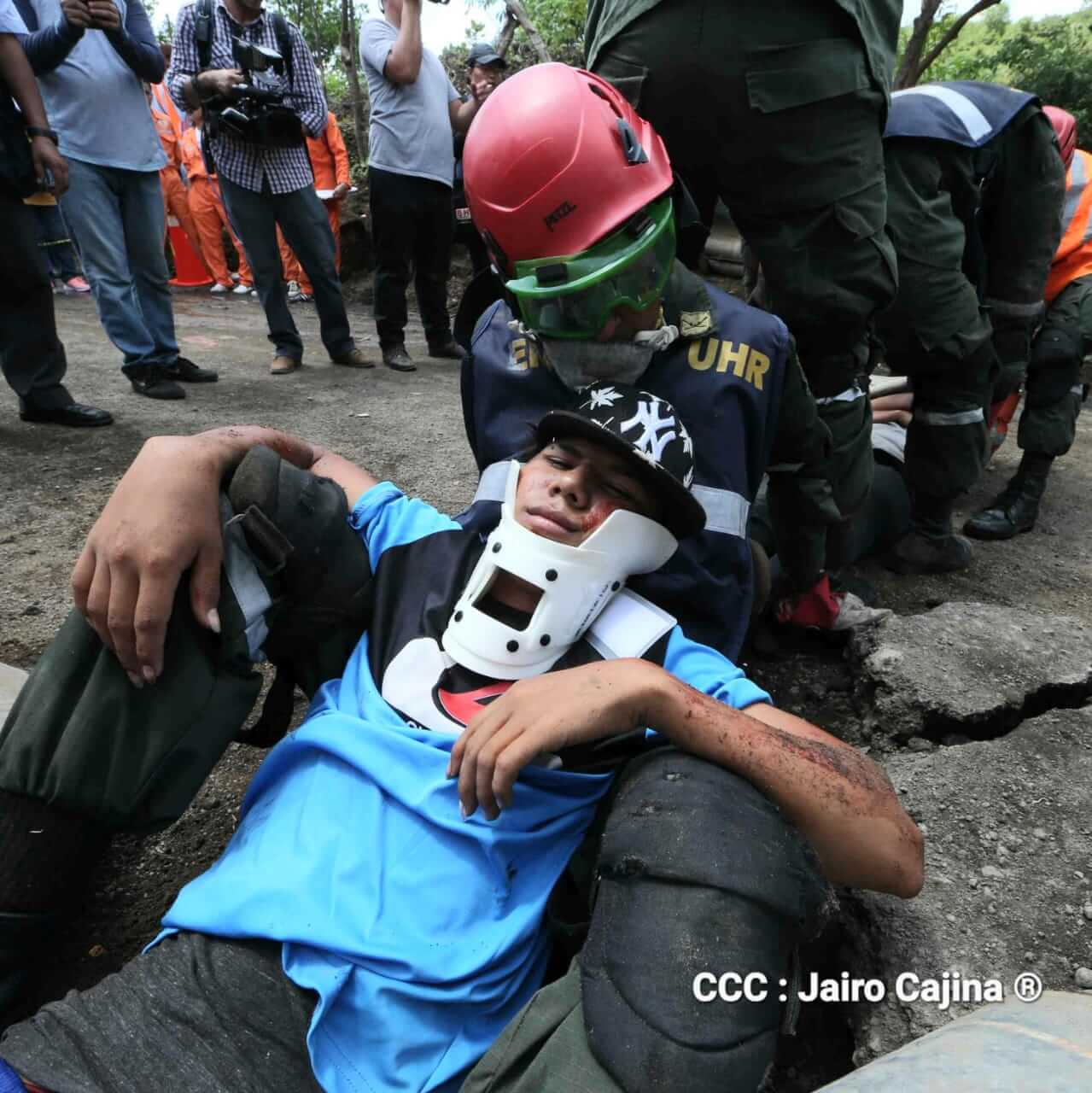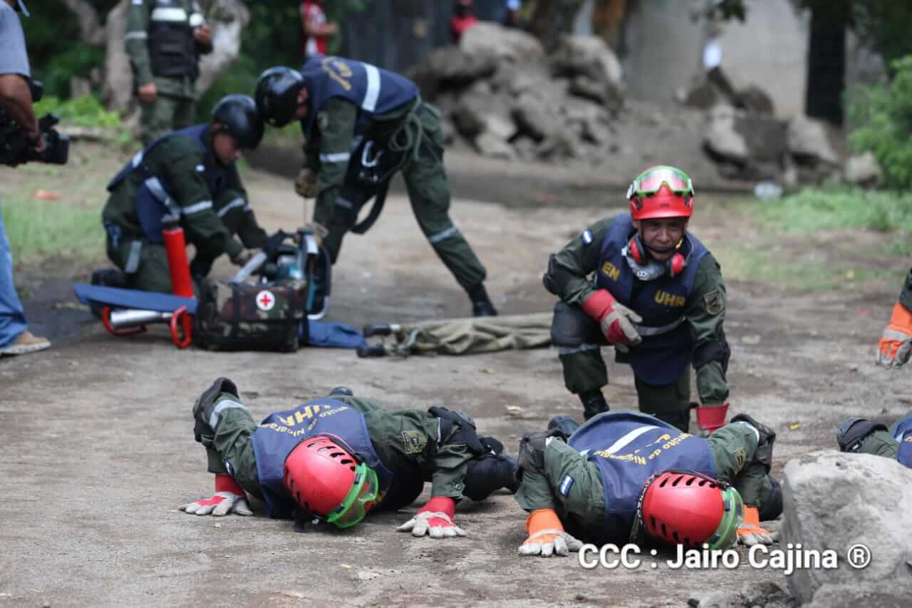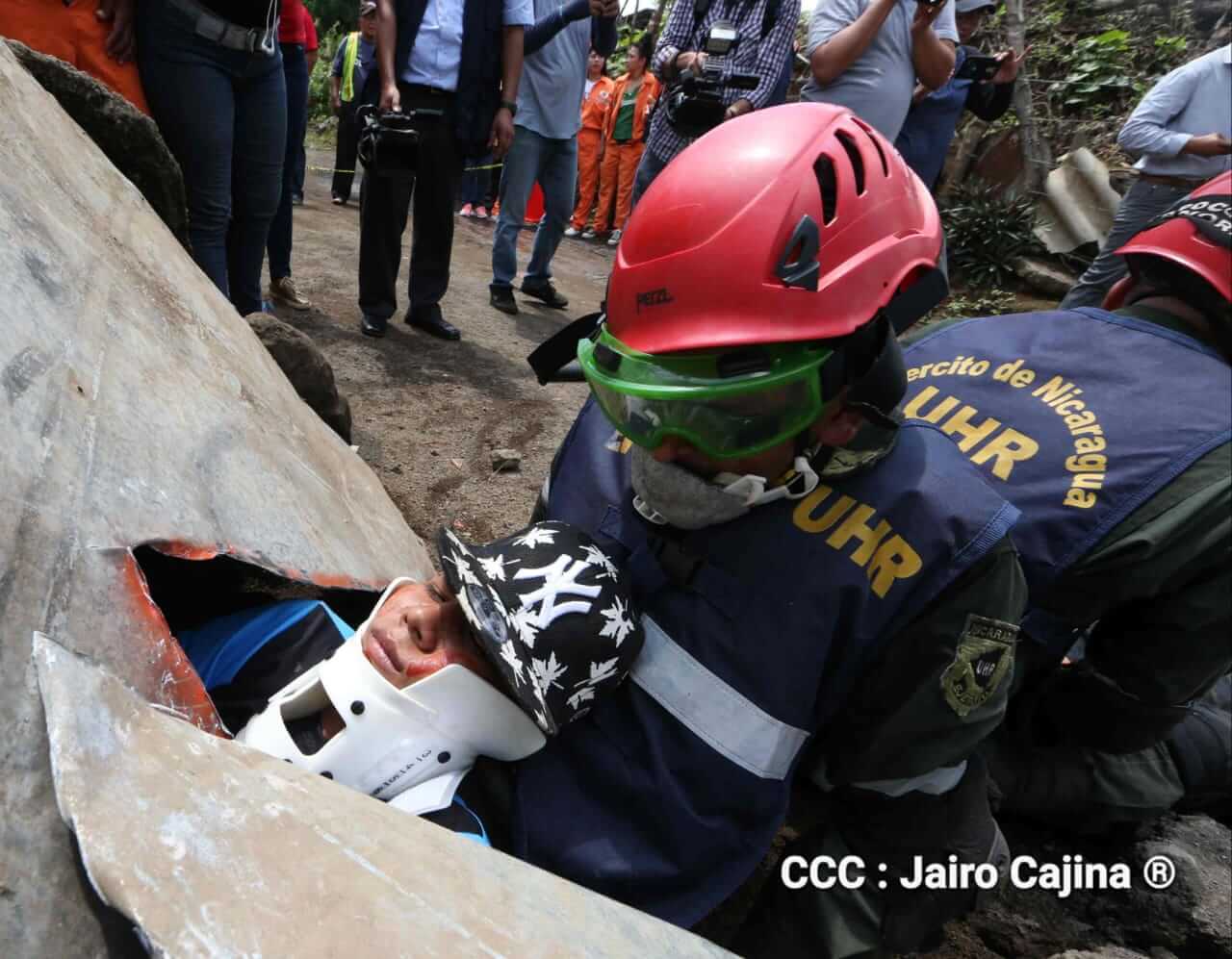 El Sinapred, Defensa Civil, Policía Nacional, el Cuerpo Unificado de Bomberos, el Ministerio de Salud y Cruz Roja Nicaragüense, brindan acompañamiento y asistencia a las familia que participaron en el Tercer Ejercicio Nacional de Preparación y Protección de la Vida.