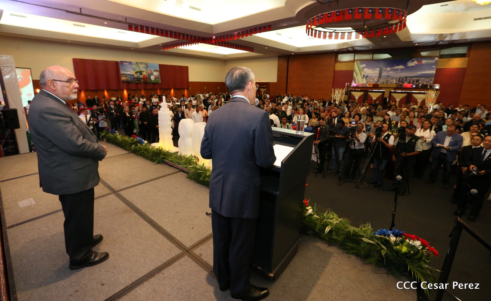 La ceremonia llevada a cabo en el centro de convenciones del Crowne Plaza, en horas del mediodía, contó con la presencia de ministros, viceministros, miembros de gabinete de gobierno, diputados de la Asamblea Nacional, Parlamento Centroamericano, altos mandos del Ejército de Nicaragua, altos mandos de la Policía Nacional, embajadores acreditados en Nicaragua, organismos internacionales y ciudadanos taiwaneses.