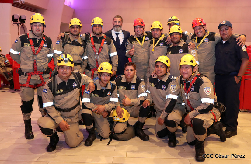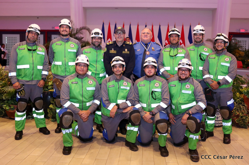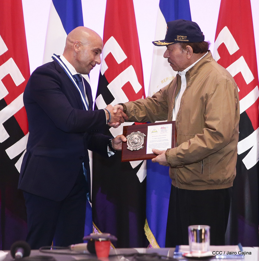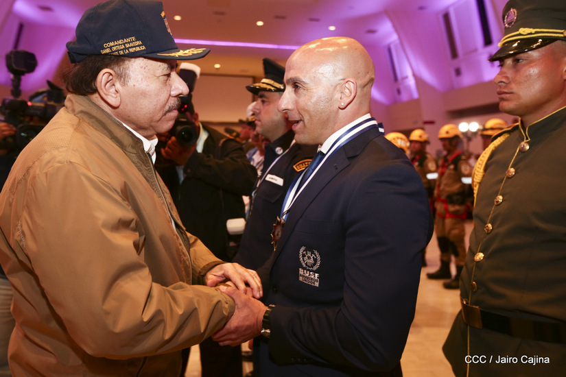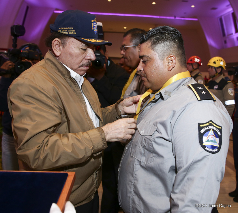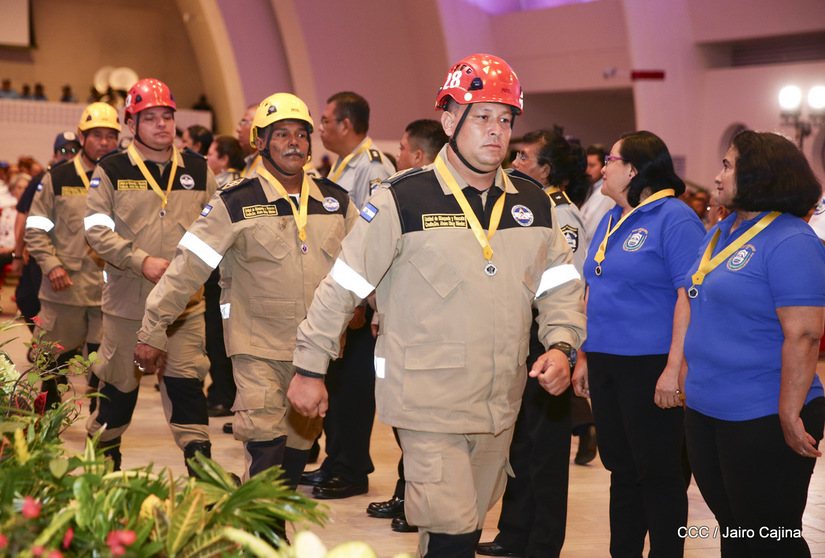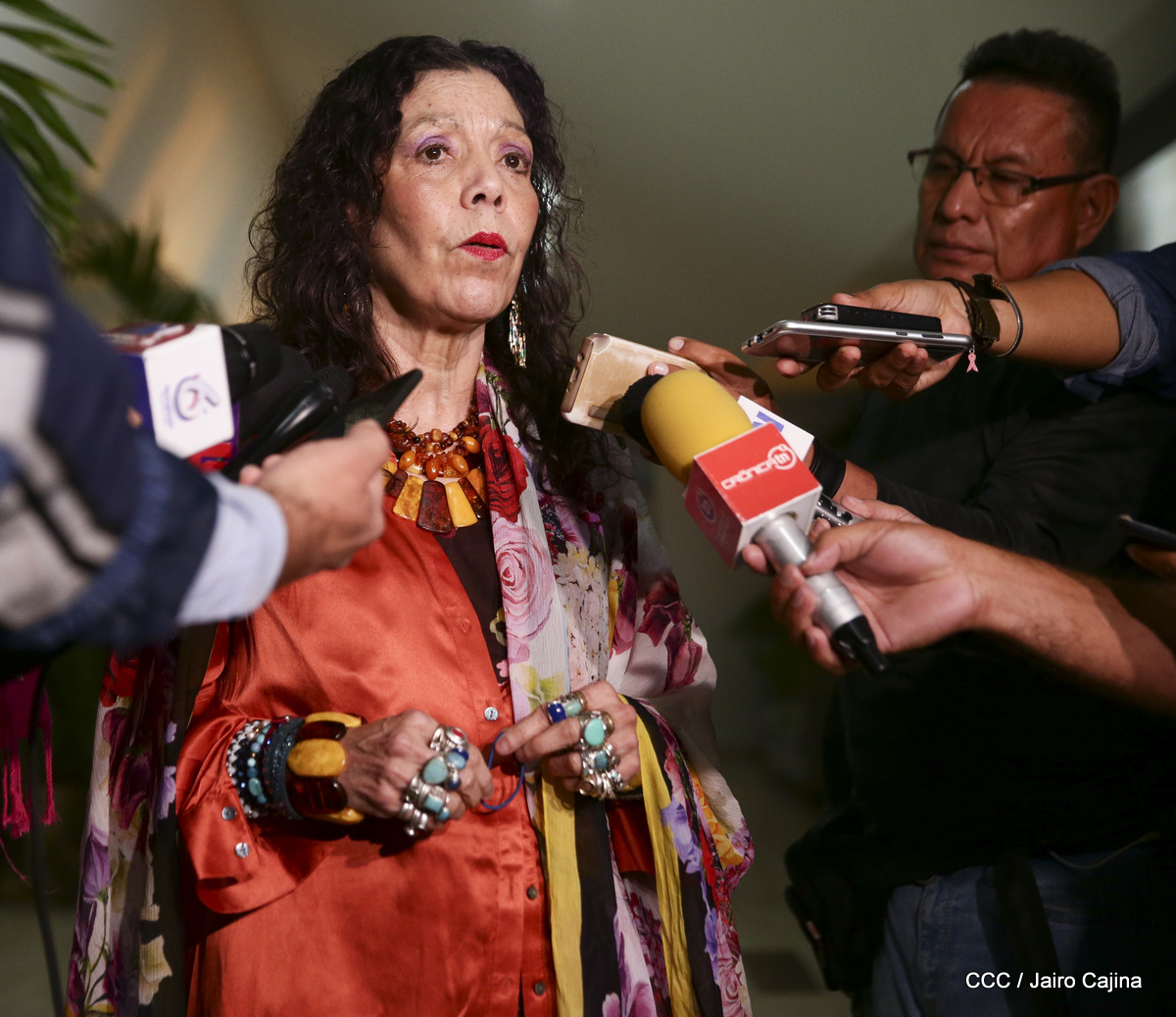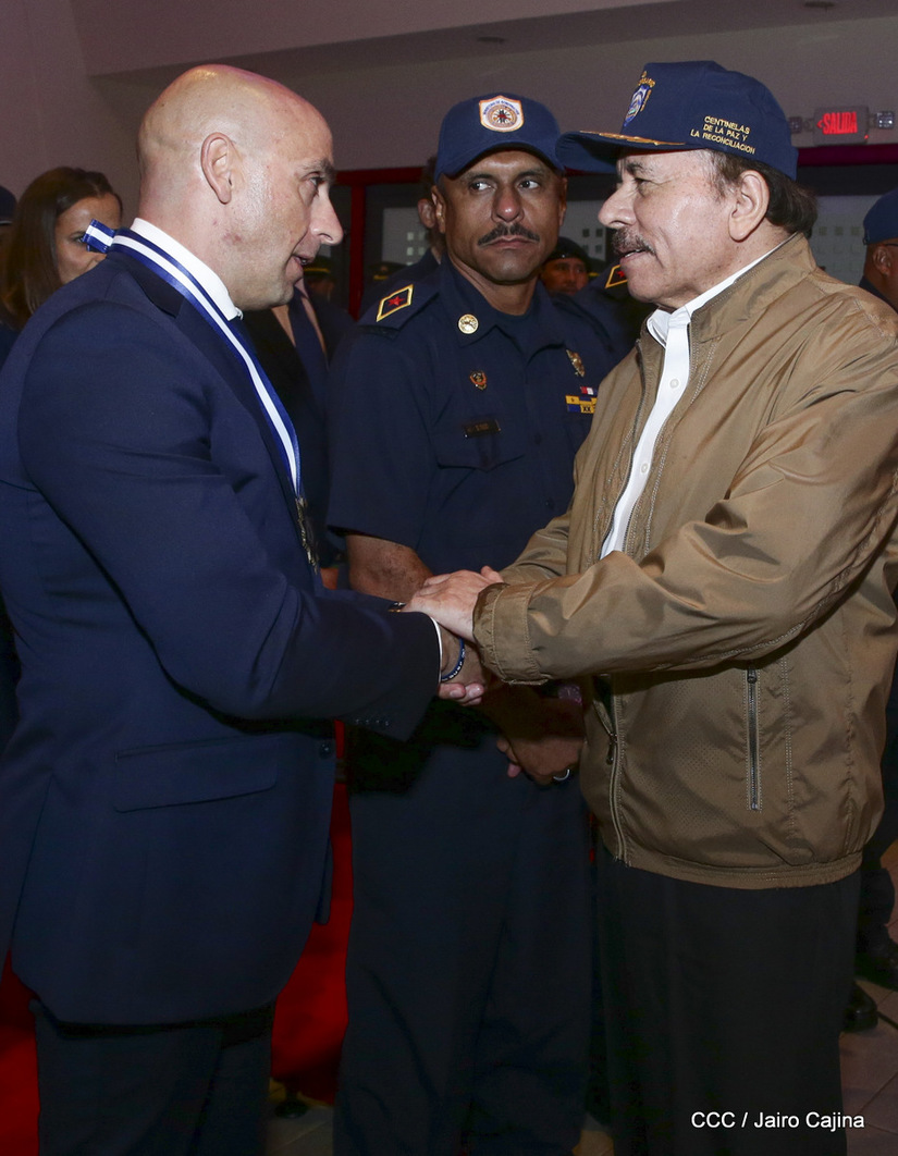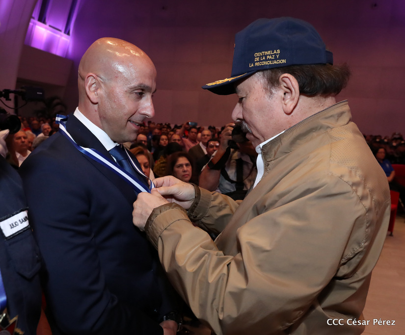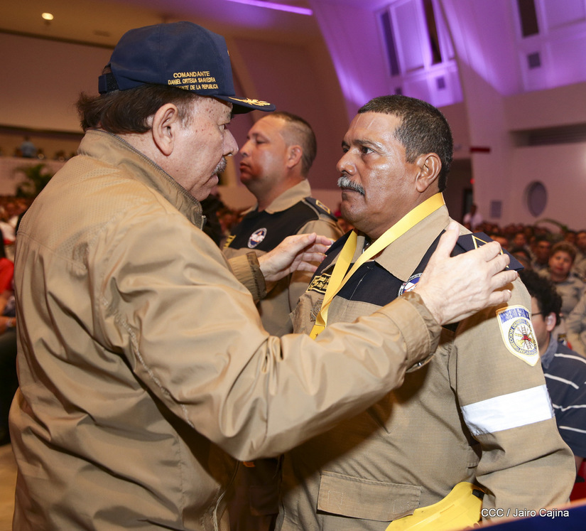 El presidente de la República, comandante Daniel Ortega y la vicepresidenta compañera Rosario Murillo, presiden el acto de 40 aniversario del Ministerio de Gobernación, junto a la compañera ministra María Amelia Coronel y compañera Rosa Adelina Barahona, ministra de Defensa.