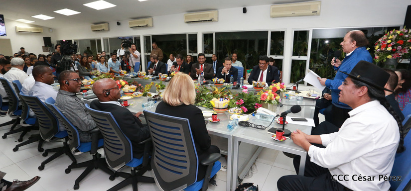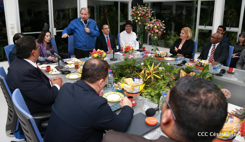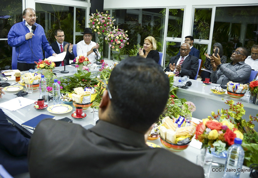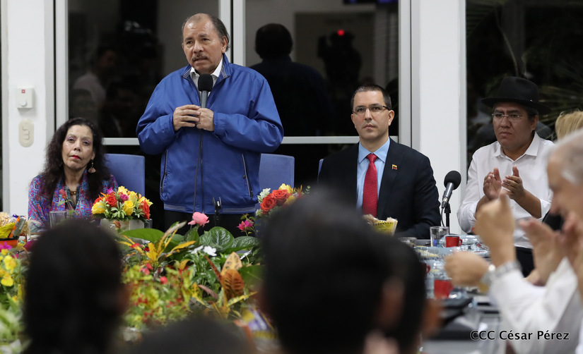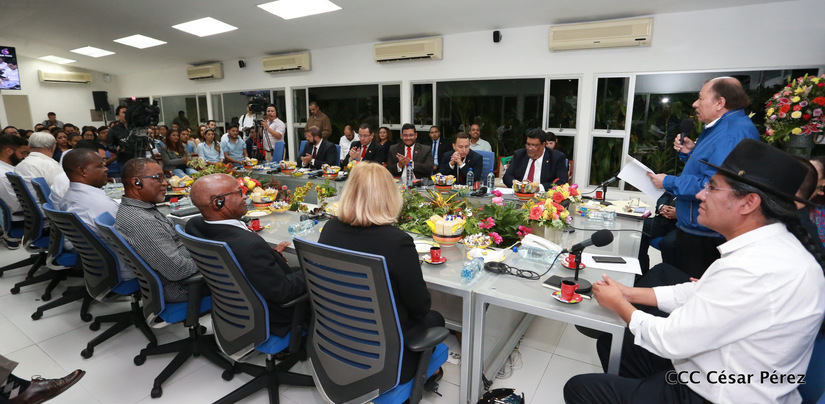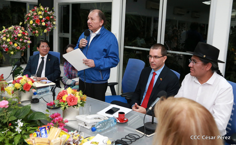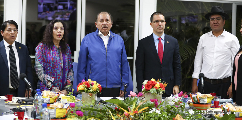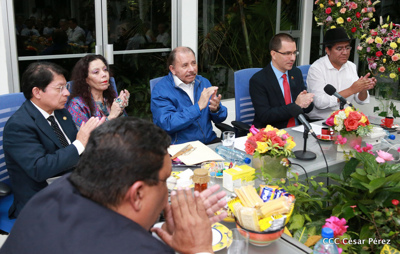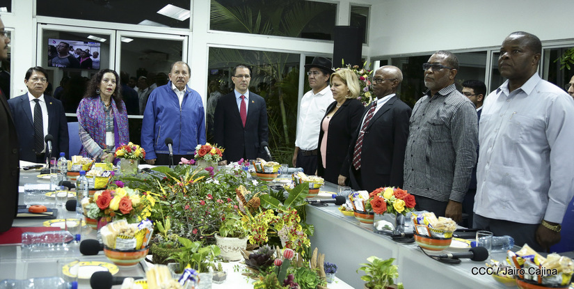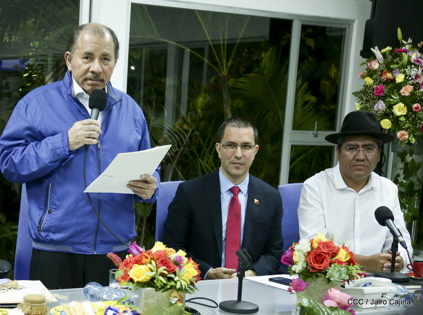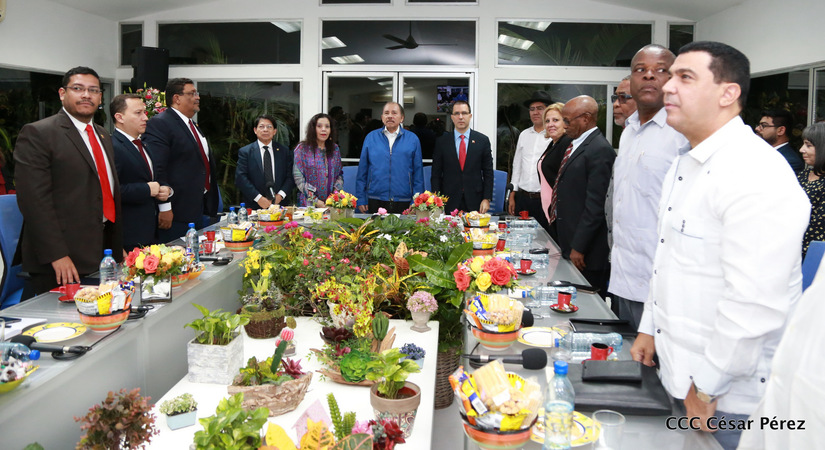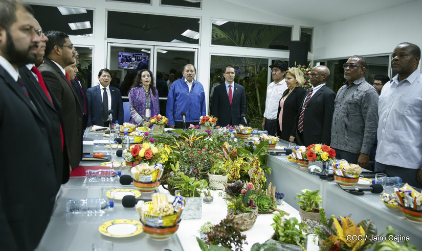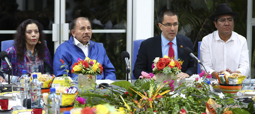 El Presidente Daniel Ortega y la vicepresidenta Rosario Murillo asistieron esta noche a la Octava Reunión Extraordinaria del Consejo Político del ALBA-TCP que sesiona en Managua para analizar el Golpe de Estado contra el Presidente constitucional Evo Morales de Bolivia.