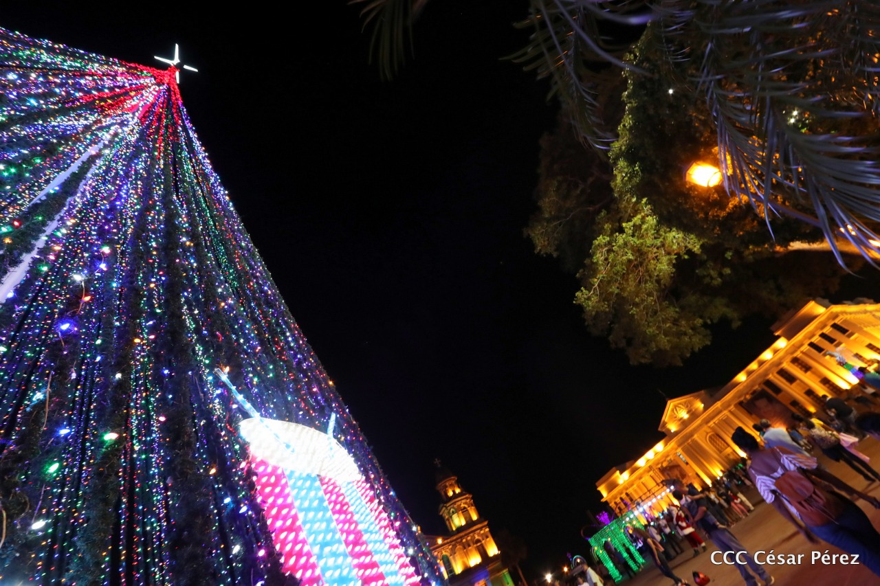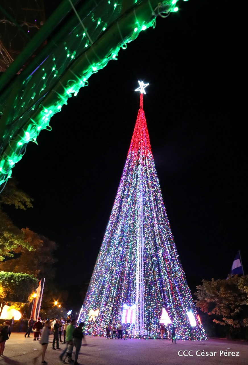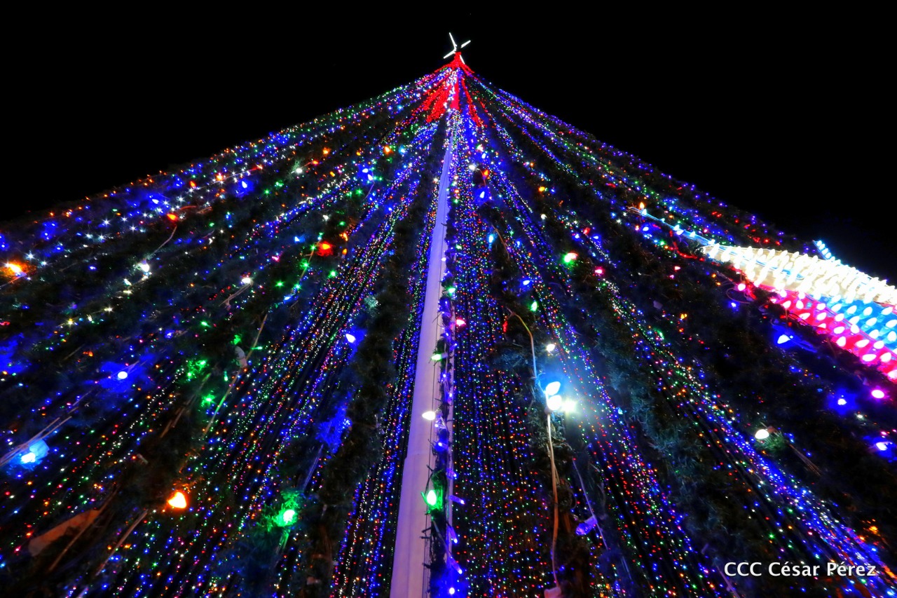 En la Plaza de la Revolución brilla el Árbol de Navidad más grande de Nicaragua. Tiene una altura de 60 metros con una estrella en su cúspide y está decorado con luces de colores, figuras de campanas, regalos y lazos. En la Plaza de la Revolución además del árbol, la Alcaldía colocó una serie de arreglos navideños muy luminosos y coloridos, así como los números del 2020 en alusión al nuevo año que pronto empezará, en donde las familias aprovechan para tomarse fotografías.