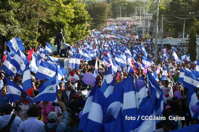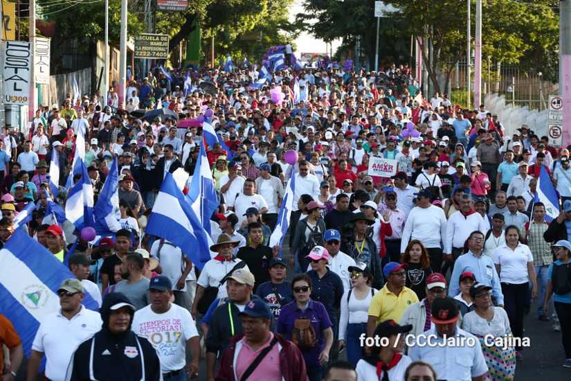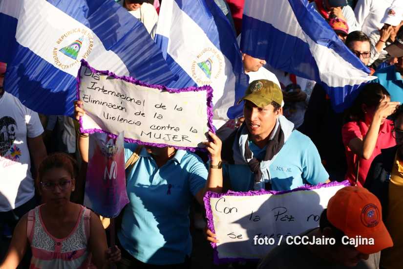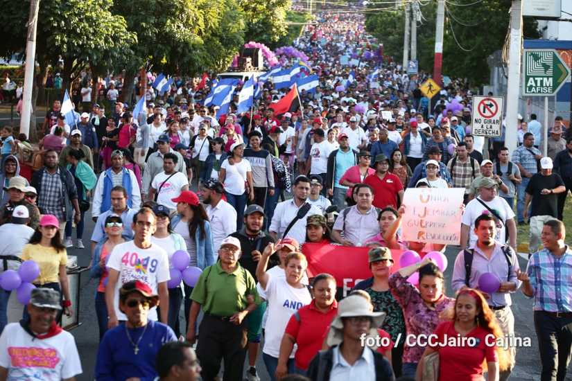 En la Nicaragua Bendita y Siempre Libre miles de pobladores caminaron desde la Avenida Universitaria hasta el Paseo de los Estudiantes para respaldar las diferentes políticas que promueven los derechos de la mujer y que son garantizados por el Gobierno Sandinista.