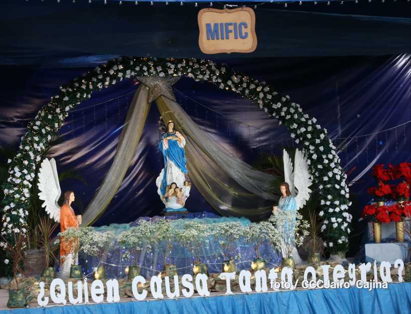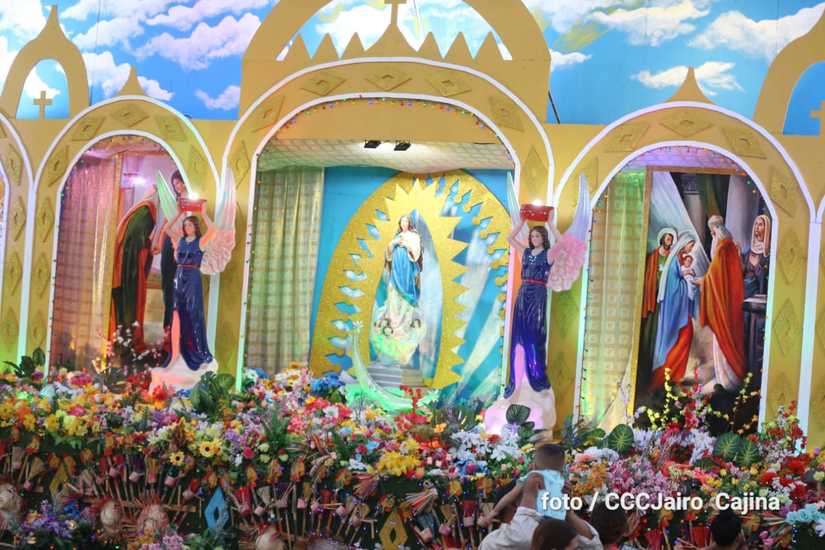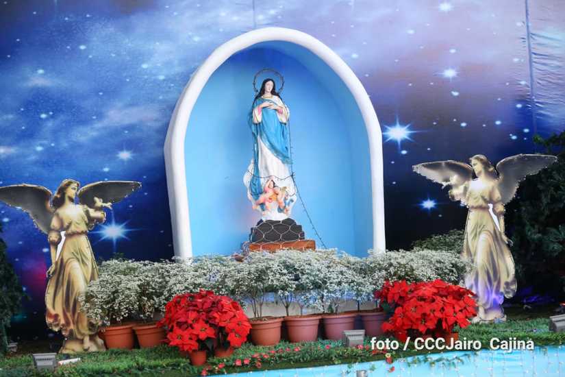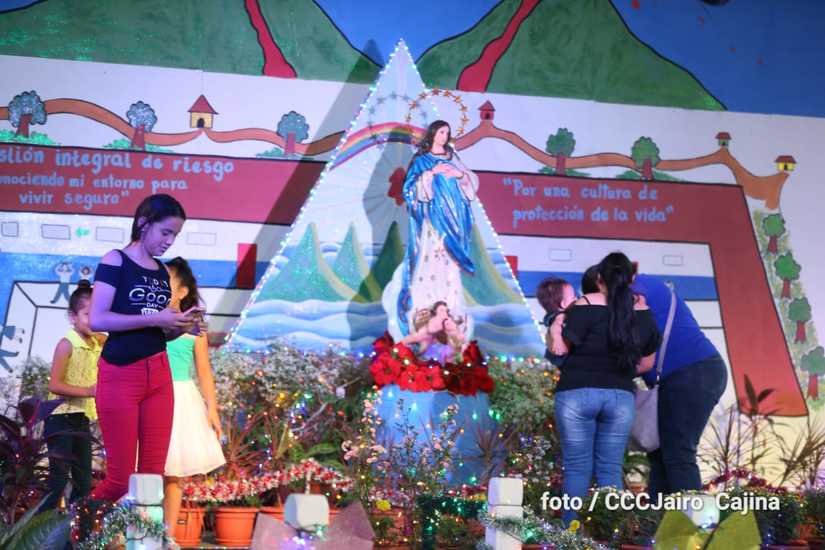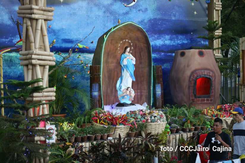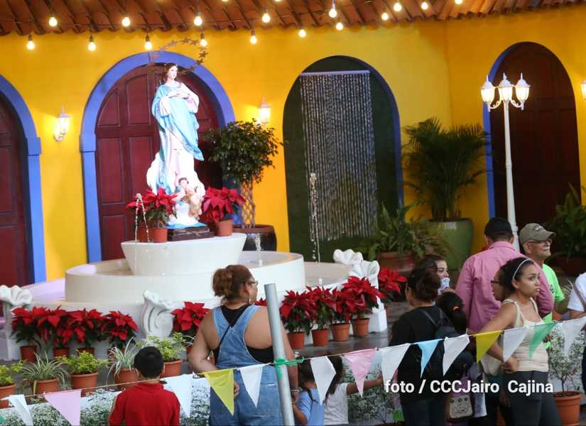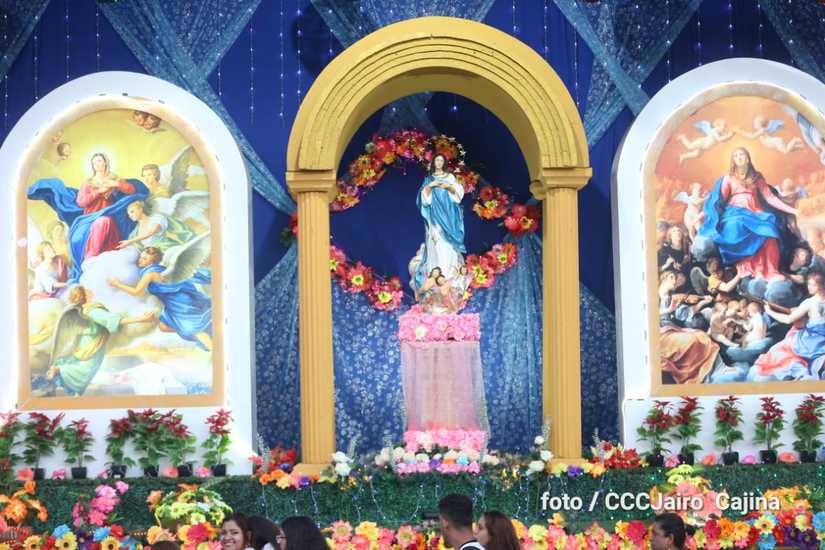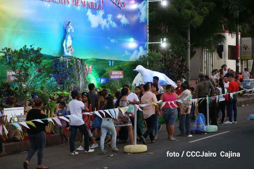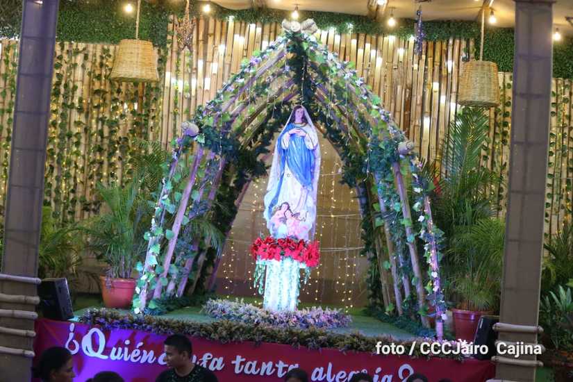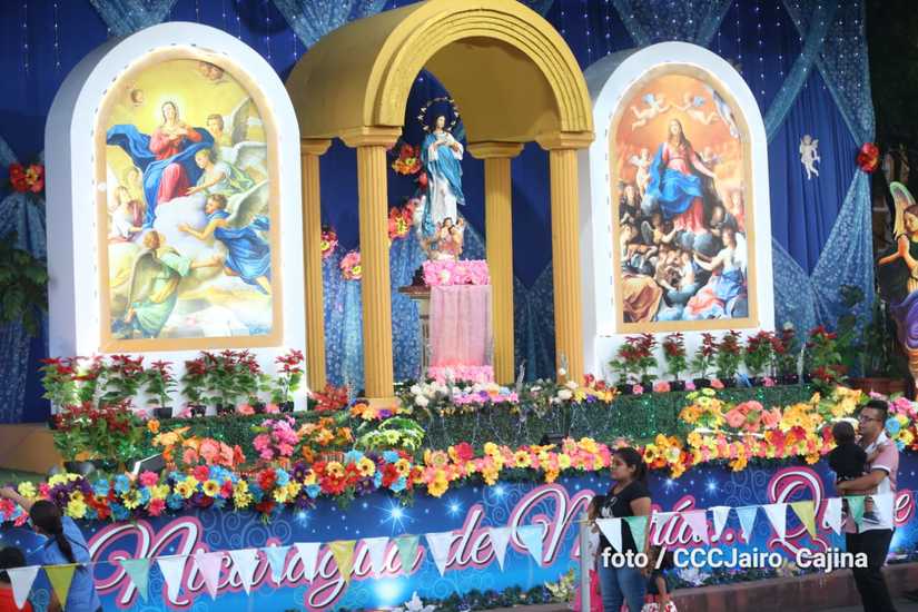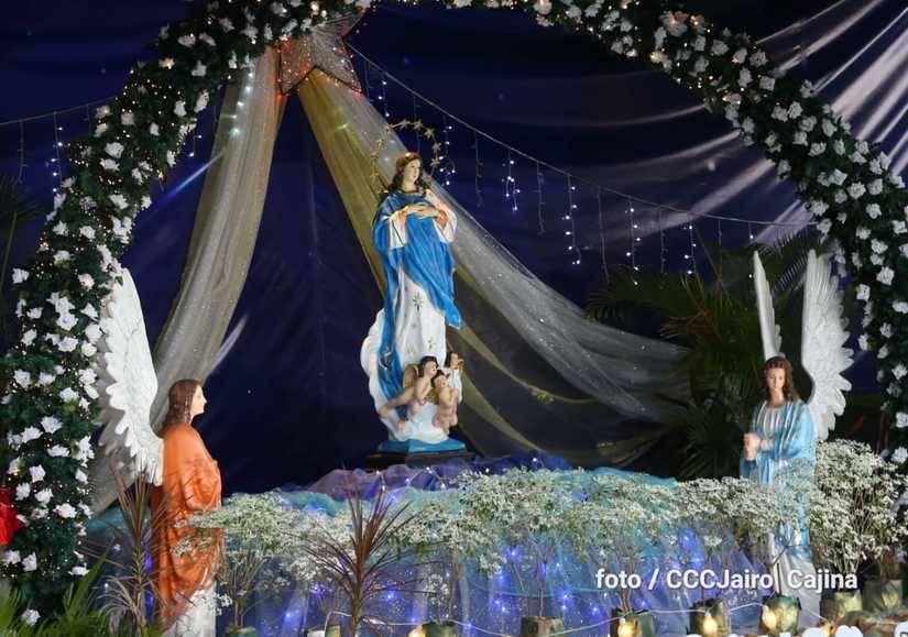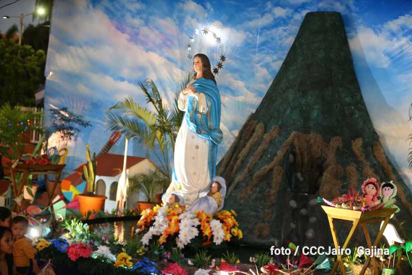 Las calles de Managua, especialmente, la Avenida de Bolívar a Chávez, se llenaron de miles de personas que decidieron recorrerla este domingo para disfrutar de la belleza de cada altar elaborado en homenaje a la Purísima Concepción de María.