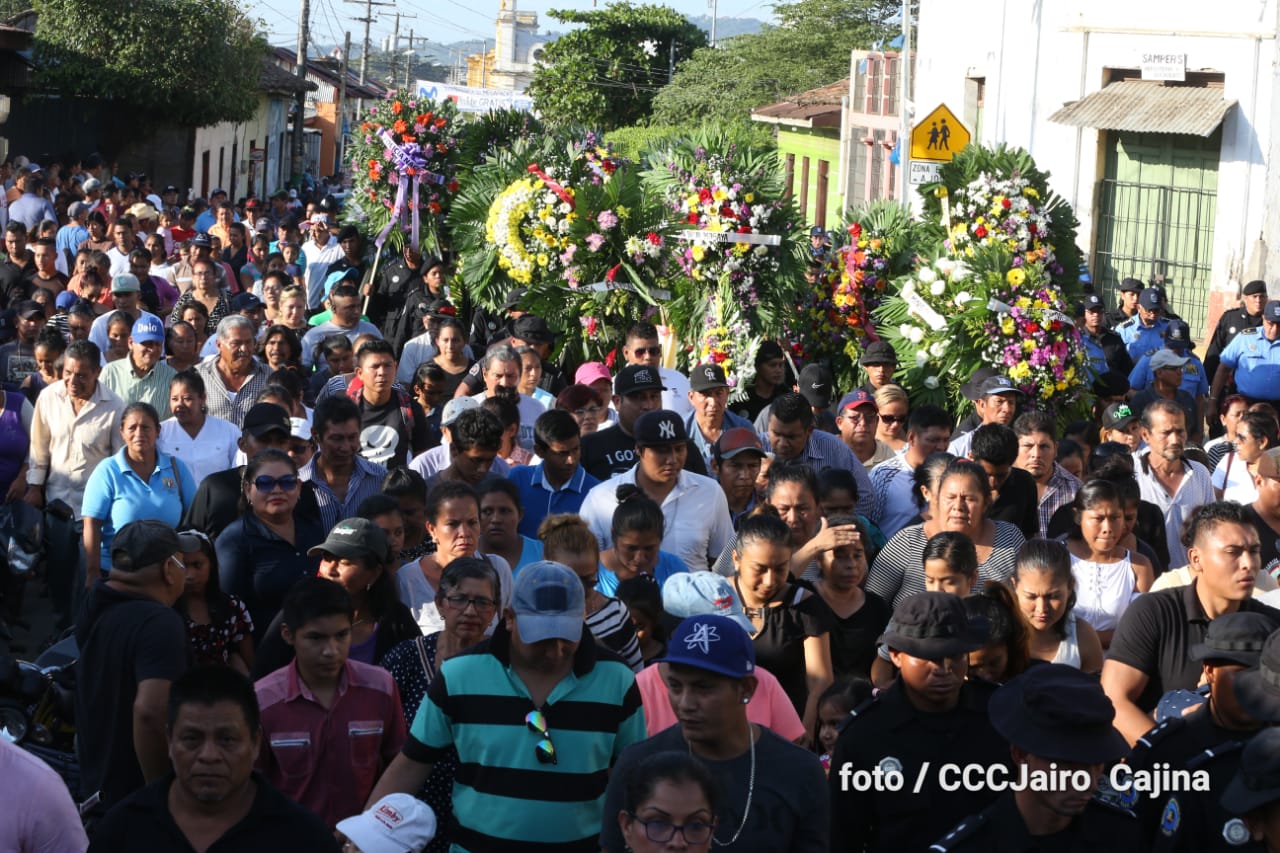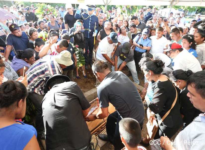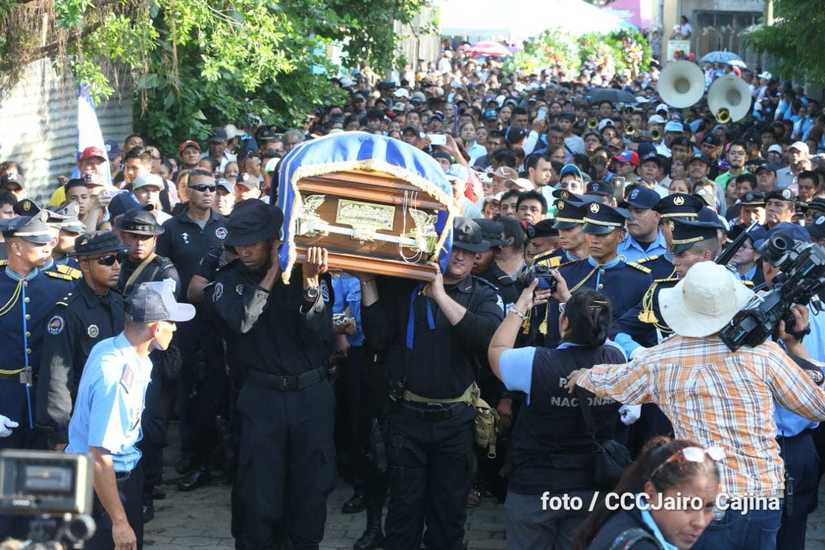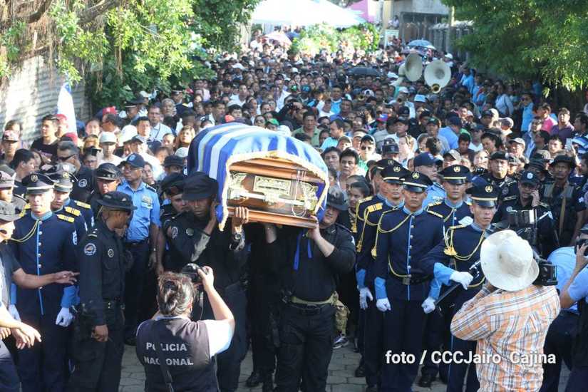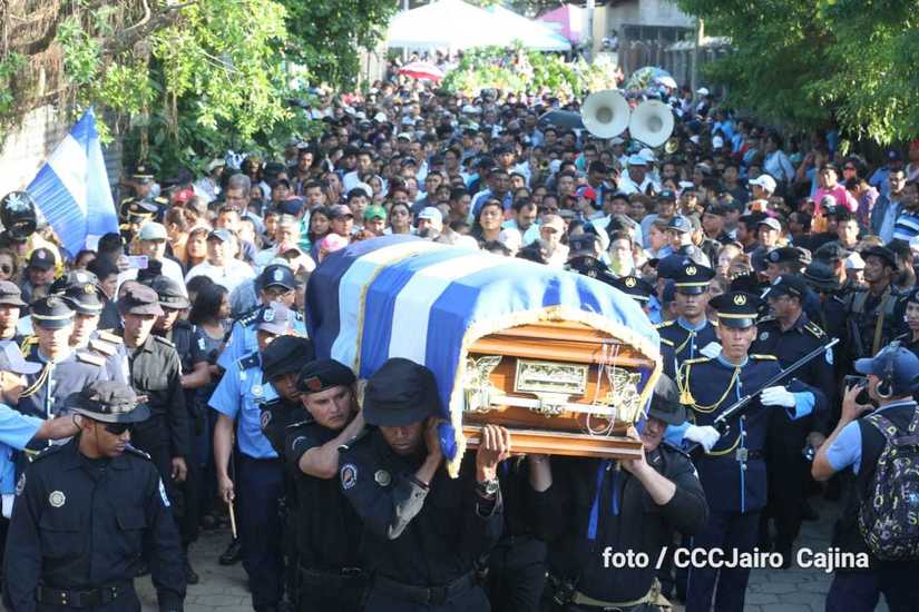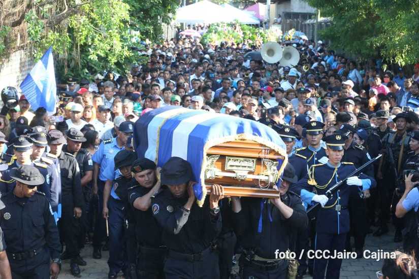 Miles de nicaragüenses participaron en las honras fúnebres de los hermanos suboficial mayor Carlos Alberto Sauce Ortiz, y suboficial Luis Alexander Mendieta Alemán, quienes dieron su vida por amor, defendiendo el derecho de vivir seguros que tenemos las familias nicaragüenses.