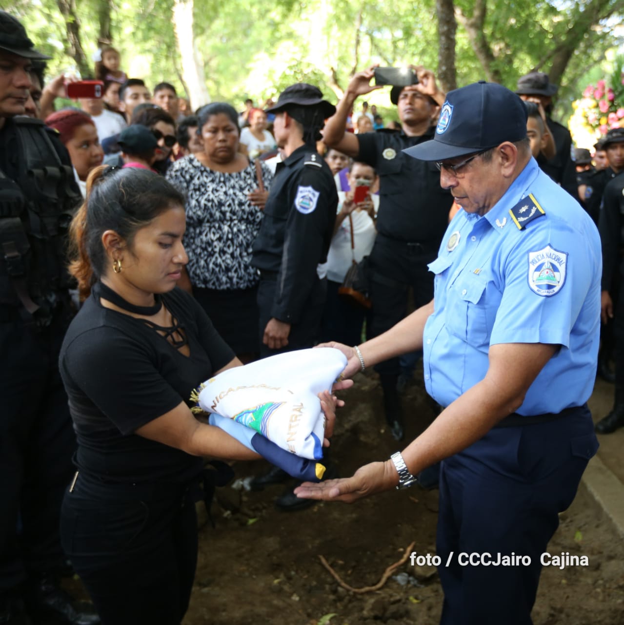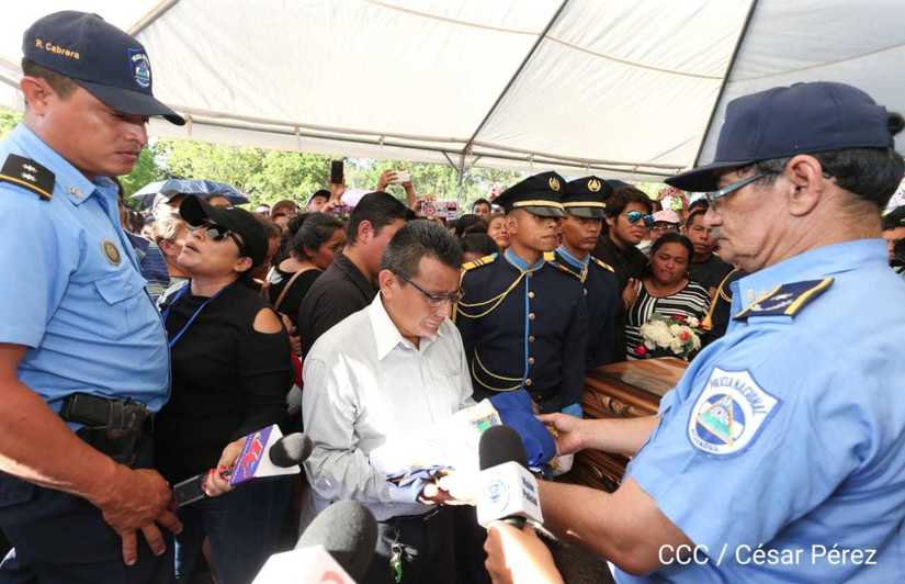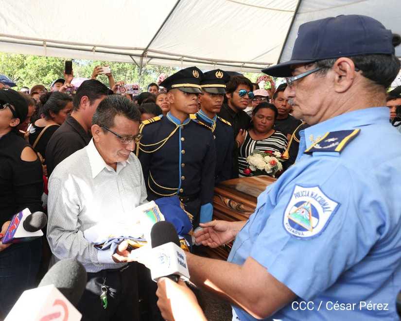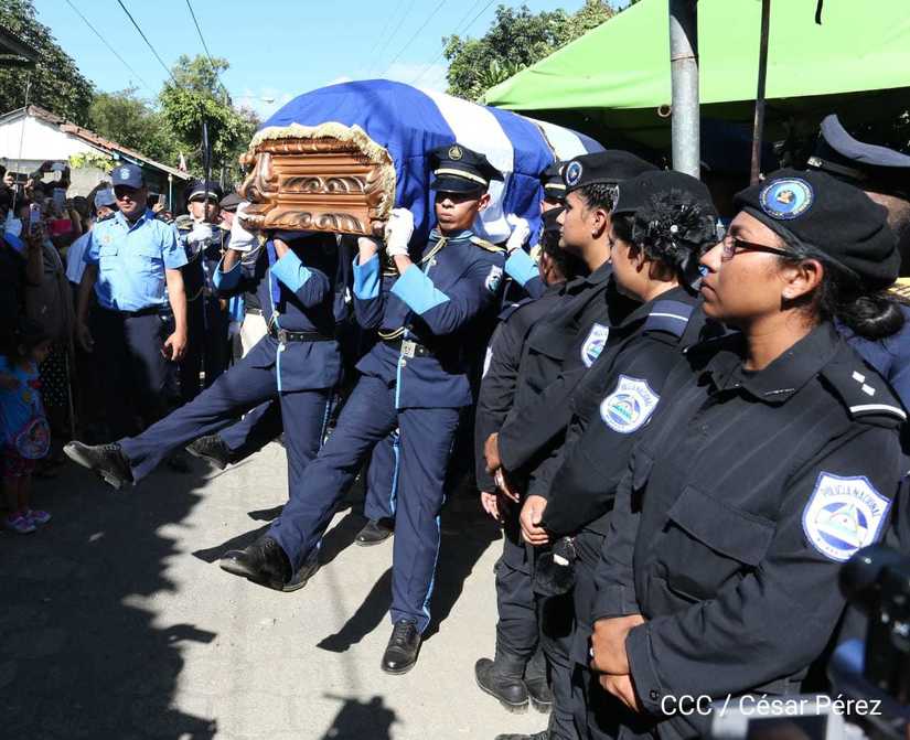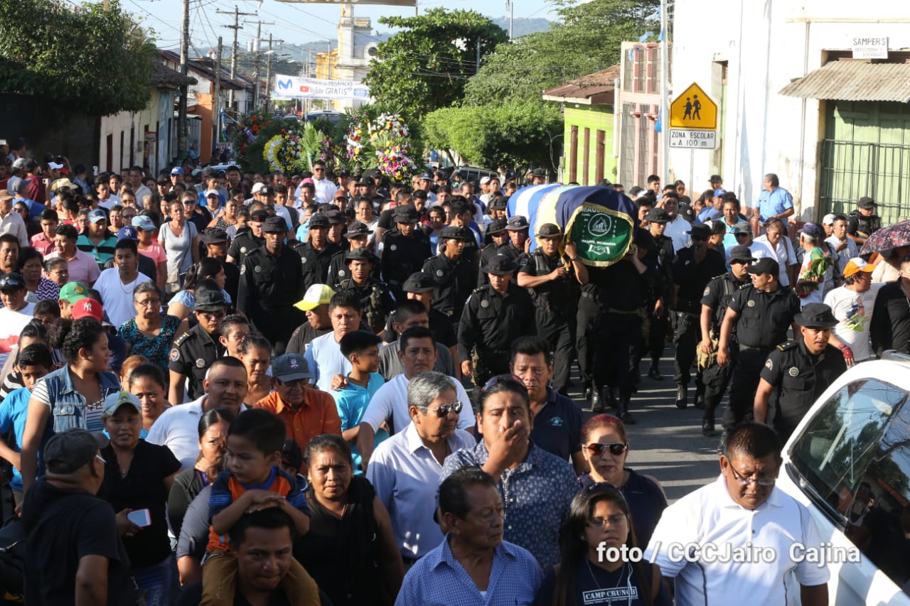 Miles de nicaragüenses participaron en las honras fúnebres de los hermanos suboficial mayor Carlos Alberto Sauce Ortiz, y suboficial Luis Alexander Mendieta Alemán, quienes dieron su vida por amor, defendiendo el derecho de vivir seguros que tenemos las familias nicaragüenses.