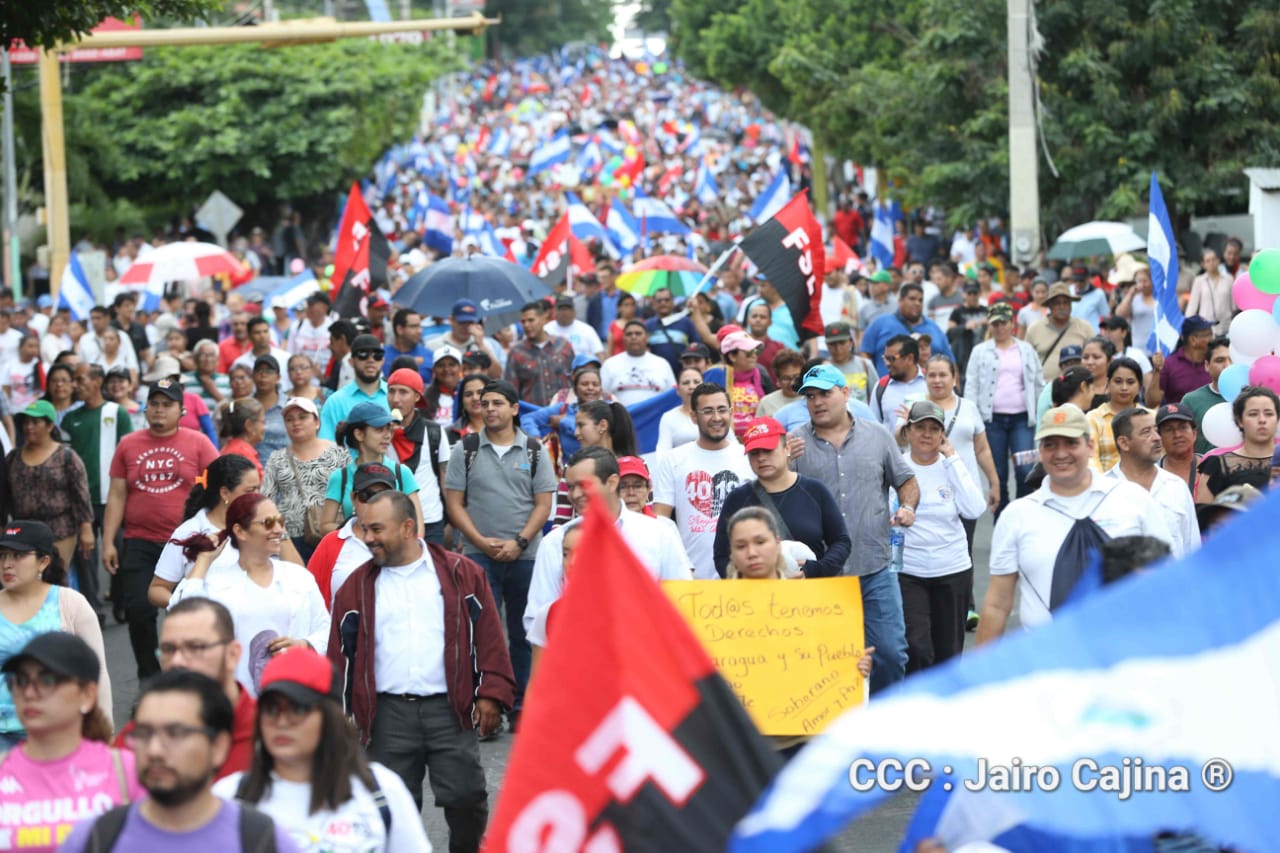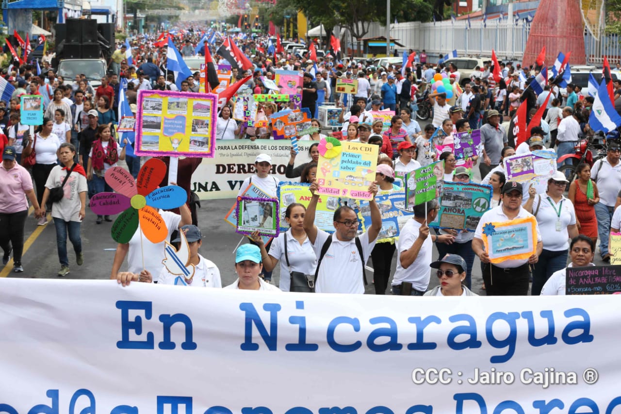 Miles de nicaragüenses caminaron hoy en todo el país para reafirmar que en Nicaragua todos tenemos derecho a vivir en paz, en armonía y reconciliación en el 71 Aniversario de la Declaración Universal de los Derechos Humanos. Las multitudinarias caminatas en Managua, departamentos y municipios de Nicaragua proclamaron “¡Derechos para Todos! por la paz, el amor y la reconciliación”.