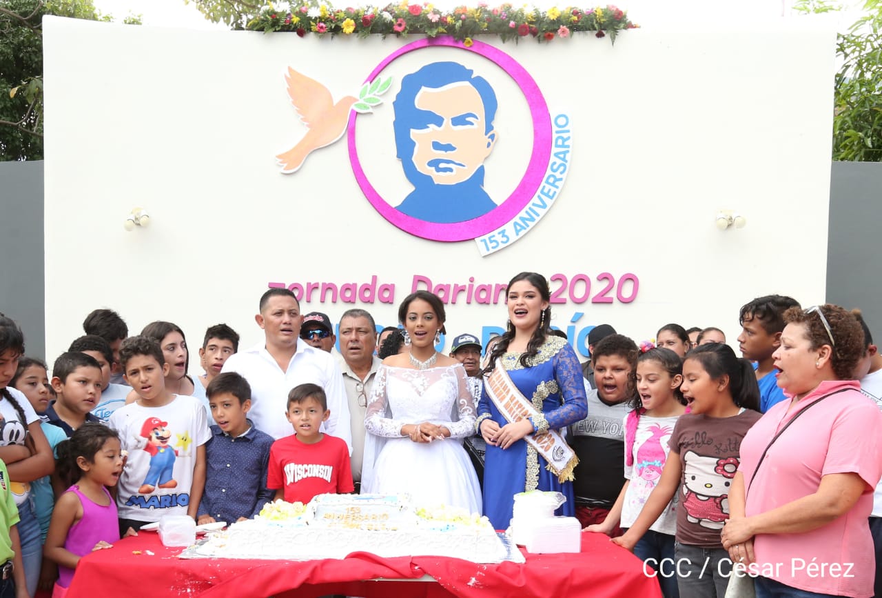 Desde horas tempranas de este sábado los nicaragüenses de festejan a lo largo y ancho del país el 153 aniversario de Rubén Dario con caminatas, poesía y ofrendas florales.