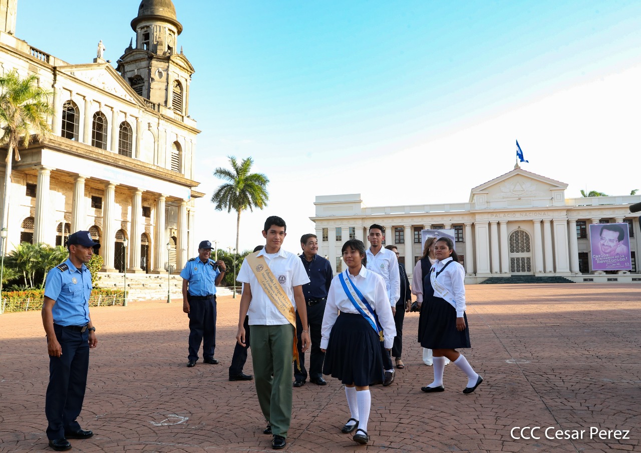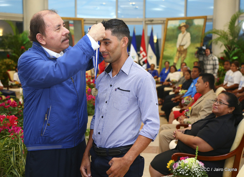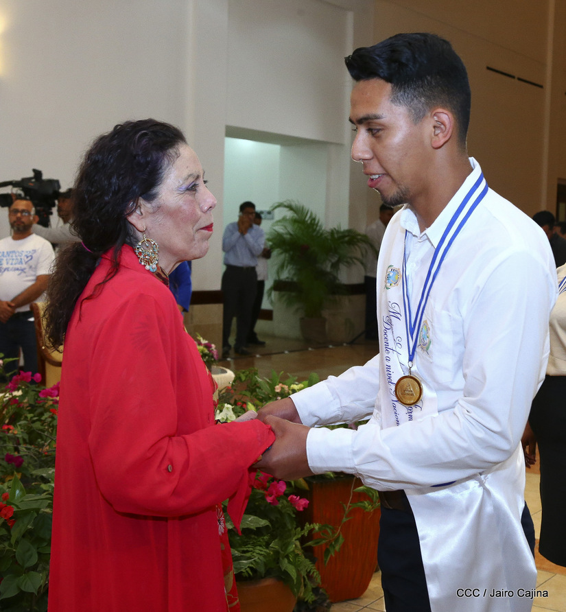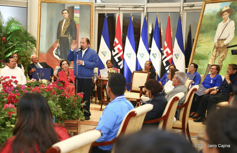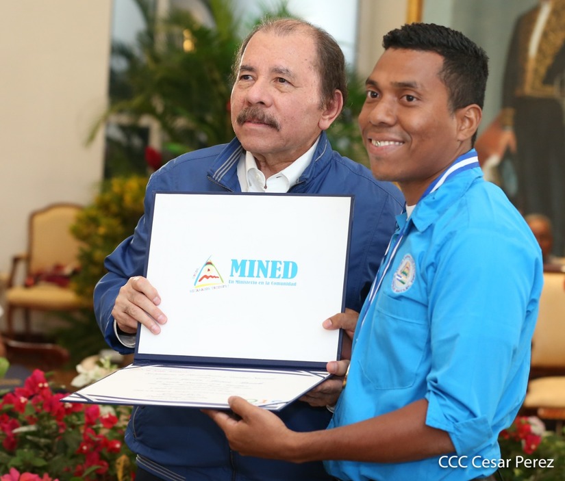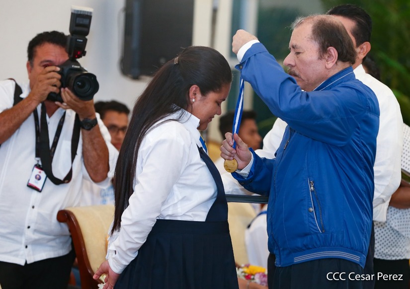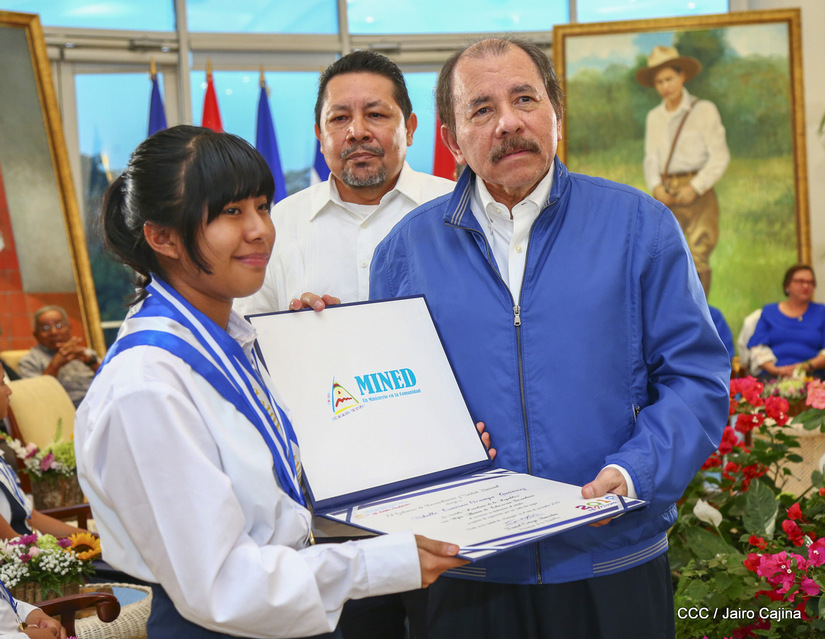 El presidente Daniel Ortega y la compañera vicepresidenta Rosario Murillo entregan la Orden de la Independencia Cultural Rubén Darío a los mejores docentes de Nicaragua, en reconocimiento a su destacada vocación de servicio. Asimismo recibieron medalla de Excelencia al mérito los mejores estudiantes 2019.