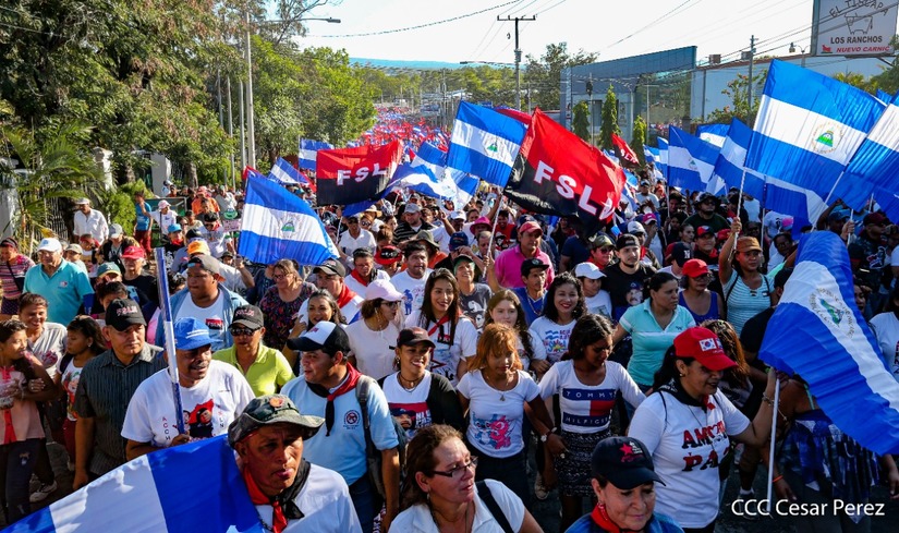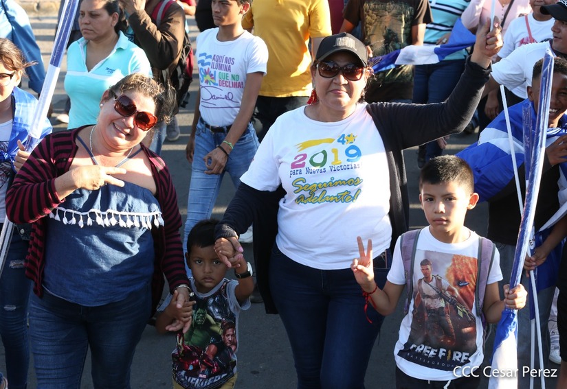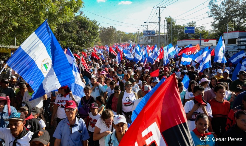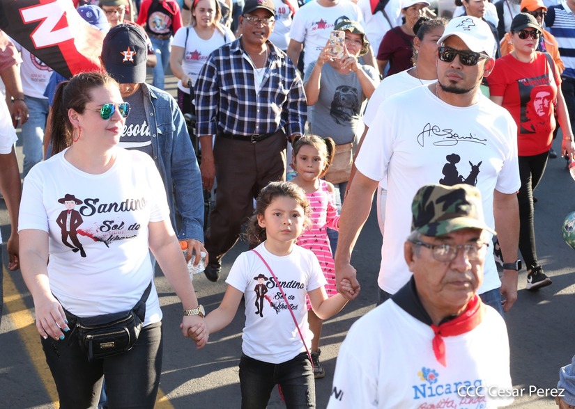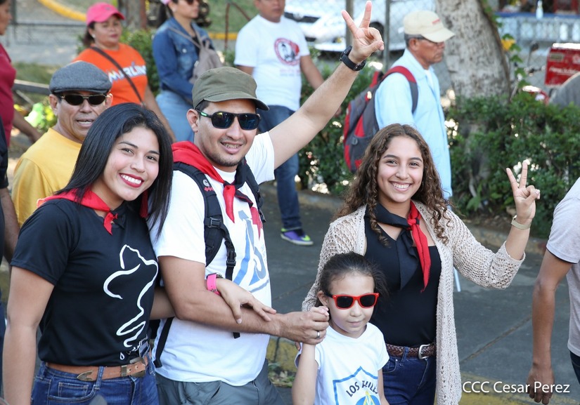Miles de familias, jóvenes y militantes sandinistas participaron en la caminata en saludo al 86 aniversario del tránsito a la inmortalidad del general de hombres y mujeres libres, Augusto C. Sandino.