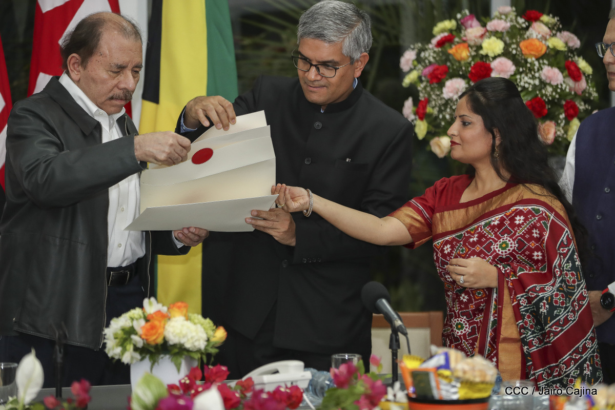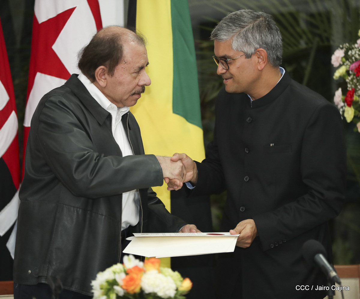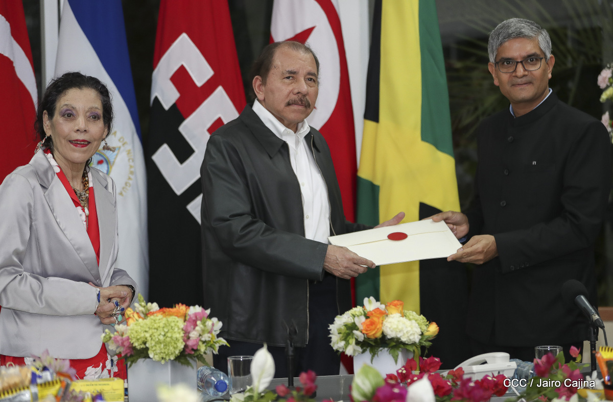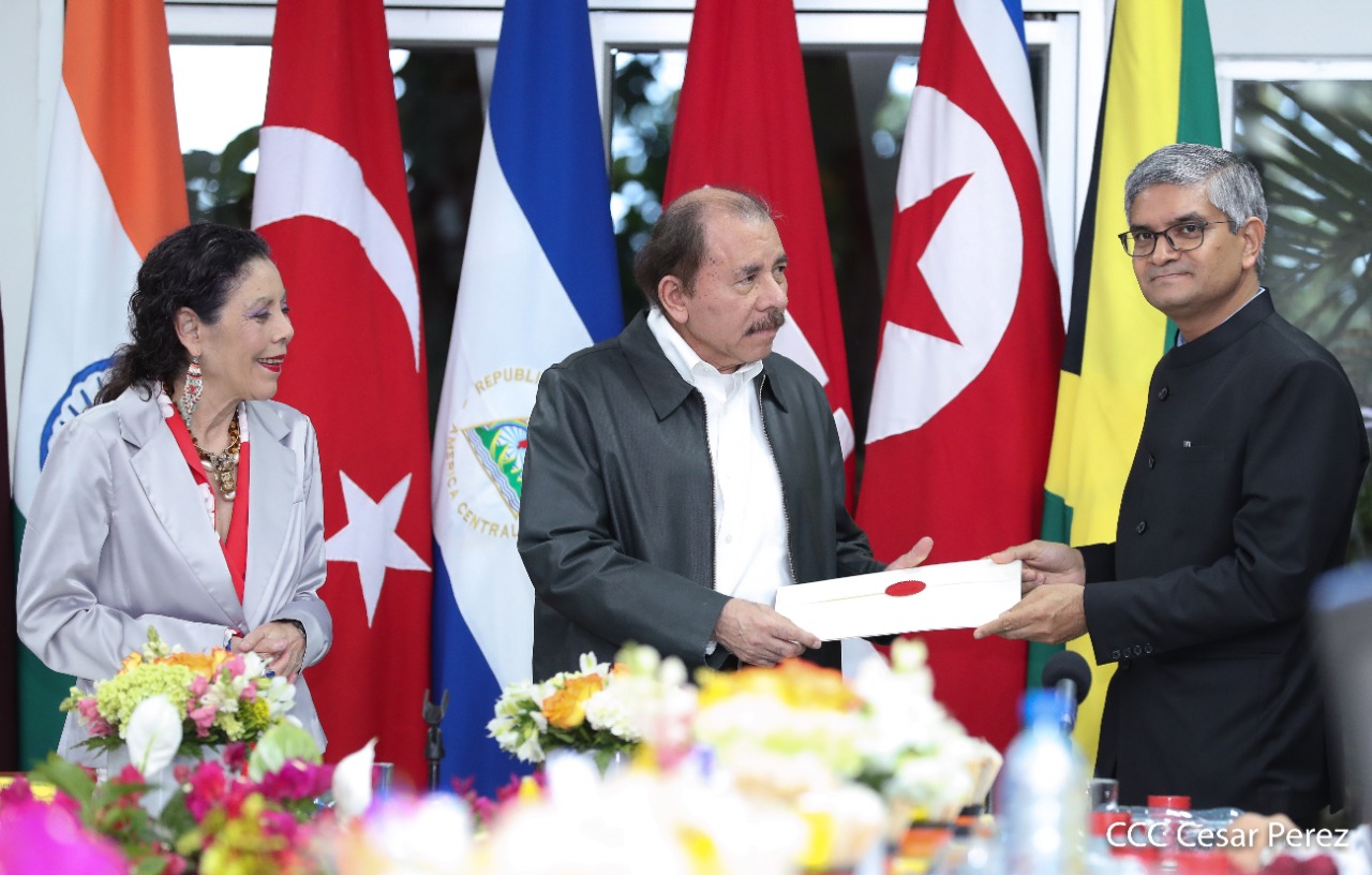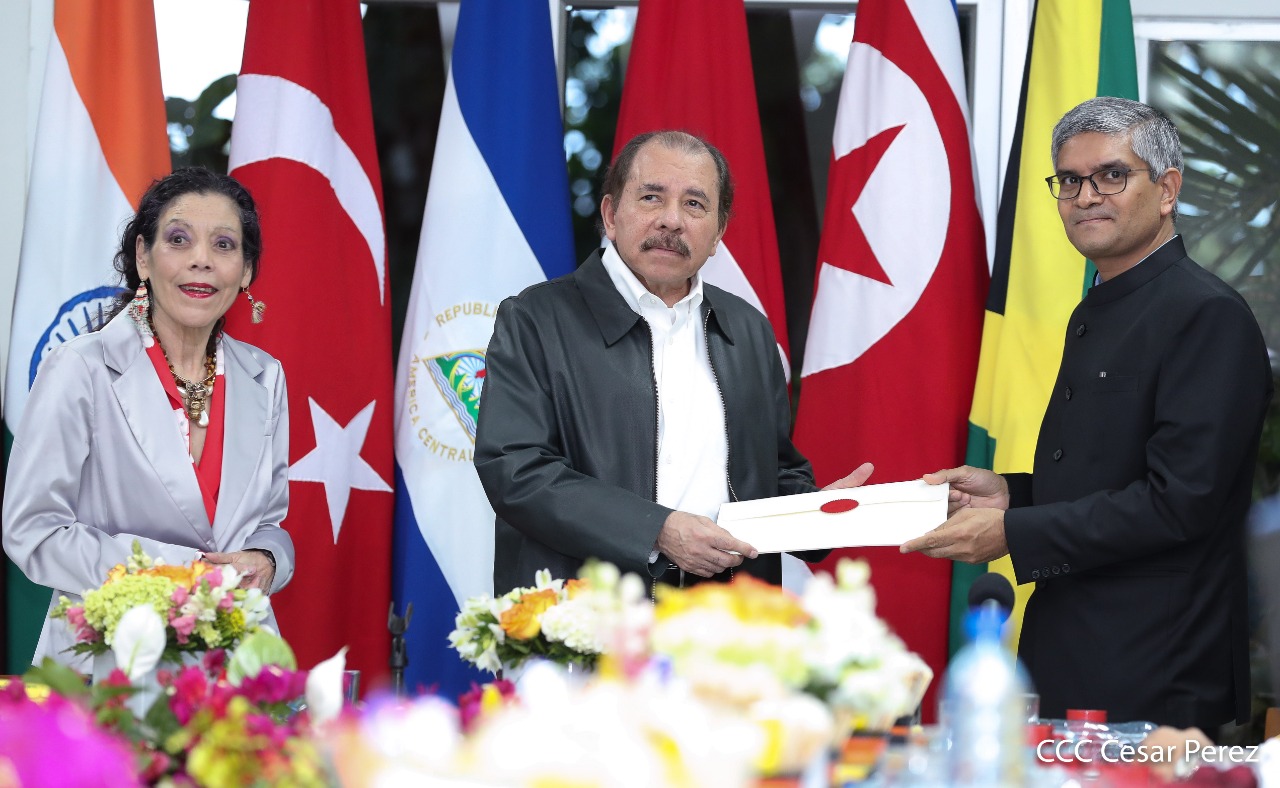 Cinco nuevos embajadores concurrentes con Nicaragua presentaron sus cartas credenciales este jueves al presidente Daniel Ortega y la vicepresidenta Rosario Murillo. En el acto solemne celebrado en Managuw, cartas credenciales el embajador del Estado de Catar, señor Khamis Rashid M. Al-Kaabi; el embajador de la República de la India, Upender Singh Rawat; la embajadora de Turquía, Fatma Pihava Ünlü, el embajador de la República Popular Democrática de Corea, señor Ma Chol Su y el embajador Jamaica, Jason Keats Matthew Hall, quienes se hicieron acompañar por algunos miembros de sus delegaciones diplomáticas.