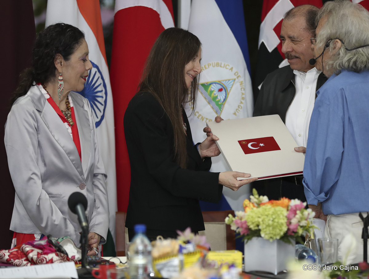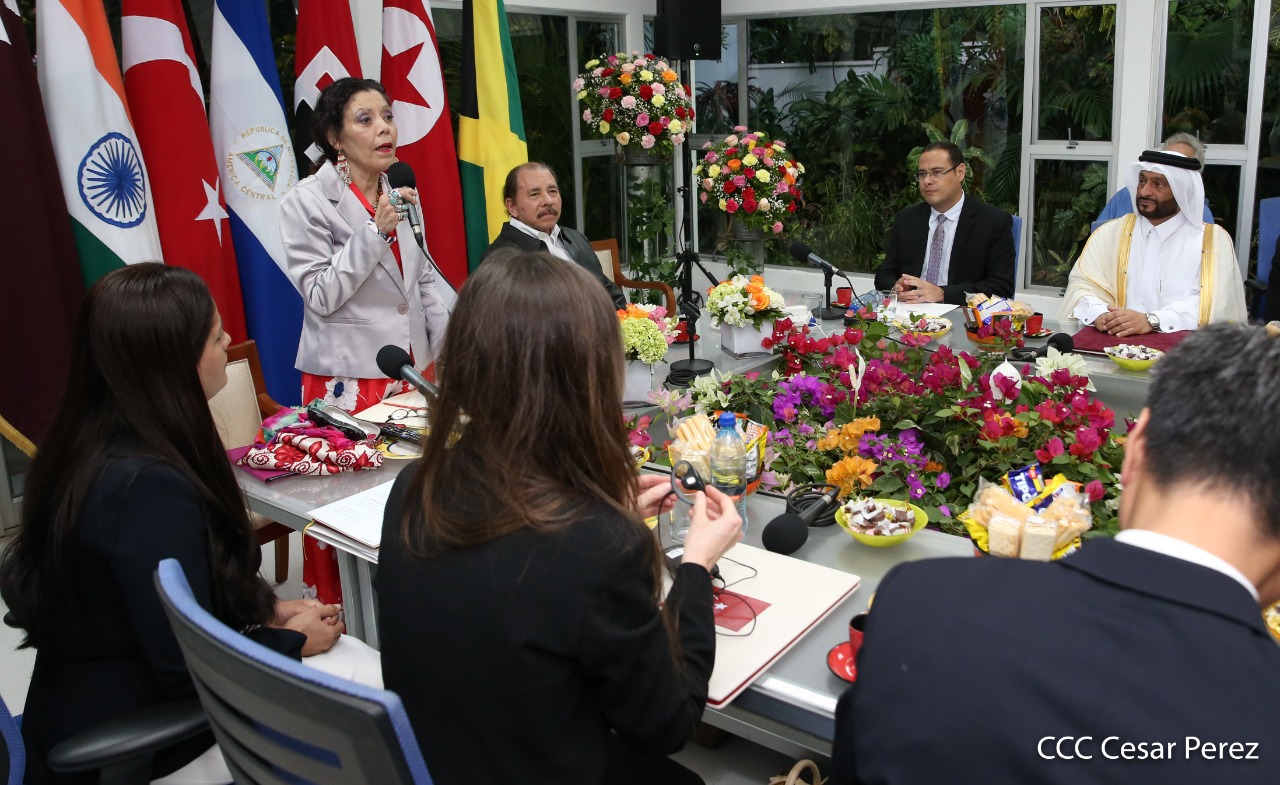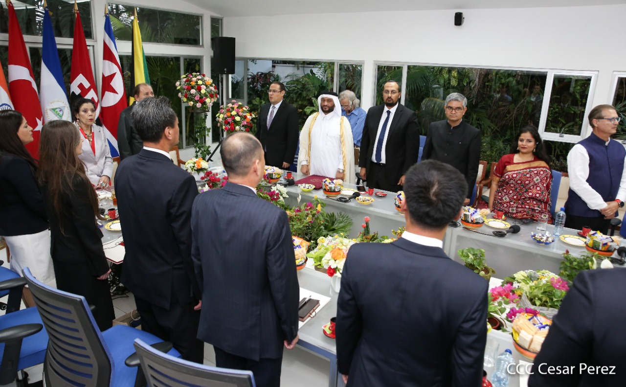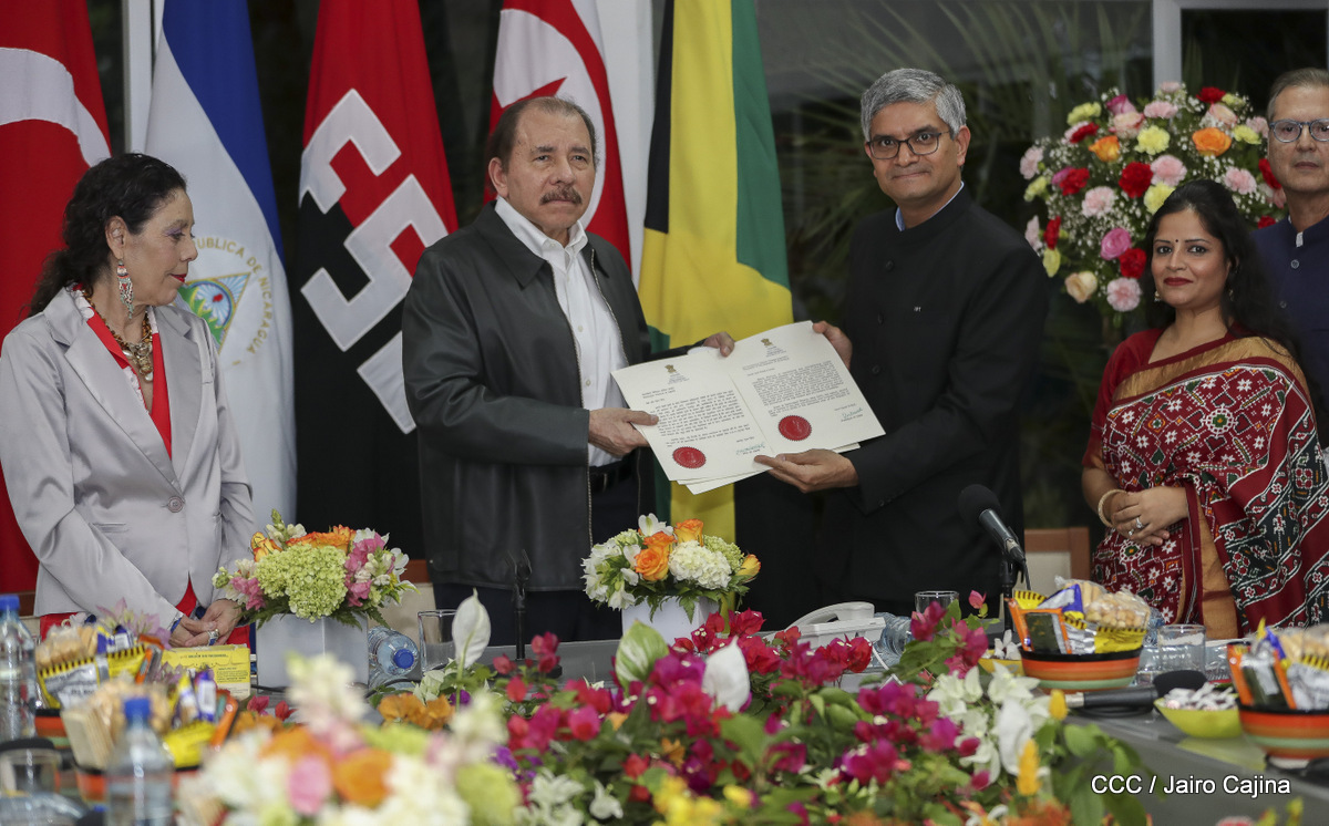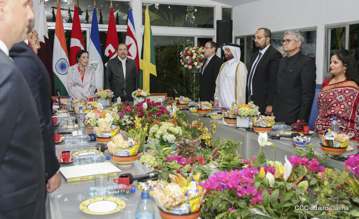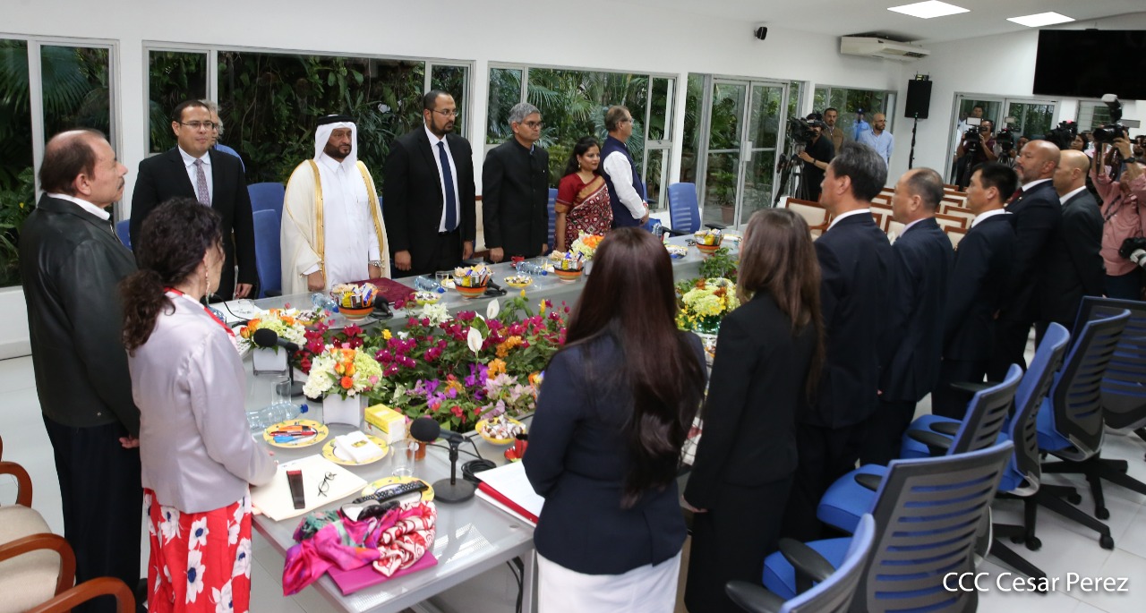 Cinco nuevos embajadores concurrentes con Nicaragua presentaron sus cartas credenciales este jueves al presidente Daniel Ortega y la vicepresidenta Rosario Murillo. En el acto solemne celebrado en Managuw, cartas credenciales el embajador del Estado de Catar, señor Khamis Rashid M. Al-Kaabi; el embajador de la República de la India, Upender Singh Rawat; la embajadora de Turquía, Fatma Pihava Ünlü, el embajador de la República Popular Democrática de Corea, señor Ma Chol Su y el embajador Jamaica, Jason Keats Matthew Hall, quienes se hicieron acompañar por algunos miembros de sus delegaciones diplomáticas.