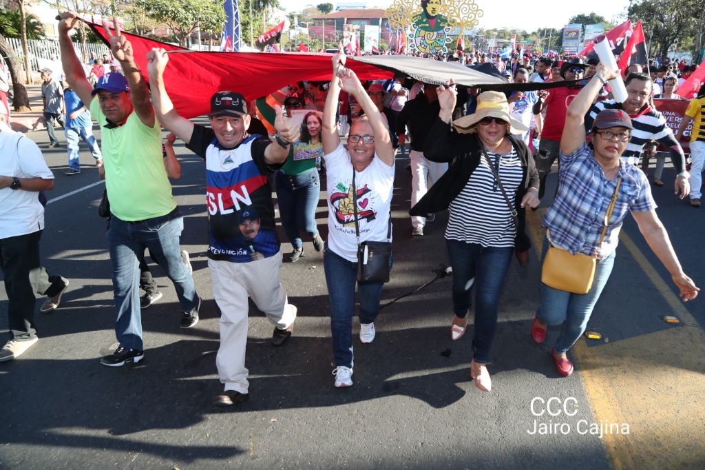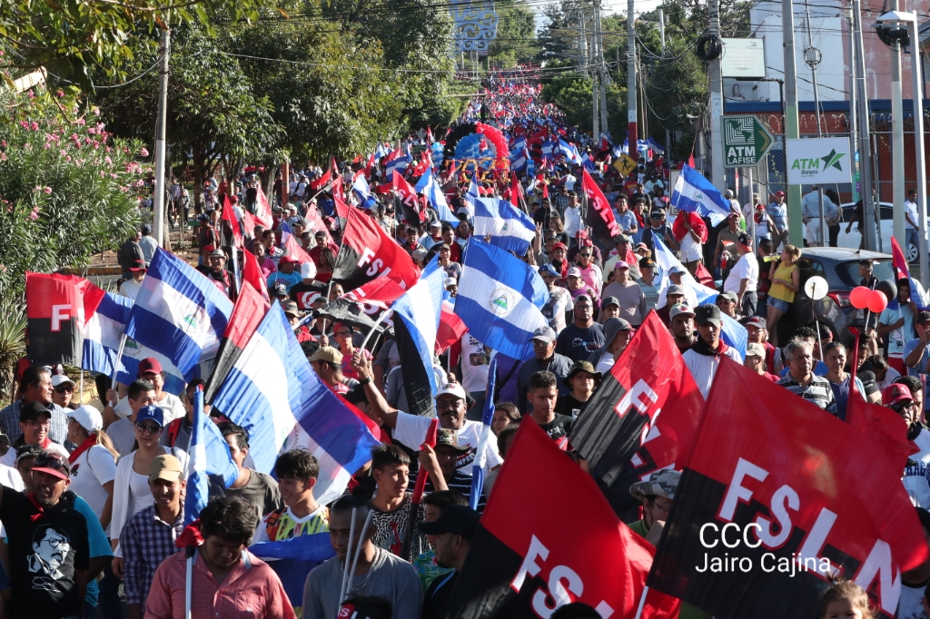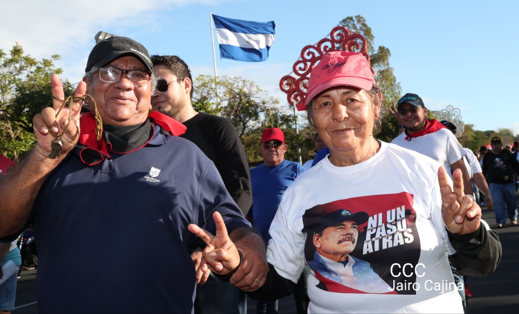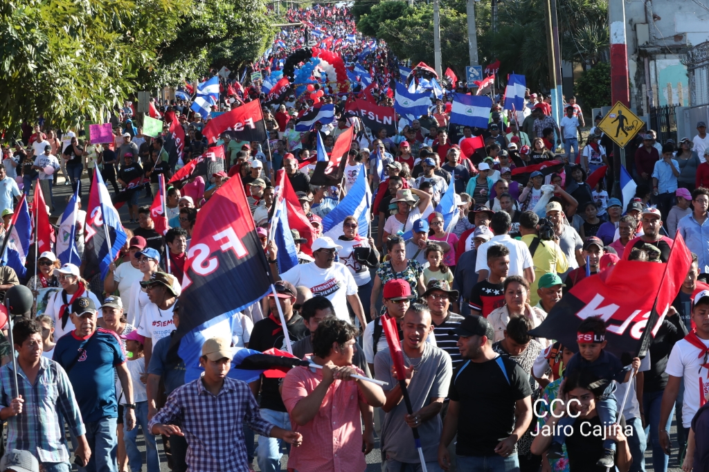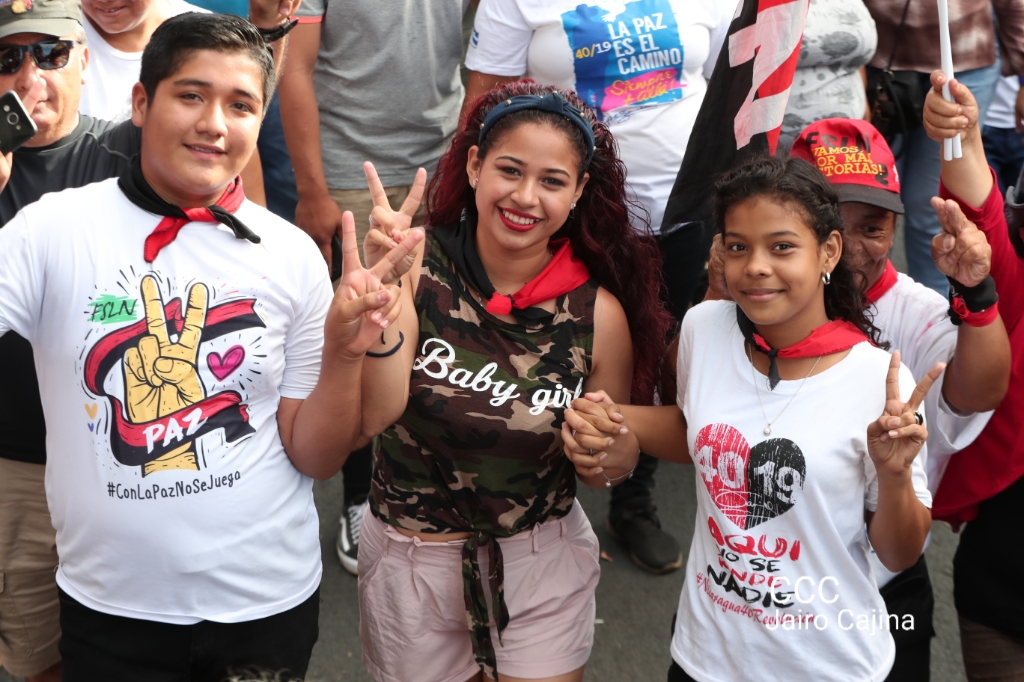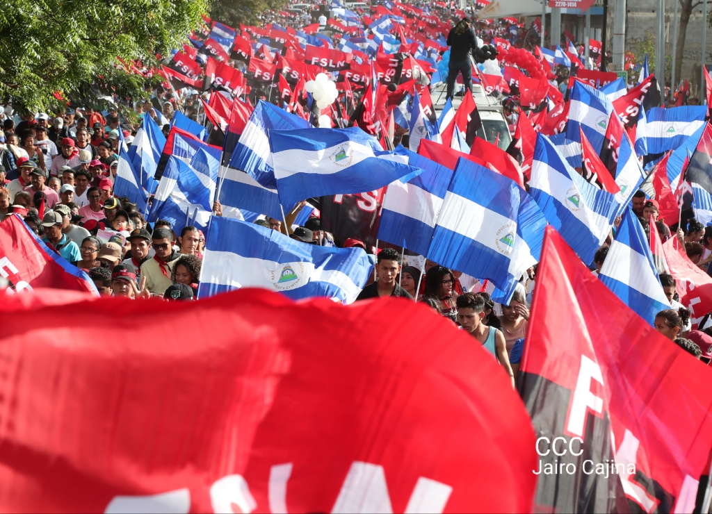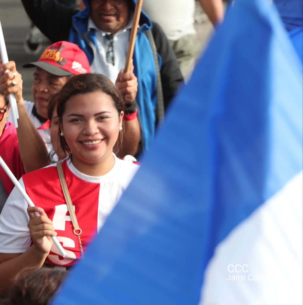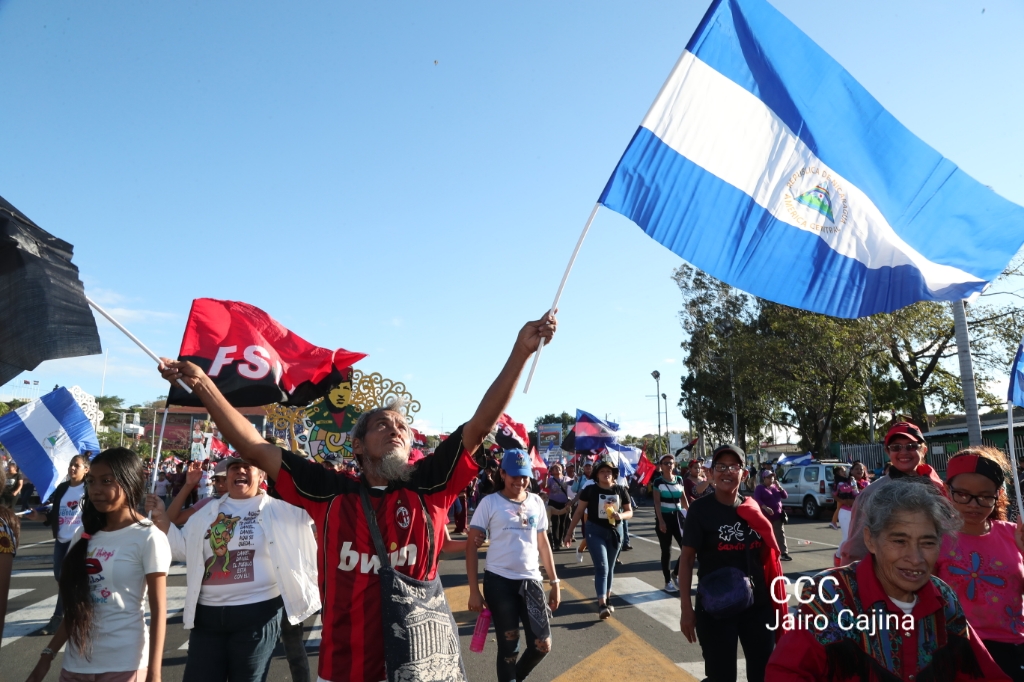 Los nicaragüenses caminaron en Paz, con banderas de unidad, con banderas de triunfos, portadas por manos honradas y honorables, manos nicaragüenses, manos de pueblo, trabajador y vencedor.