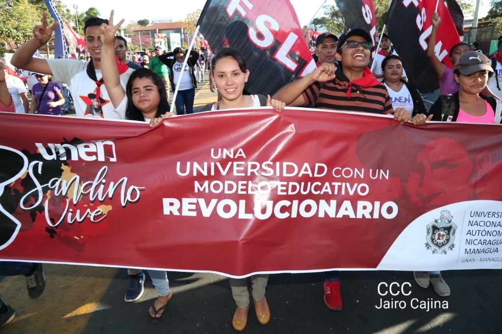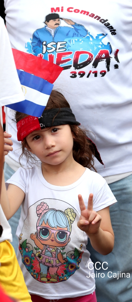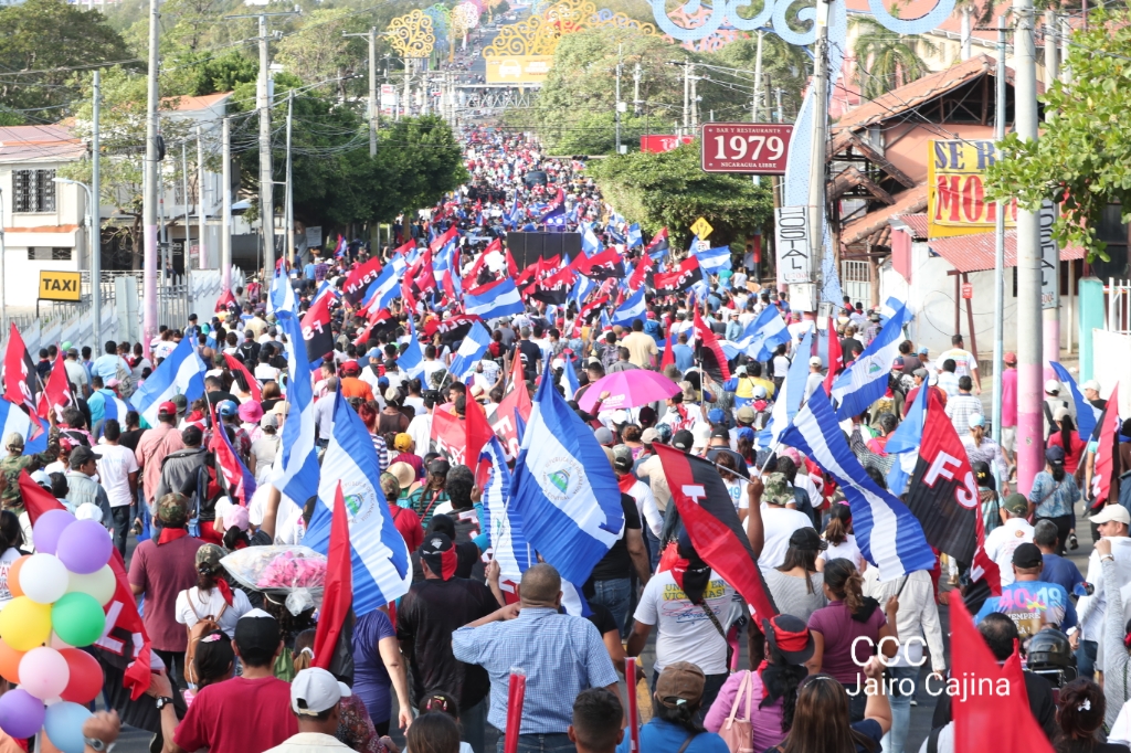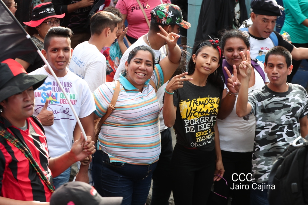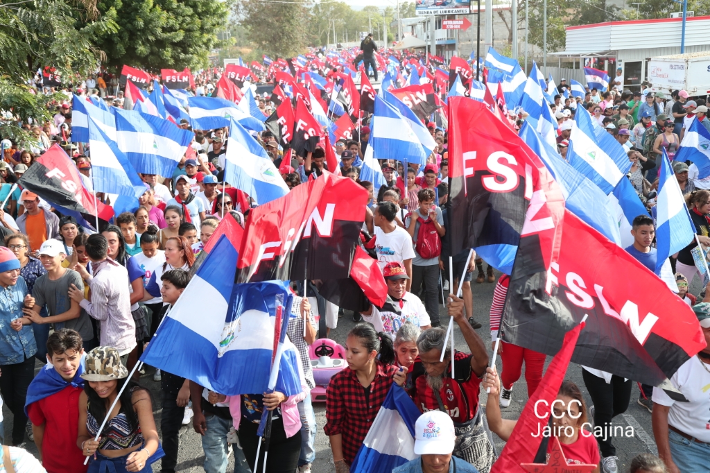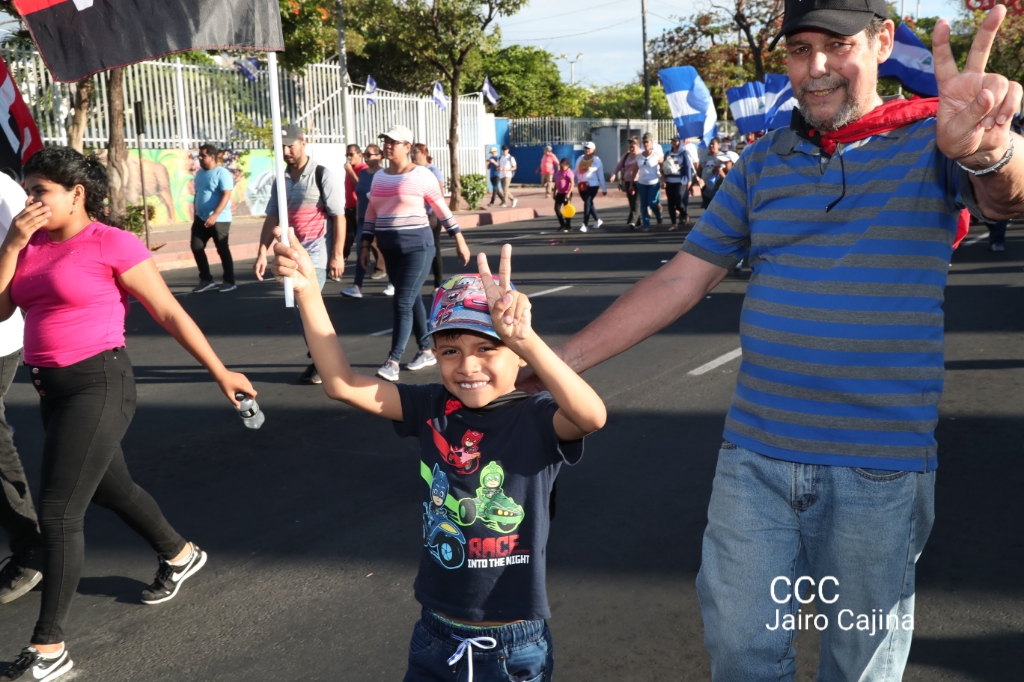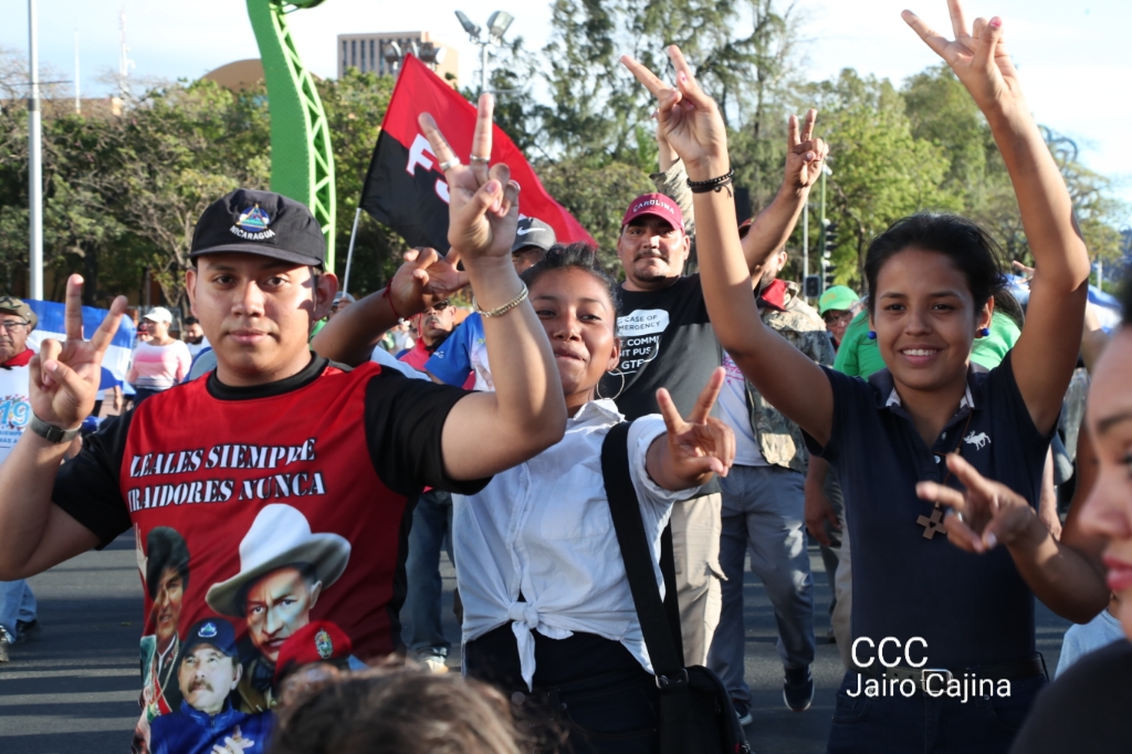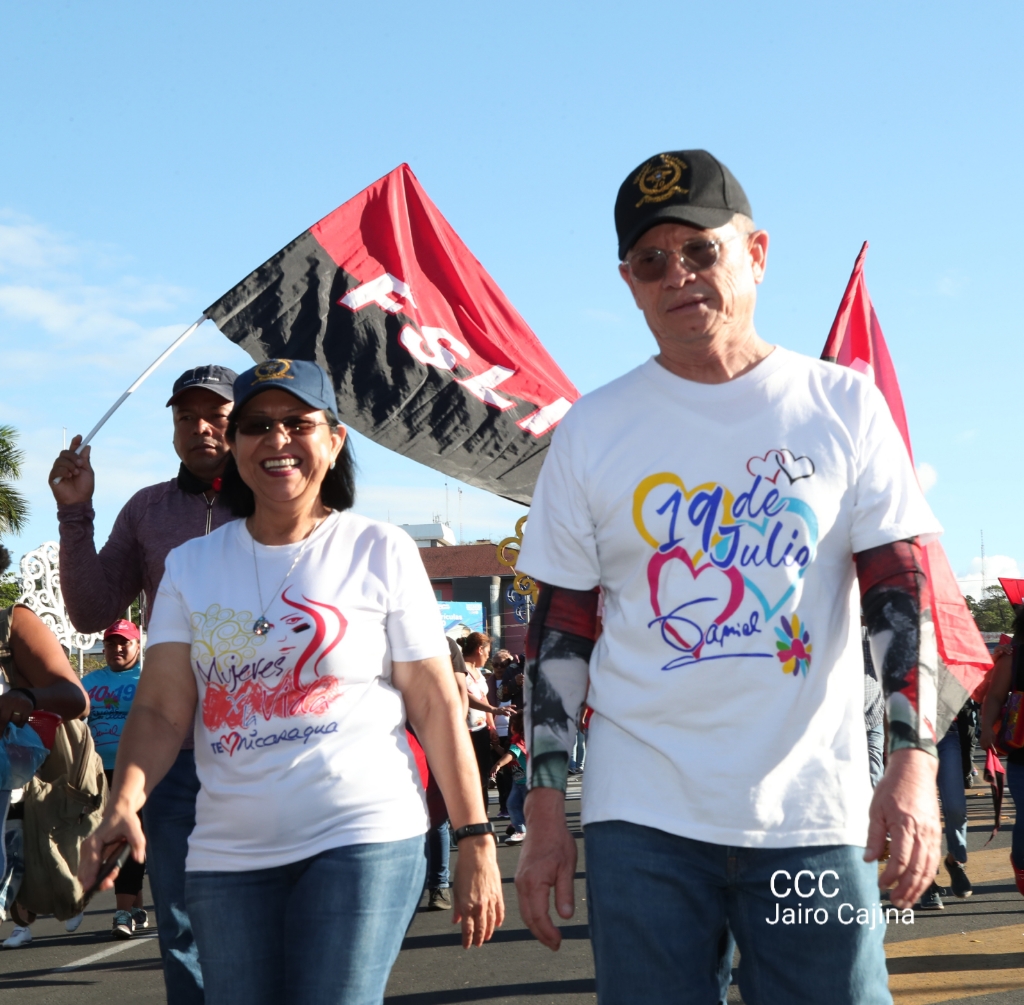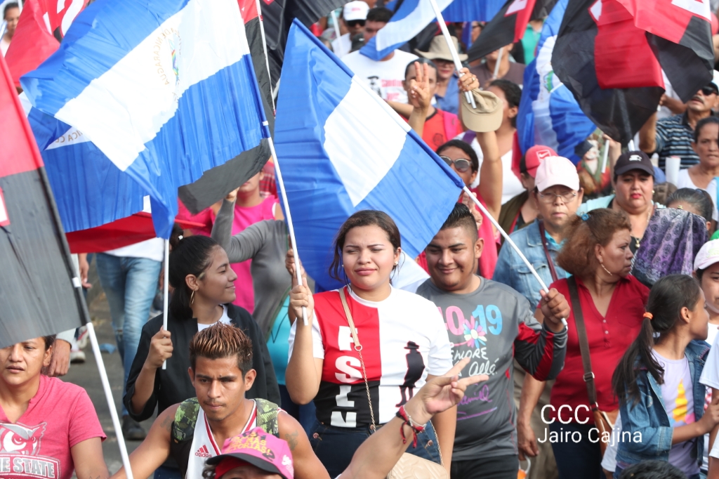 Los nicaragüenses caminaron en Paz, con banderas de unidad, con banderas de triunfos, portadas por manos honradas y honorables, manos nicaragüenses, manos de pueblo, trabajador y vencedor.