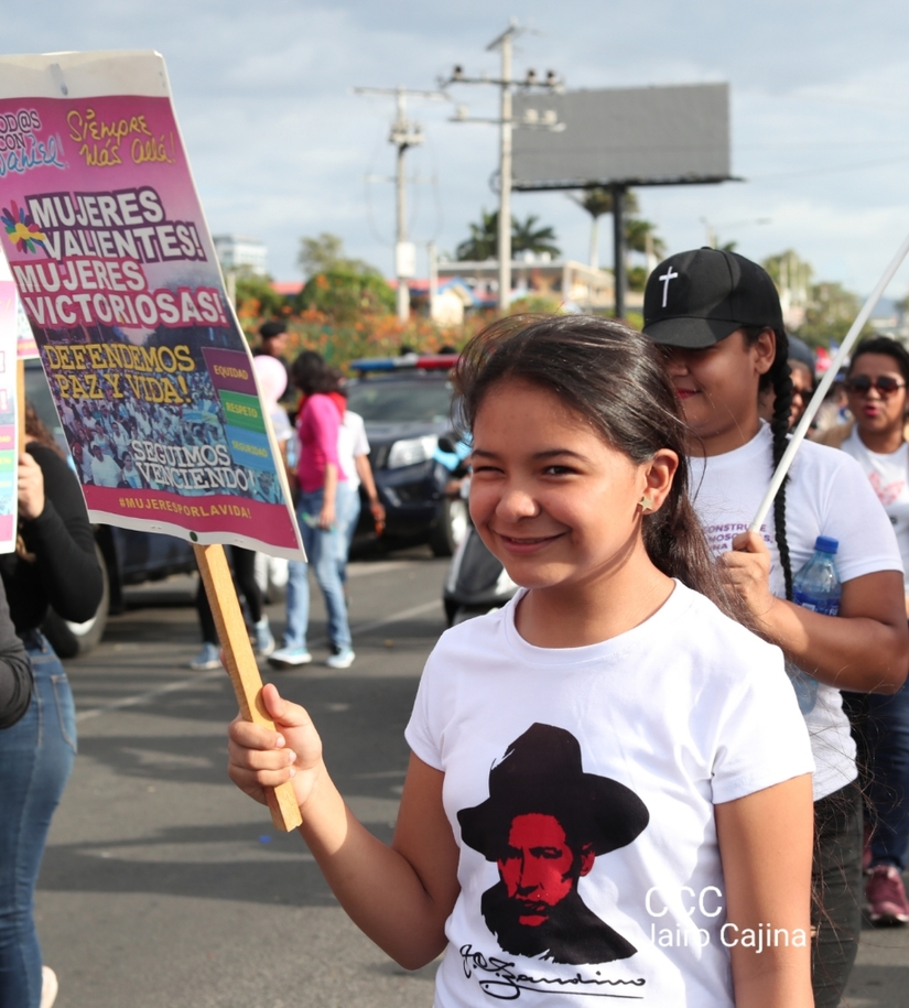 Miles de familias nicaragüenses participan la tarde de este sábado en una multitudinaria caminata ¡Mujeres Valientes, Mujeres Victoriosas!, en vísperas del Día Internacional de la Mujer, promoviendo y defendiendo la dignidad y derechos de la mujer.